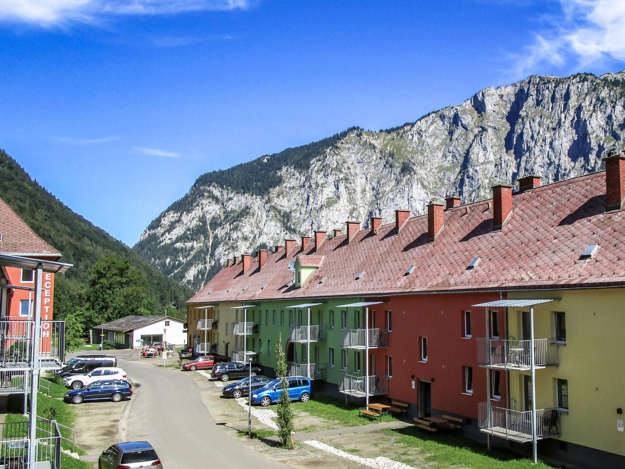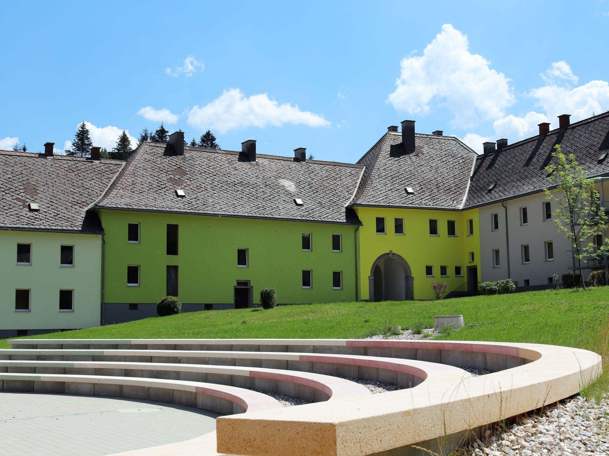 Here, a historic miners' settlement has been carefully adapted for tourism. Modern, comfortable resort "Erzberg Alpin by Alps Resorts". 3 km from the centre, in a sunny, elevated position, 1.5 km from the lake, 11 km from the skiing area. For shared use: large garden with plants and trees, lawn for sunbathing. Children's playground, planted inner courtyard. In the complex: reception, WiFi, central heating system, washing machine (for shared use, extra). Breakfast and half board (extra). Parking at the house. E-charging station. Supermarket 1.5 km, restaurant 200 m, diving center 6 km, indoor swimming pool 3 km, lake Leopoldsteiner See 1.5 km. Sports centre 100 m, skisport facilities 11 km, cross country ski track 6 km, ice rink 1.5 km. Nearby attractions: Abenteuer Erzberg 5 km, Naturpark Gesäuse 12 km, Schaubergwerk Radmer 17 km. Well-known ski regions can easily be reached: Skigebiet Präbichl 12 km. Hiking paths: Hochschwab. Please note: car recommended. The photo is just an example. Admission to the Vitalbad Eisenerz + 1 city tour per stay FREE for all guests! The Vitalbad closed in September for renovation. Erzberg Alpin guest card included.