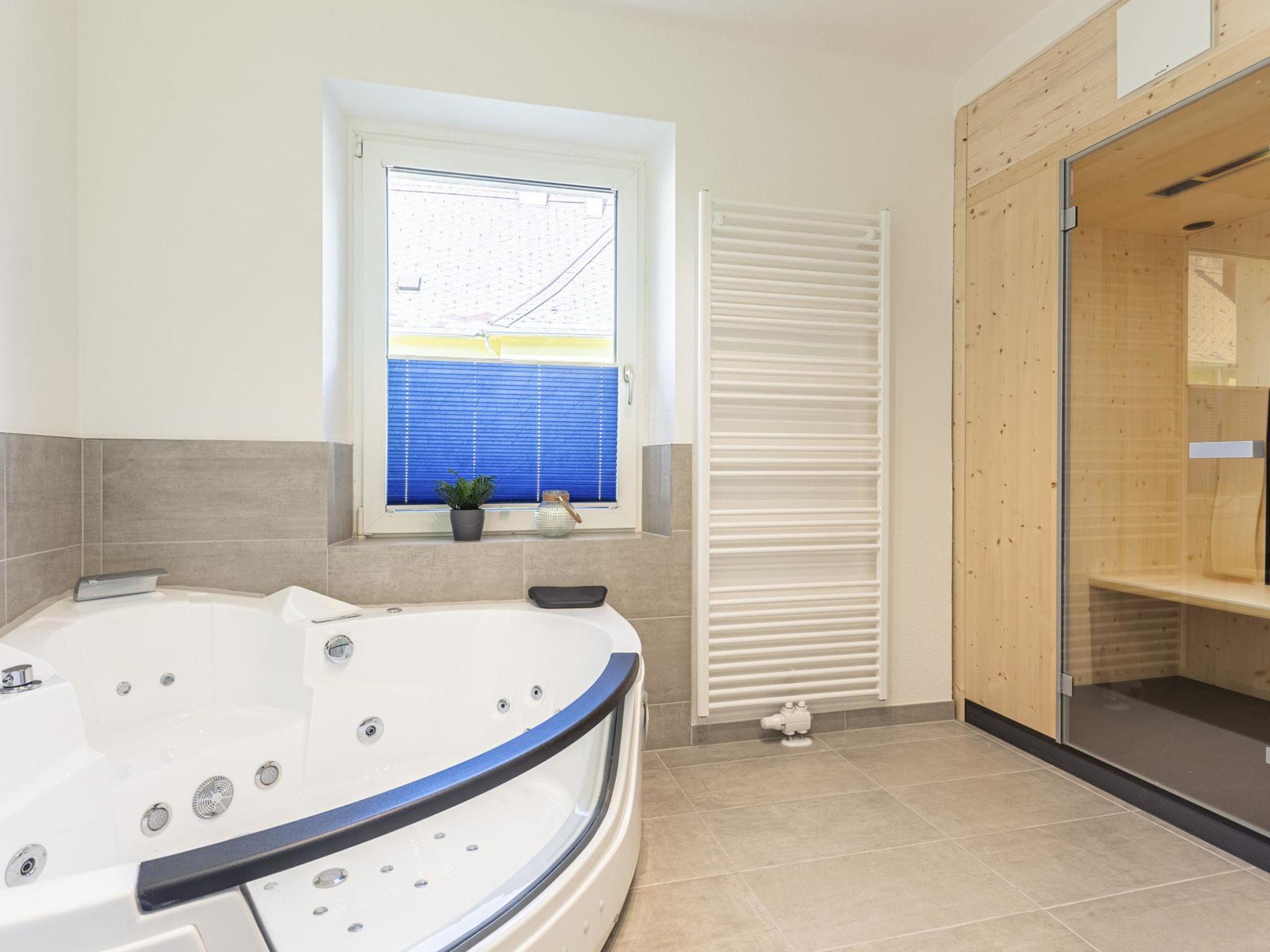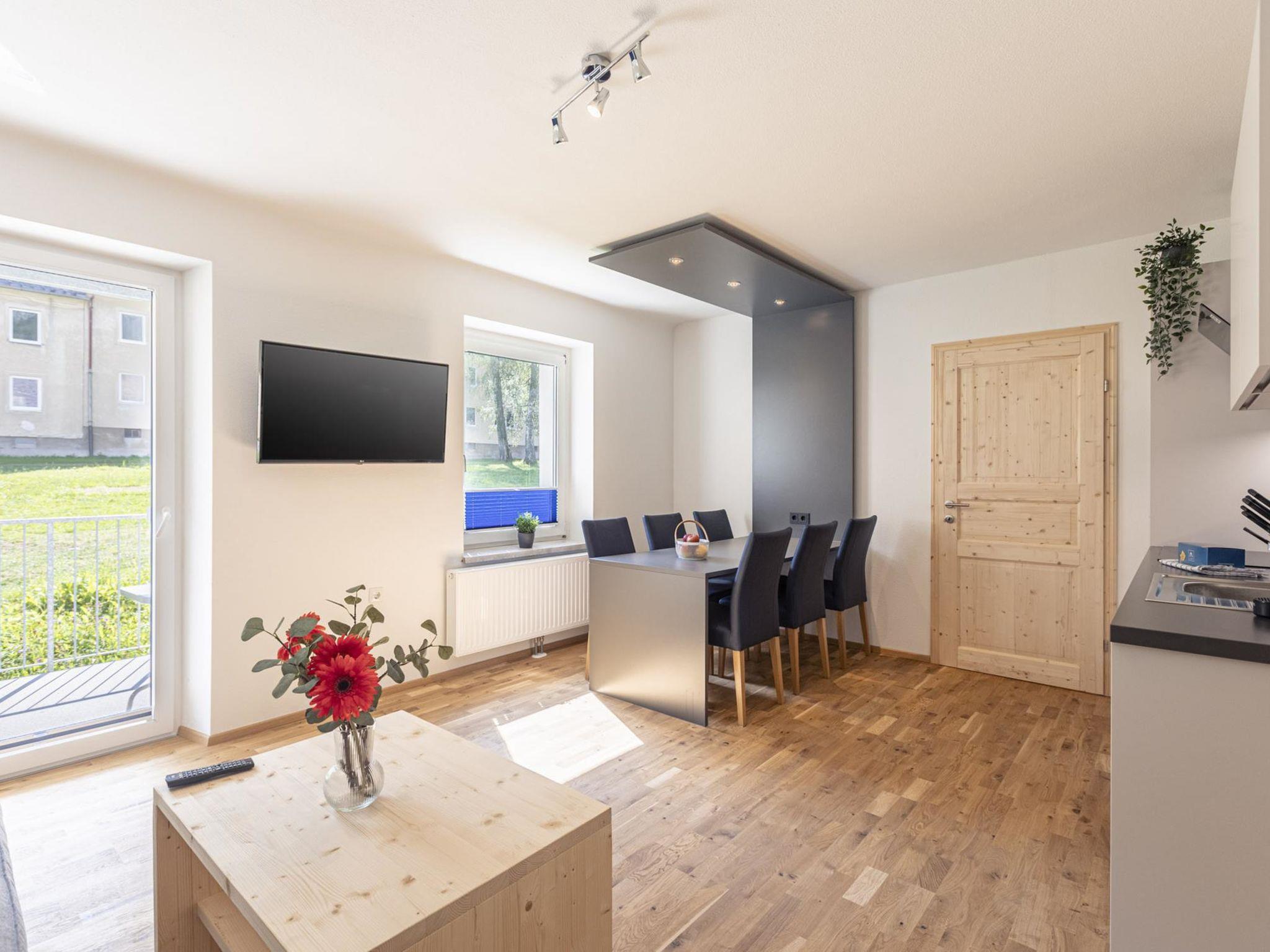 "für 6 P. Mit IR-Sauna & Sprudelwanne", 3-room apartment 58 m2. Spacious and bright, comfortable and cosy furnishings: living/dining room with satellite TV (flat screen). 1 double bedroom. 1 room with 2 beds. Kitchenette (dishwasher, 4 ceramic glass hob hotplates, toaster, kettle, microwave, electric coffee machine). Shower/WC, sep. WC, hydro massage bath. Balcony. Beautiful view of the mountains. Facilities: sauna. Internet (WiFi, free). Please note: non-smokers only. Maximum 1 pet/ dog allowed. The property is one of a type of property or apartment. The sauna is an infrared sauna.