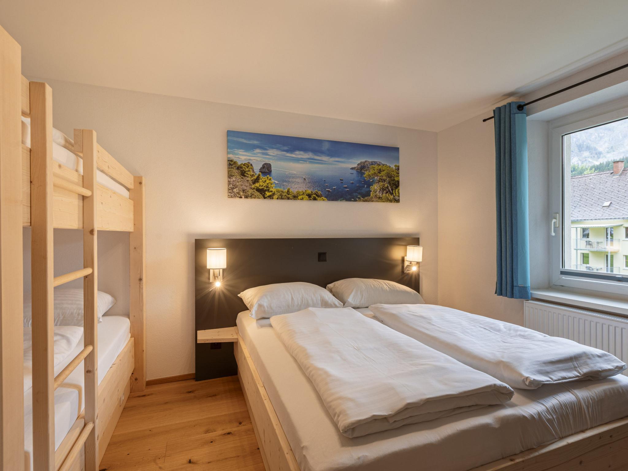 Here, a historic miners' settlement has been carefully adapted for tourism. Modern, comfortable resort "Erzberg Alpin by Alps Resorts". 3 km from the centre, in a sunny, elevated position, 1.5 km from the lake, 11 km from the skiing area. For shared use: large garden with plants and trees, lawn for sunbathing. Children's playground, planted inner courtyard. In the complex: reception, WiFi, central heating system, washing machine (for shared use, extra). Breakfast and half board (extra). Parking at the house. E-charging station. Supermarket 1.5 km, restaurant 200 m, diving center 6 km, indoor swimming pool 3 km, lake Leopoldsteiner See 1.5 km. Sports centre 100 m, skisport facilities 11 km, cross country ski track 6 km, ice rink 1.5 km. Nearby attractions: Abenteuer Erzberg 5 km, Naturpark Gesäuse 12 km, Schaubergwerk Radmer 17 km. Well-known ski regions can easily be reached: Skigebiet Präbichl 12 km. Hiking paths: Hochschwab. Please note: car recommended. The photo is just an example. Admission to the Vitalbad Eisenerz + 1 city tour per stay FREE for all guests! The Vitalbad closed in September for renovation. Erzberg Alpin guest card included.
