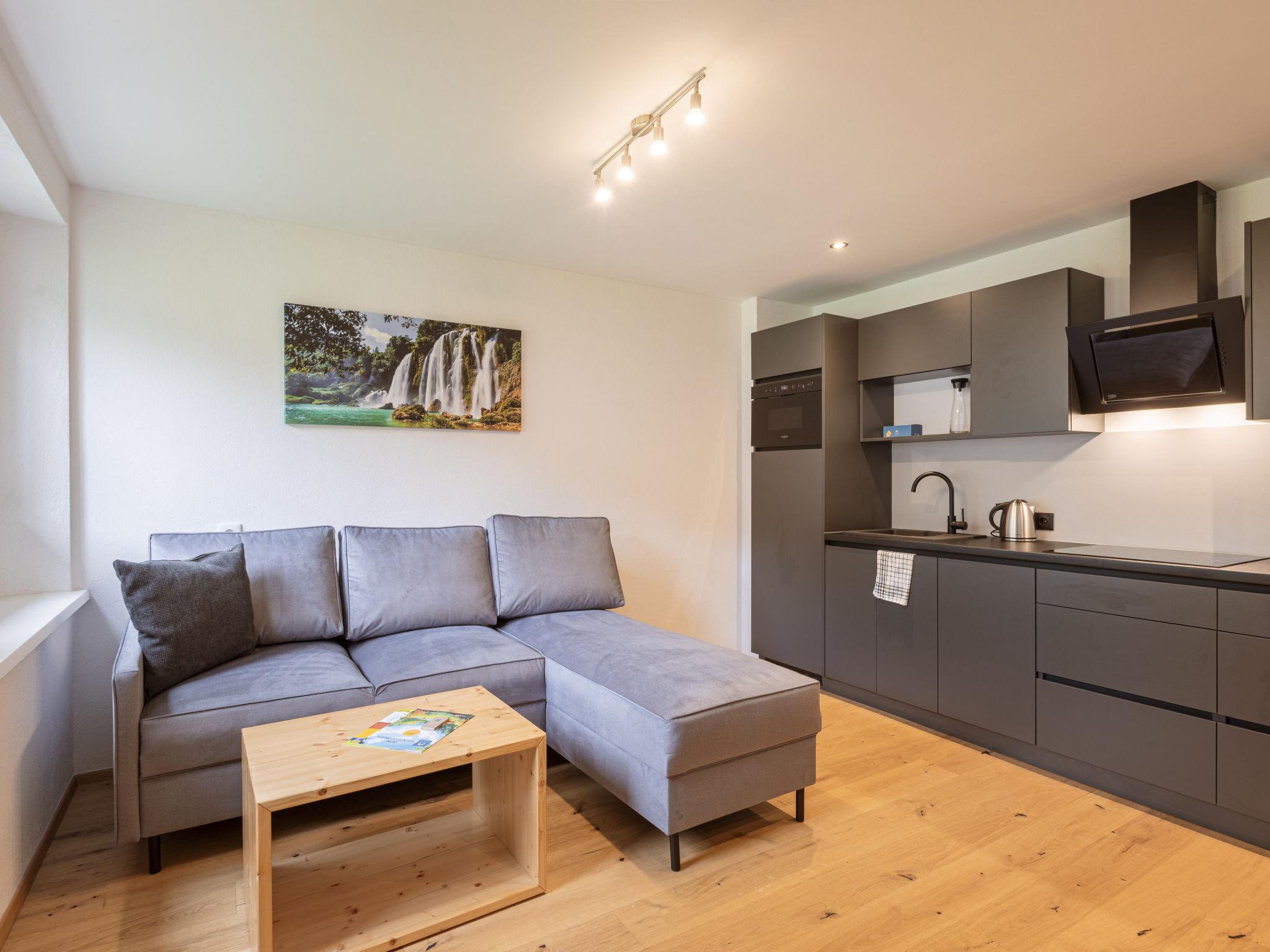 "Superior mit IR-Sauna", 3-room apartment 63 m2. Modern and cosy furnishings: living/dining room with dining table and satellite TV (flat screen). 1 double bedroom. 1 room with 1 x 2 bunk beds, 1 double bed. Open kitchen (oven, dishwasher, 4 ceramic glass hob hotplates, toaster, kettle, microwave, electric coffee machine). Sep. WC, bath/shower/WC, Sauna. Heating. Balcony. Balcony furniture. Beautiful view of the mountains. Facilities: Internet (WiFi, free). Please note: non-smokers only. Maximum 1 pet/ dog allowed. The sauna is an infrared sauna. SP 10/3