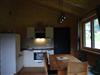 In unserem Ferienhaus findest du einen Aufenthaltsraum mit Einbauküche, Esstisch, und einer ausziehbaren Couch.