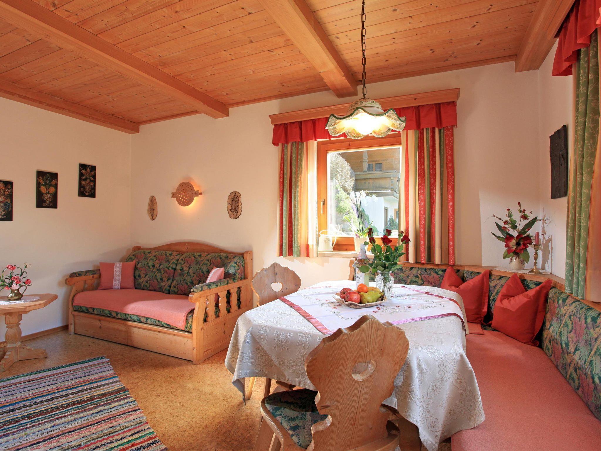 Das Appartement ist rustikal mit Holzmöbeln, Korkboden und Kachelofen eingerichtet!