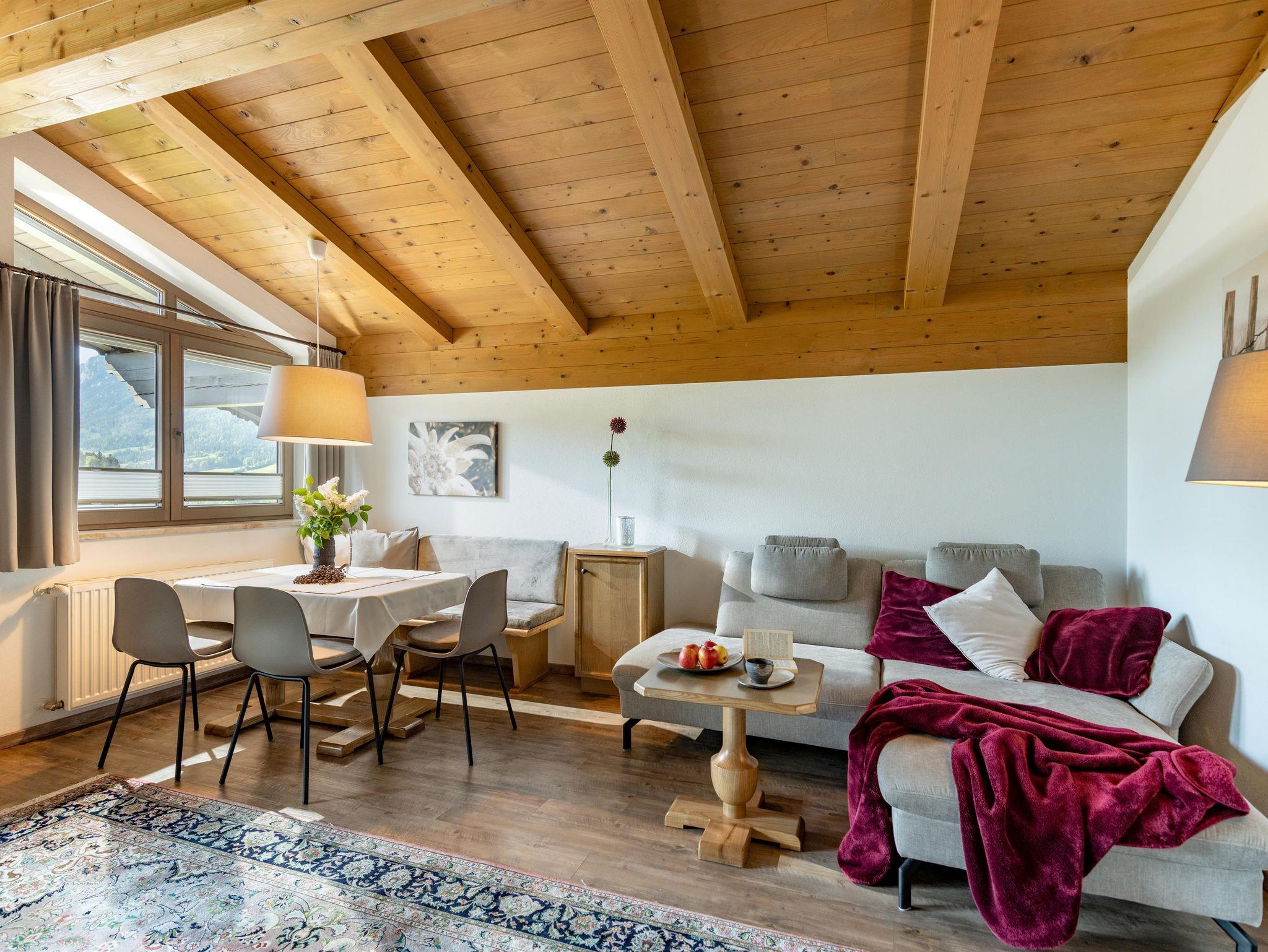 Die gemütliche Wohnung mit drei Balkonen bietet einen tollen Ausblick auf den Wilden Kaiser und die Umgebung.