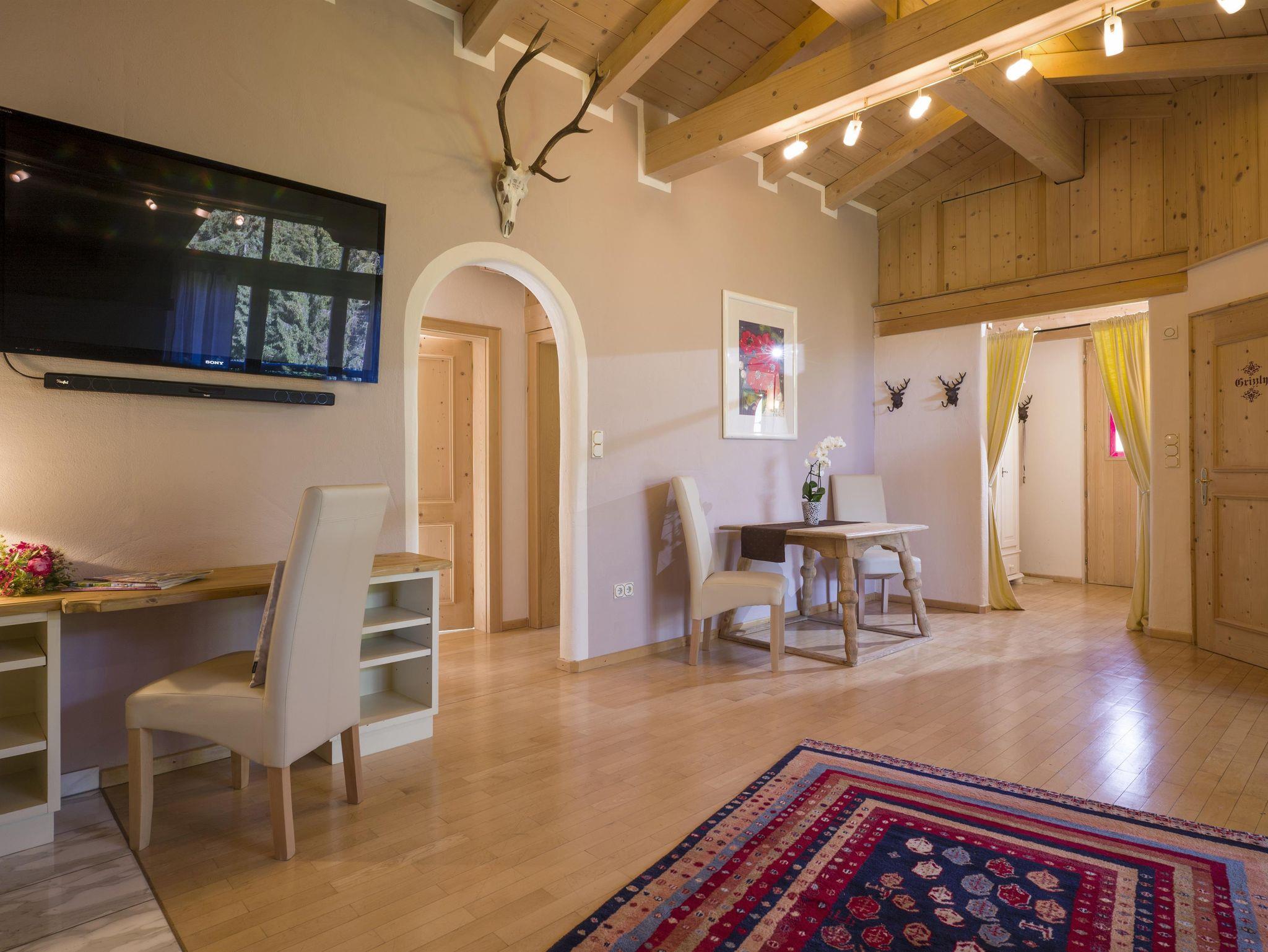 Grizzly Suite 120 qm 6-8 Personen 3 Schlafräume, 2 Bäder, 1 grosser Wohnraum mit Wohnlandschaft, 40 qm, offener Kamin, grosse Küche mit Essecke für 6-8 Personen, komplett eingerichtet mit Microwelle, Backofen, Spülmaschine, Im Wohnraum Plasma TV, extra noch TV in 2 Schlafräumen, DVD, Internet, grosser Balkon/Terrasse Im Wohnraum haben auch noch 2 Personen Platz zum Schlafen. Die Suite ist im tiroler Landhausstil sehr luxuriös eingerichtet.