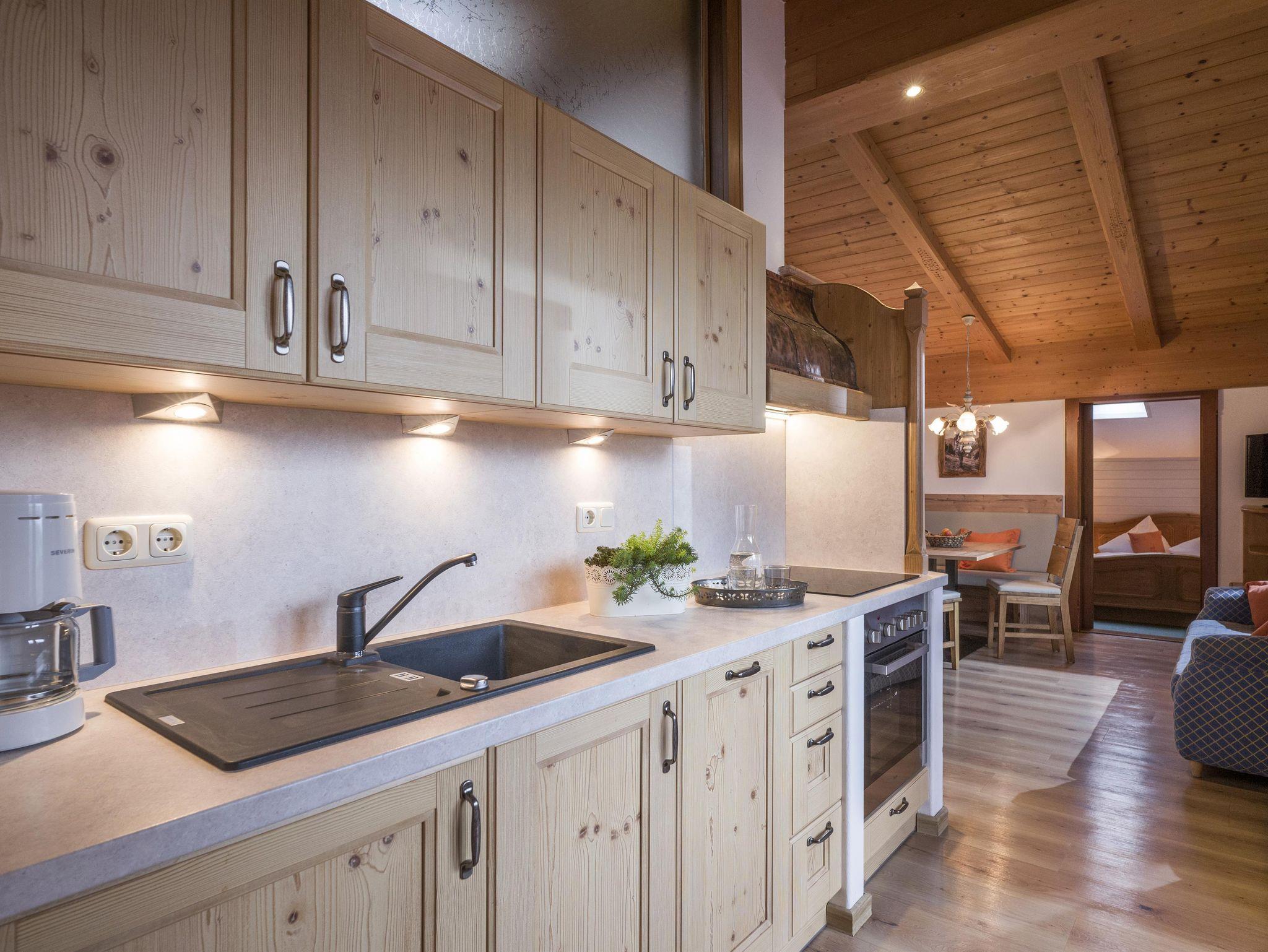 Großes heimeliges Appartement mit traumhaften Blick zum Wilden Kaiser. Das Appartement „Löwenzahn“ befindet sich im oberen Stock und verfügt über zwei Schlafzimmer (1x Doppelbett, 2x Einzelbett), einer gut ausgestattete Küche und einem gemütlichem Wohnbereich. Badezimmer mit Dusche und WC.