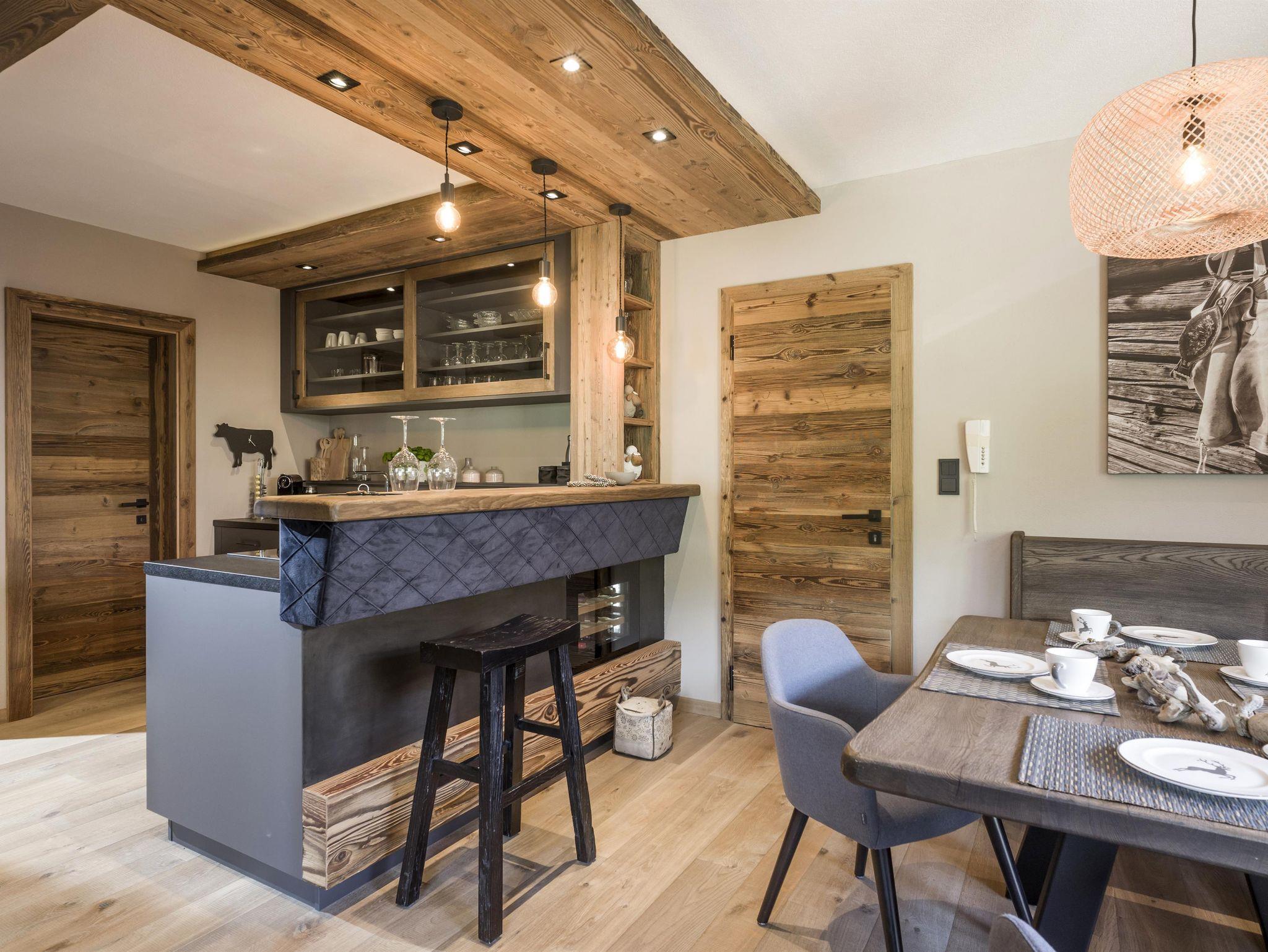 Ein Luxuswohntraum der keine Wünsche offen lässt - urige Altholztüren, Naturstein und Vogelgezwitscher im Bad sowie eine Küche mit sämtlichen Ausstattungswünschen. Im großen Wellnessbereich können sie nach einer Wanderung oder einem Skitag gemütlich entspannen. Der Flair dieser traditionellen Chaletwohnung im Einklang mit neuen modernen Elementen sorgen für das perfekte Urlaubsgefühl. Designer Küche, Sonnenterrasse, Designermöbel - viel Platz und Luxus für die schönsten Tage im Jahr.