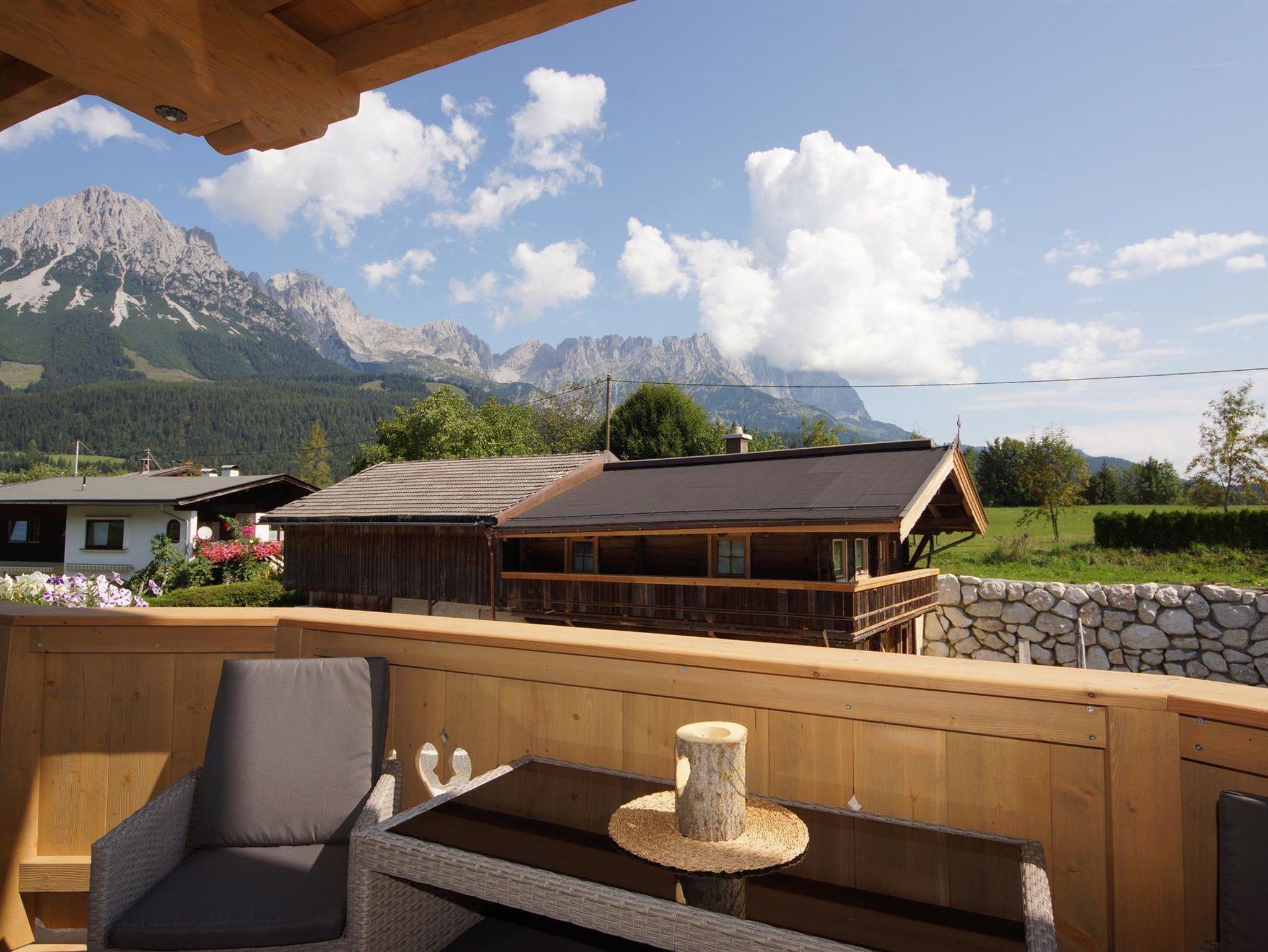 Hier im Kaiserappartements Marie am Steinernen Tisch genießen Sie einen einzigartigen Blick auf den Wilden Kaiser. Wir liegen inmitten der Natur und sind umgeben von Wiesen und Wäldern.