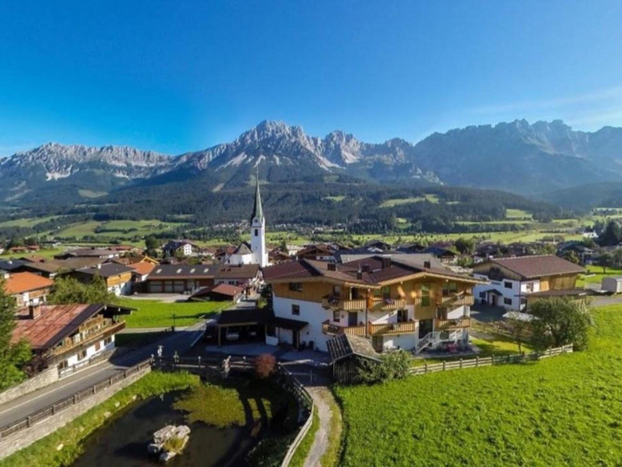 Sehr schöne, zentral gelegene Wohnung in Ellmau. Beeindruckender Blick auf den WilderKaiser. Viel zu tun in der Gegend.