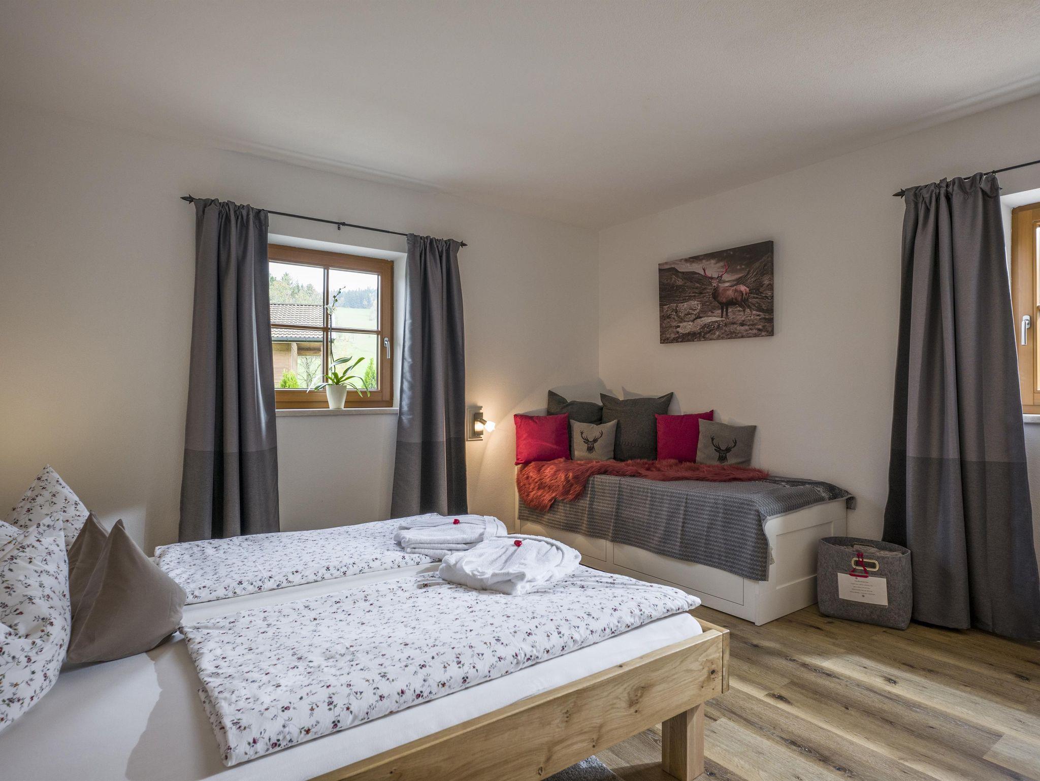 Die Wohnung hat zwei getrennte Schlafzimmer jeweils mit Kaiserblick. In einem steht ein großes Doppelbett (180x200) und ein Einzelbett, welches zu einem Doppelbett (160x200) ausgezogen werden kann. Das zweite Schlafzimmer hat ein Stockbett mit einer großen Liegefläche unten (140x200) und einem normalen Bett oben und bietet Kindern genügend Platz zum Spielen. Beide Schlafzimmer bieten ausreichend Stauraum für Ihre Kleidung.