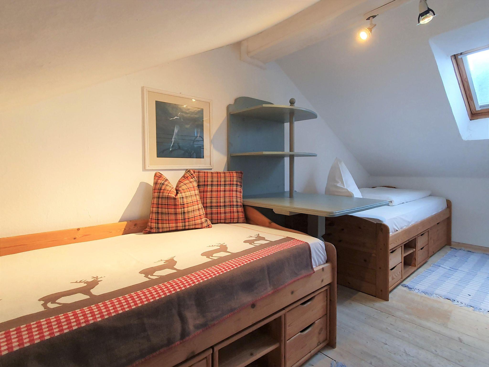 In der „Goldmelisse“ steht Ihnen ein Schlafzimmer mit Doppelbett und einem ausziehbaren Einzelbett zur Verfügung. Sollten Sie mit mehreren Personen anreisen, gibt es eine hochwertige ausziehbare Schlafcouch im Wohnbereich.