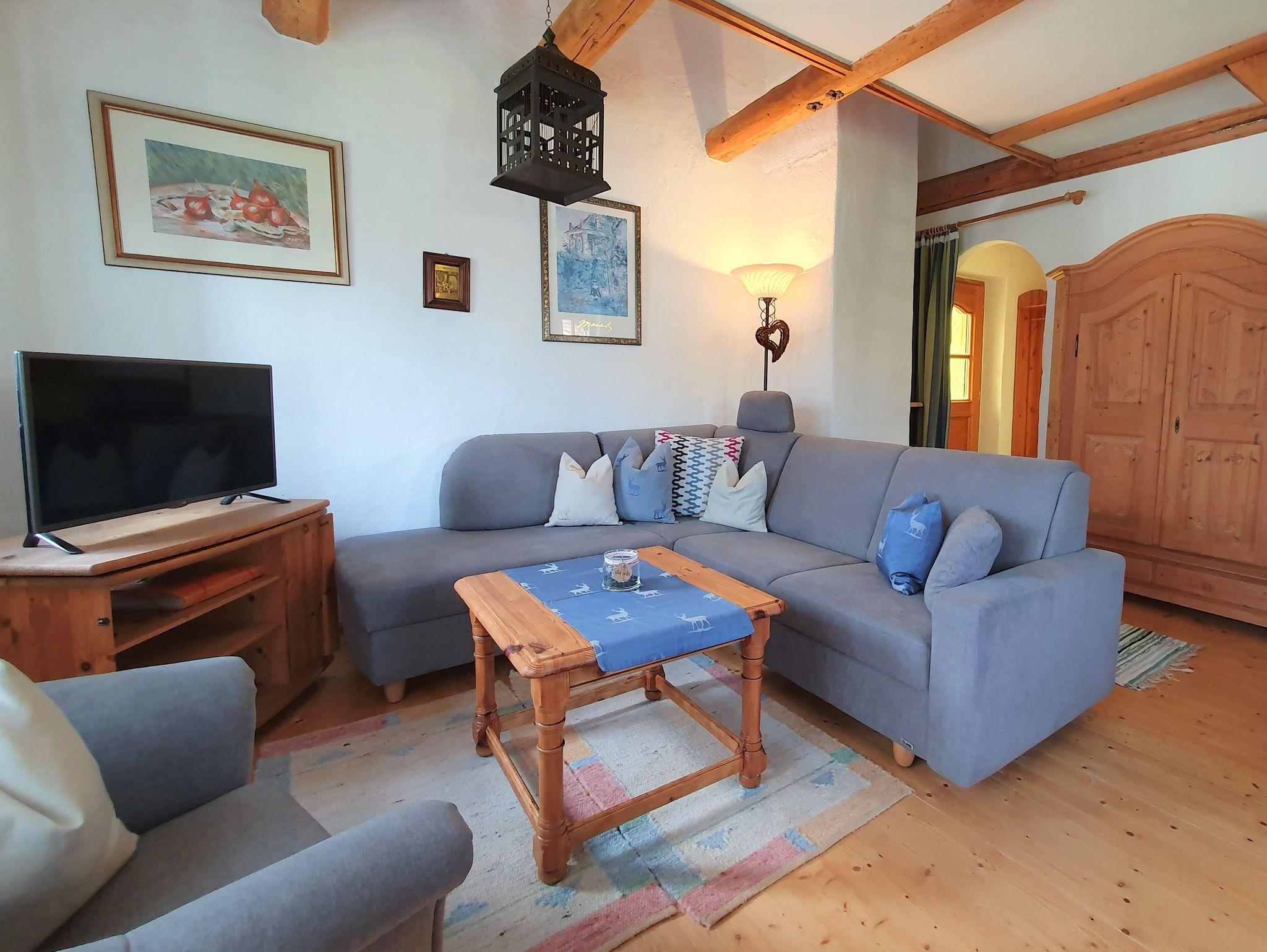 Das ebenerdige Appartement verfügt über einen offenen Wohnbereich mit gemütlicher Wohnlandschaft, großer Essecke und Tiroler Landhausküche.