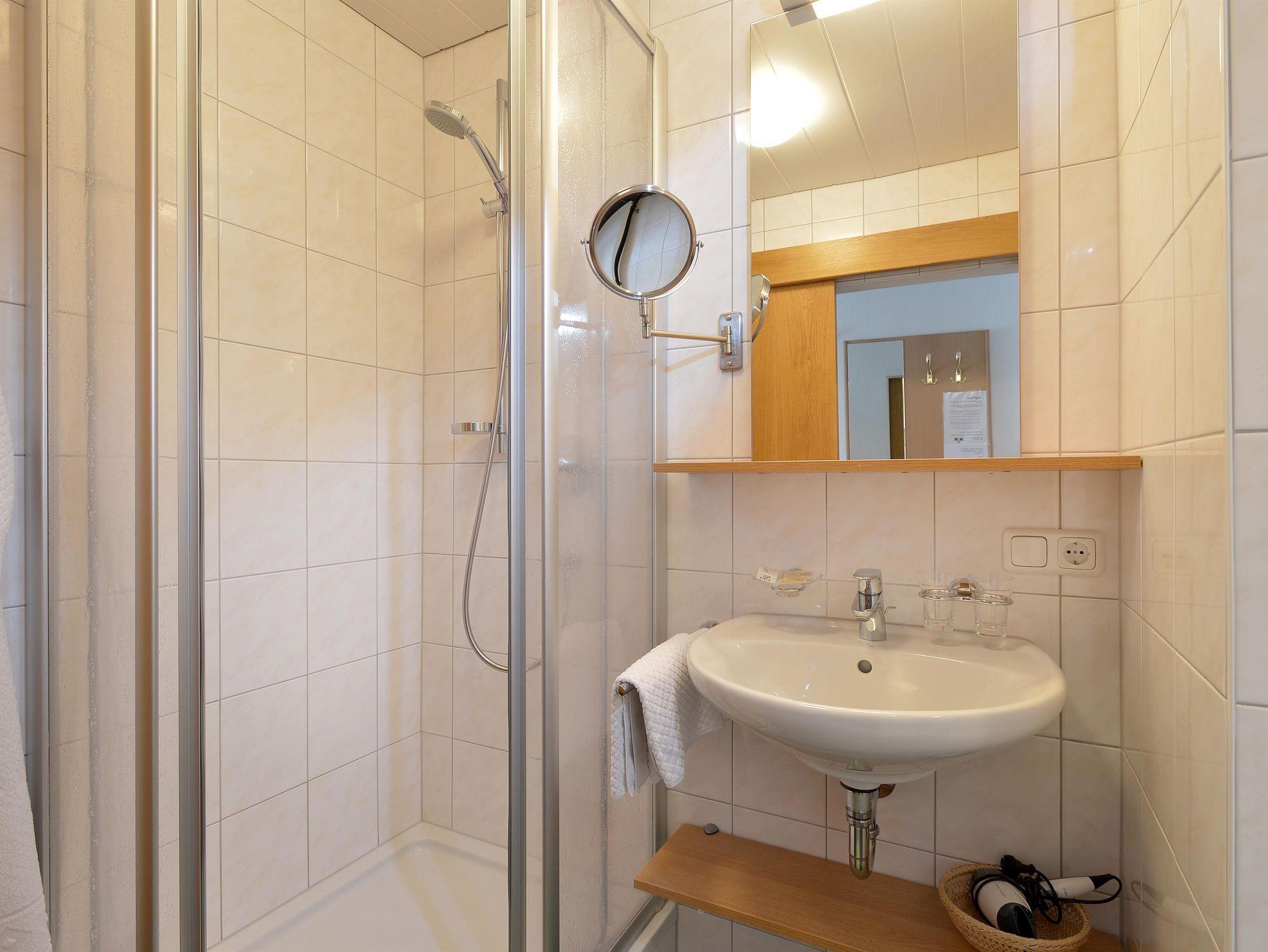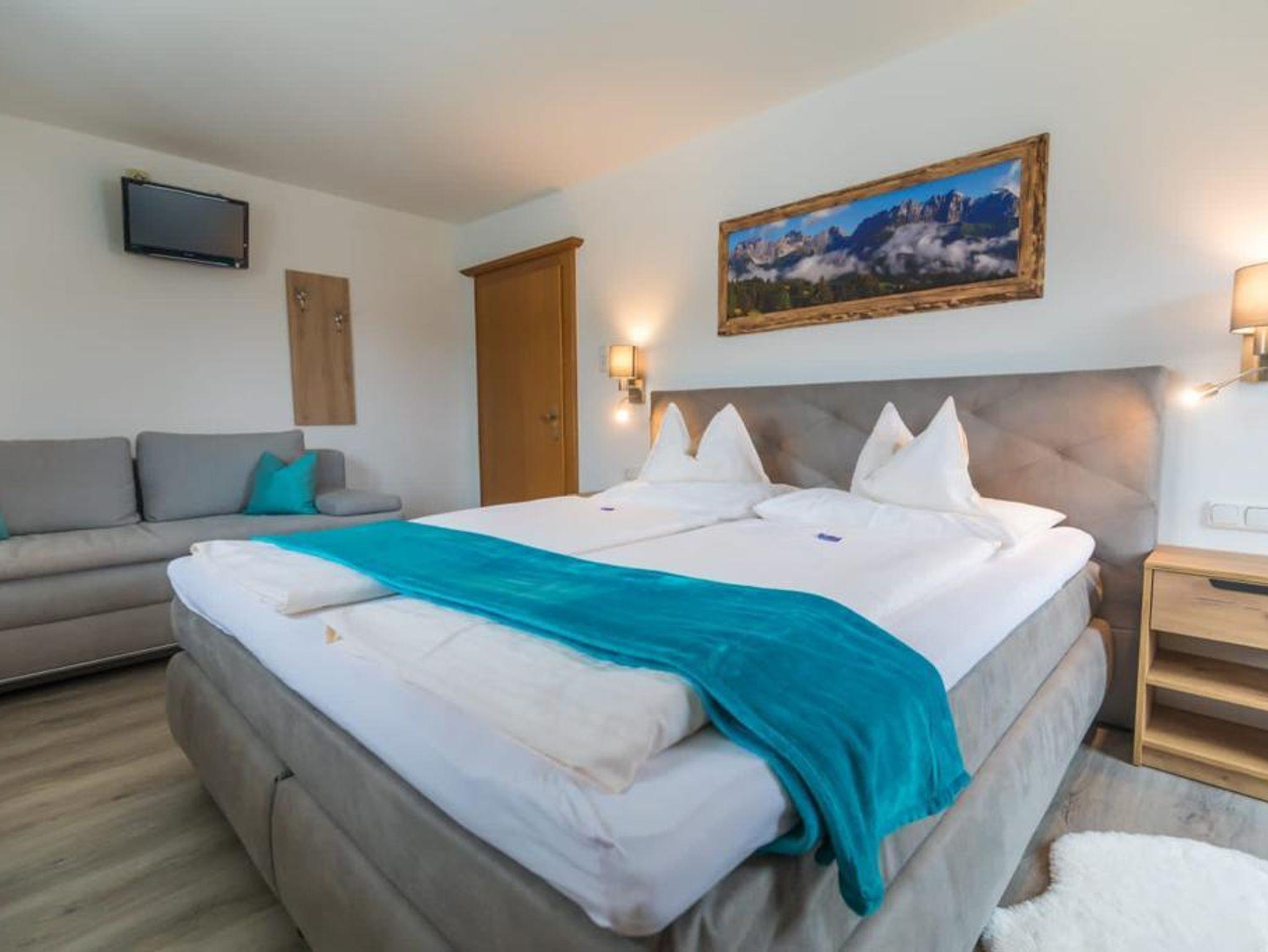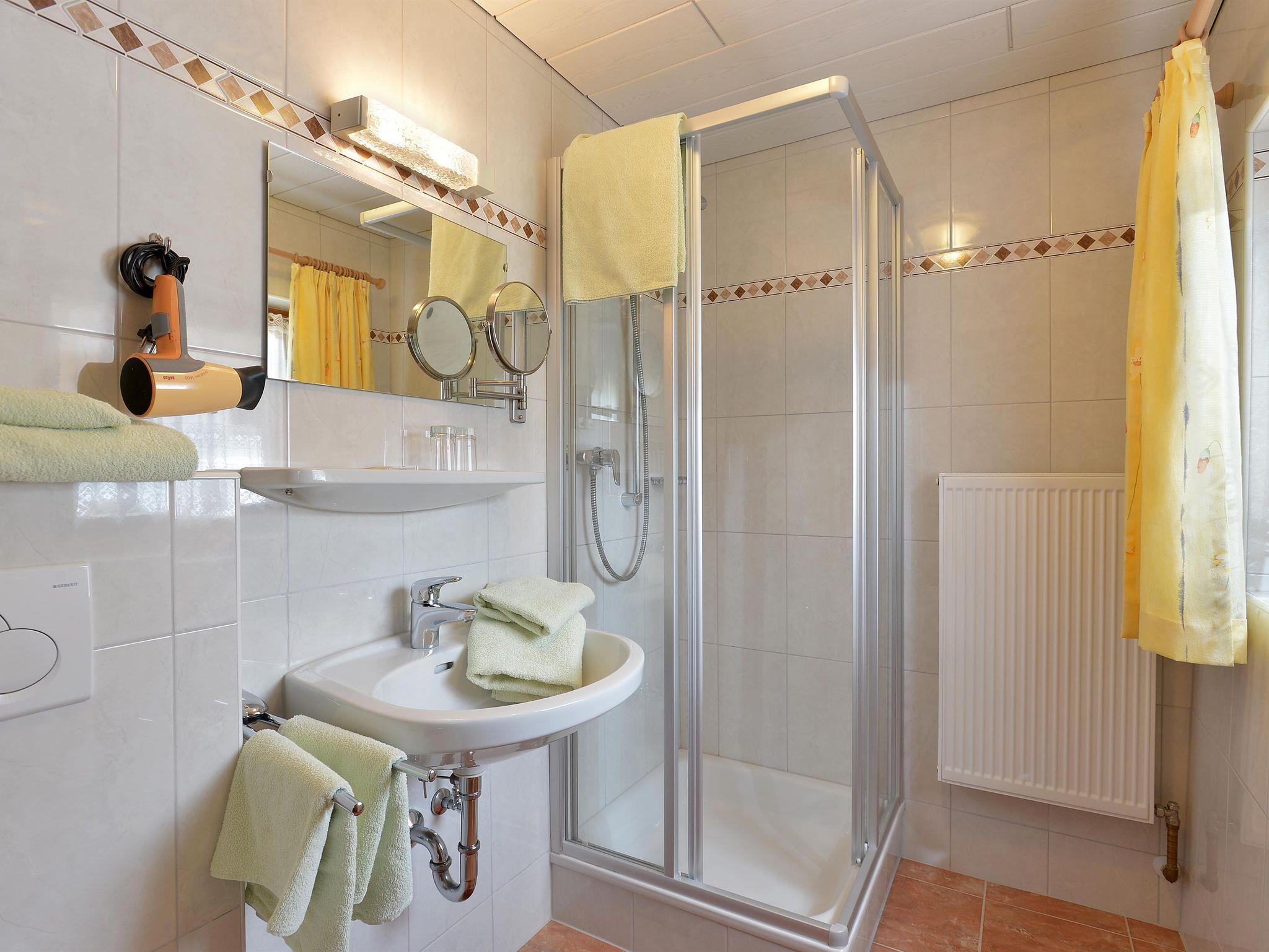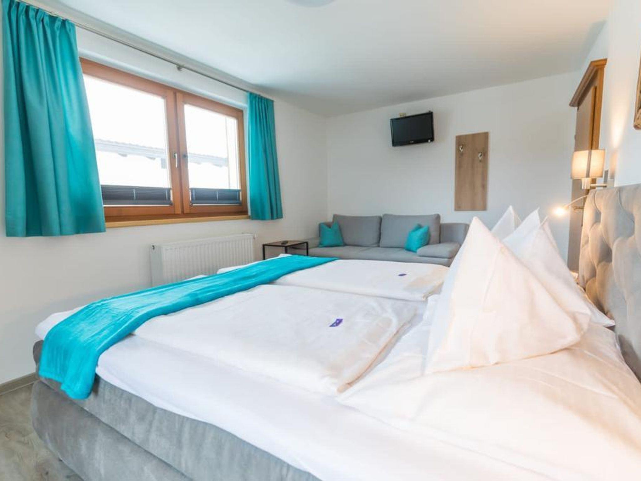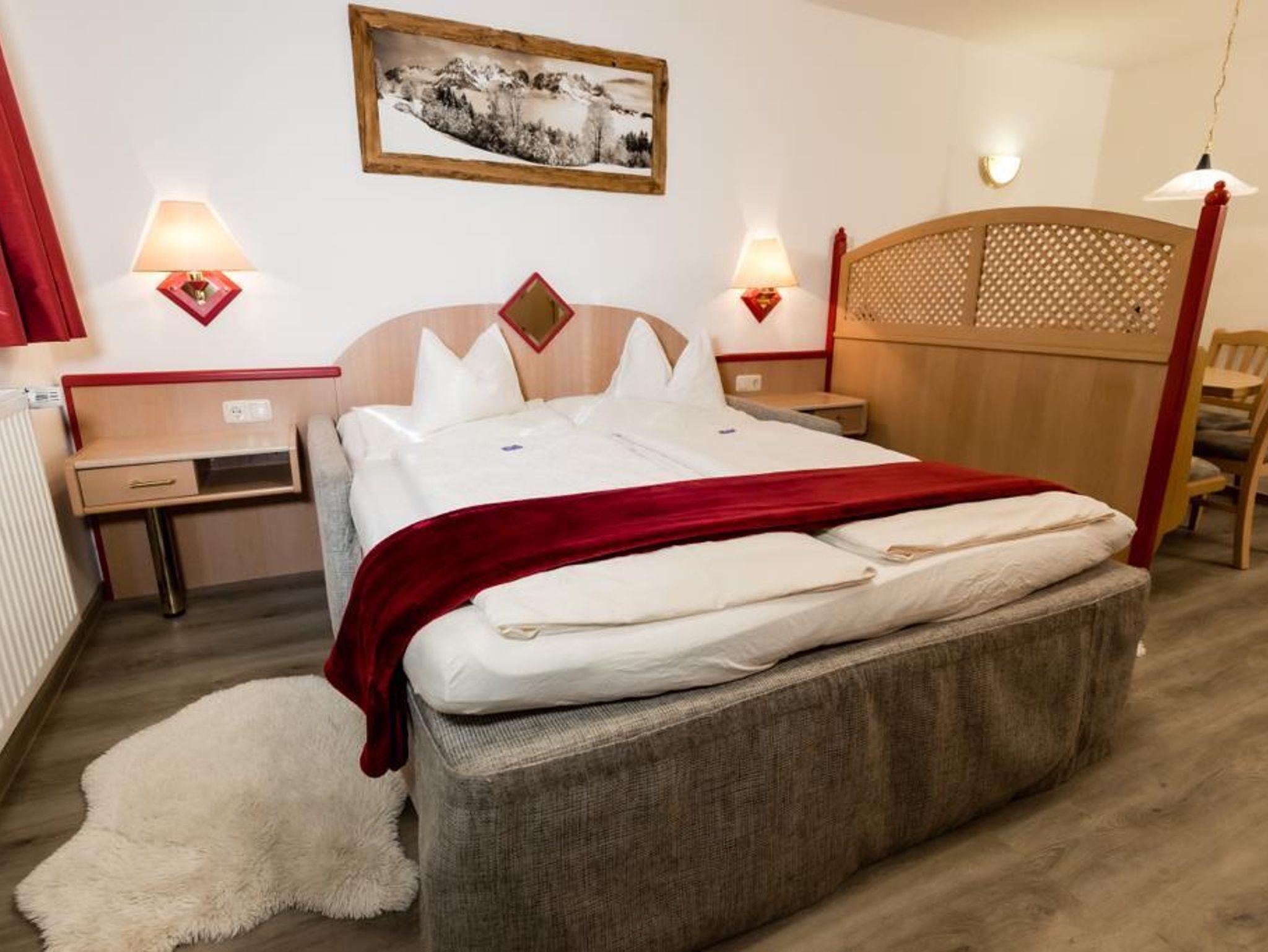 2 Schlafzimmer mit je Dusche, WC, Fön, Flat-TV und eigenem Balkon mit Blick auf den Wilden Kaiser und zur Marienkapelle. Bettwäsche und Handtücher incl.sowie Tischwäsche. Zirka 60m² groß.