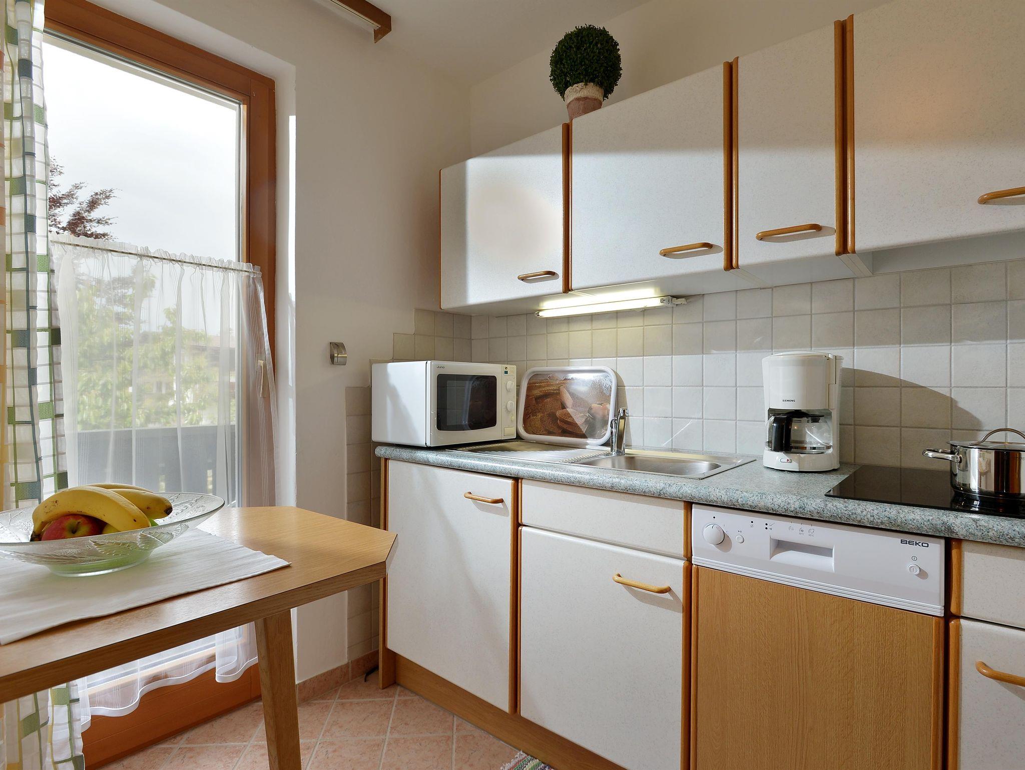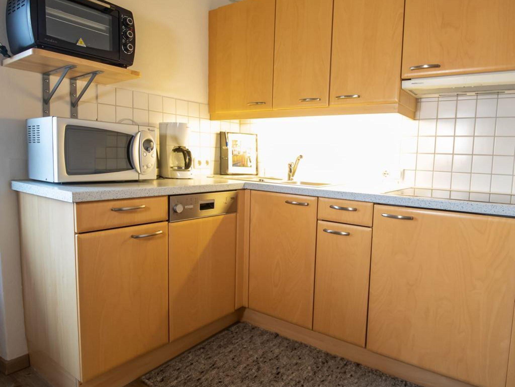 Gut ausgestattete Wohnküche mit Mikrowelle, Minibackofen und Geschirrspüler. W-LAN im gesamten Haus kostenlos.