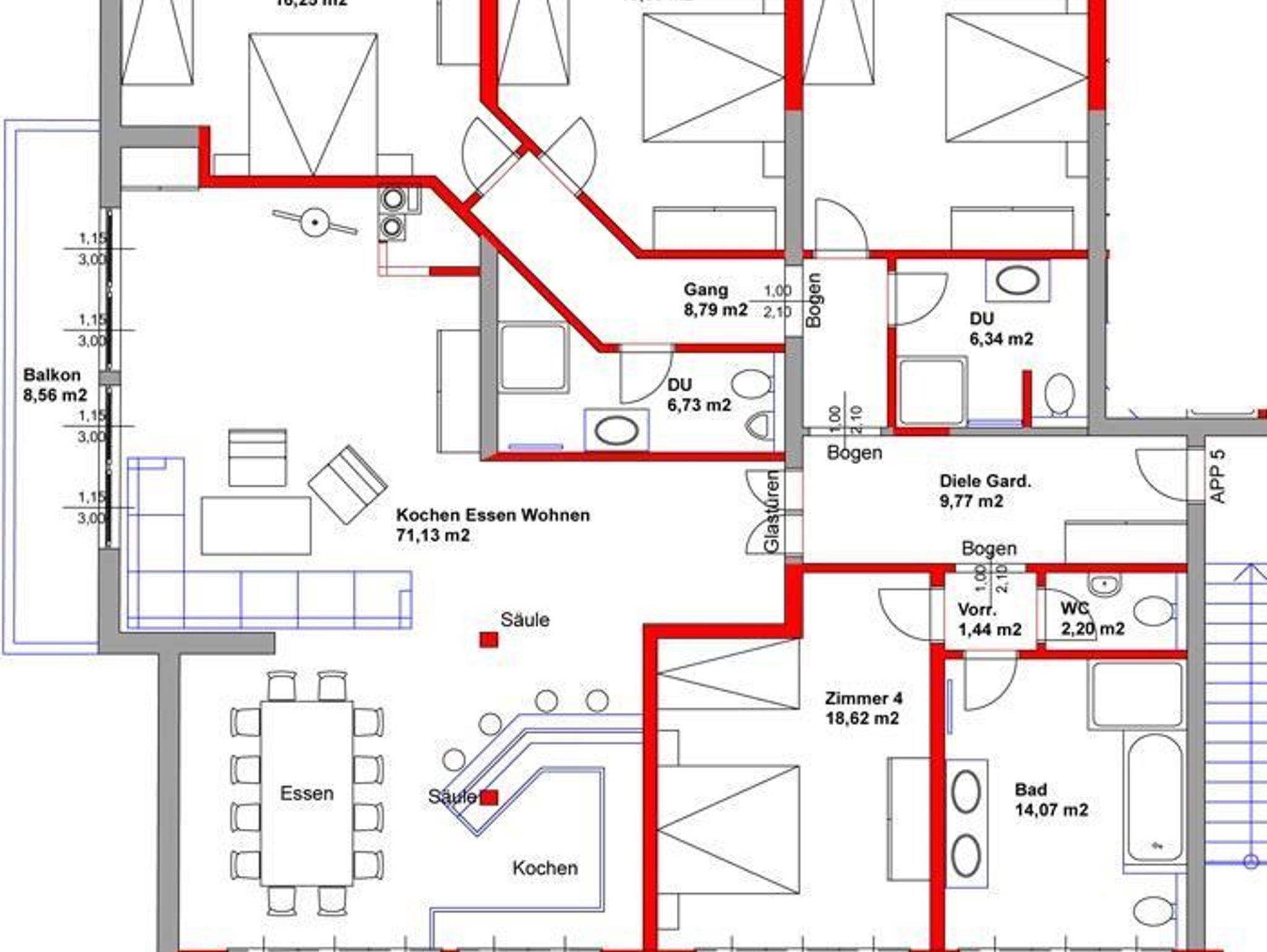 Neues, modernes Appartement 180m2. 4 Schlafzimmern und Zusatzbetten, W-Lan in jedem Zimmer.