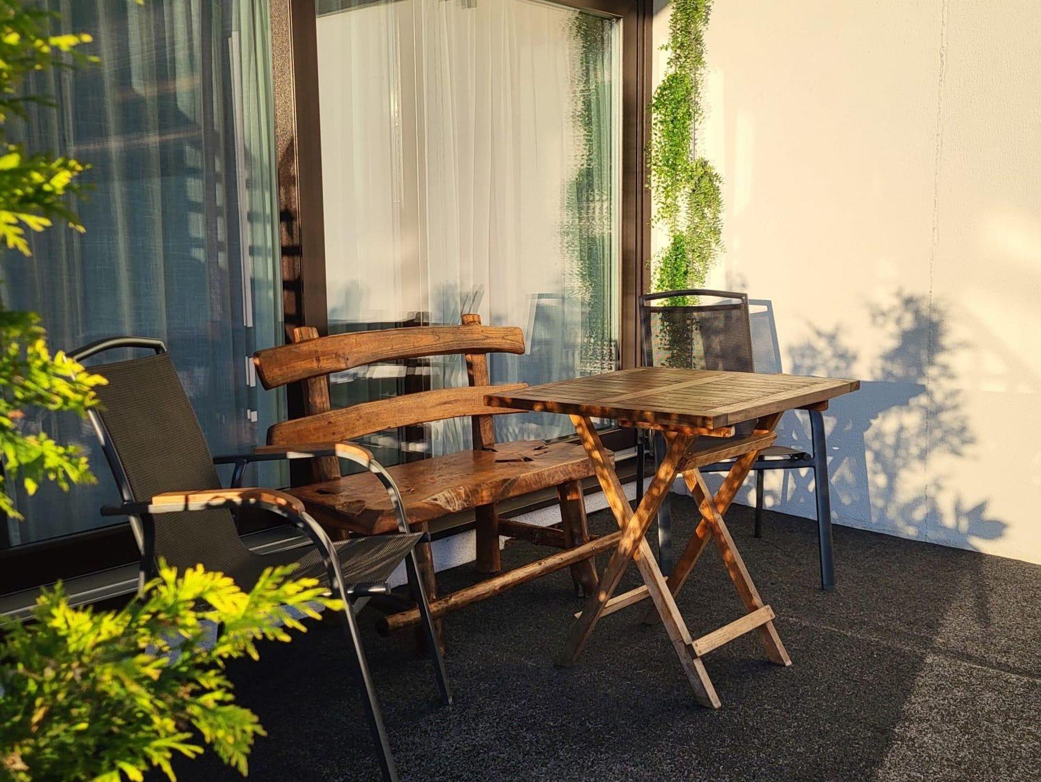 Diese Wohnung zeichnet sich durch die perfekte Aufteilung des Studios aus. Außerdem hat man von der privaten Terrasse einen schönen Blick auf das Kaisergebirge. Die Wohnung verfügt über ein Wohnzimmer mit (Schlaf-)Couch (200x120 und max. 110 Kilogramm), Doppelbett (200x160), TV, Essecke und natürlich eine Küche für die Zubereitung einer einfachen Mahlzeit. Das Badezimmer hat eine Dusche, ein Waschbecken und eine Toilette.