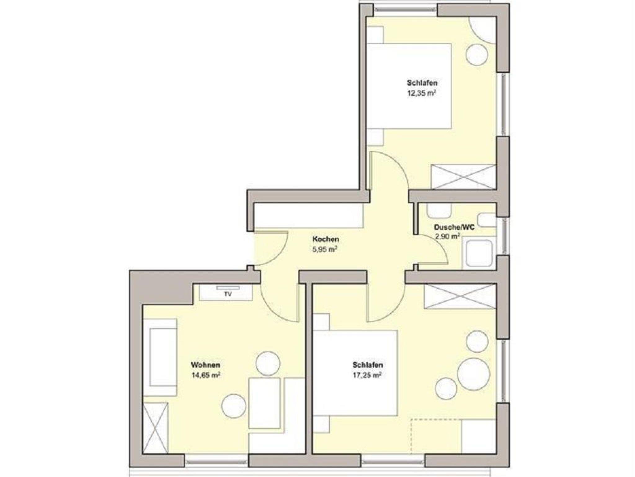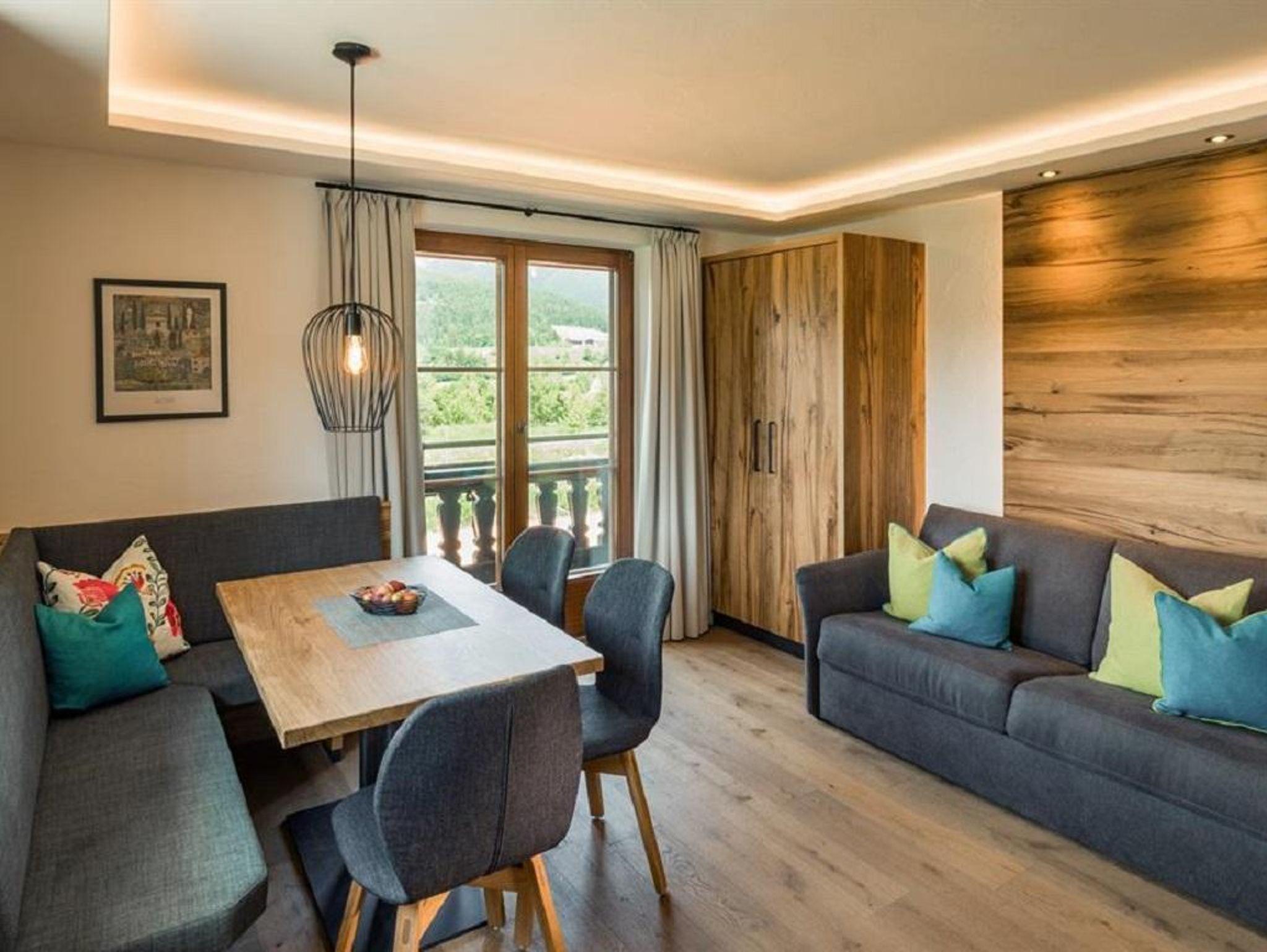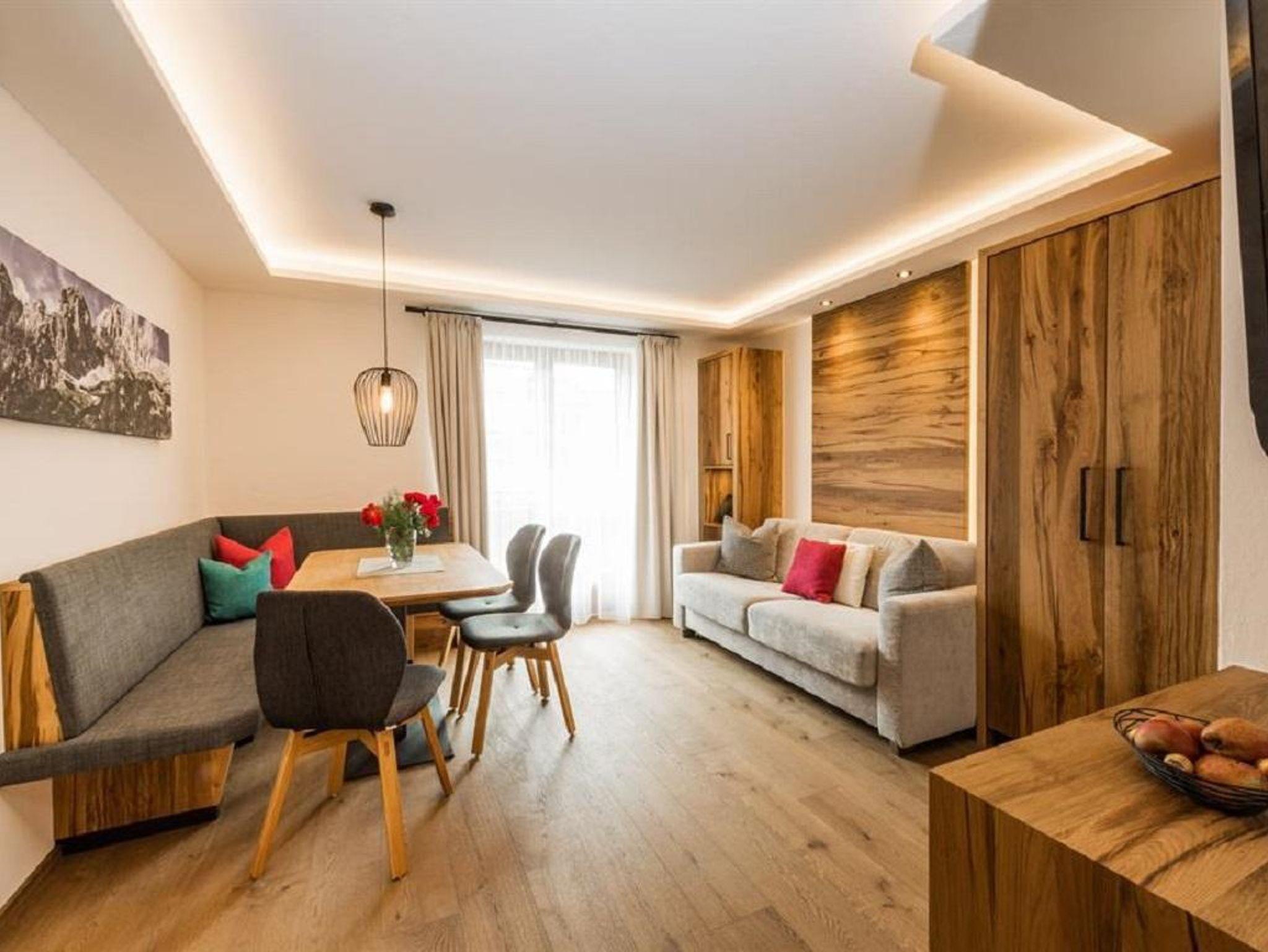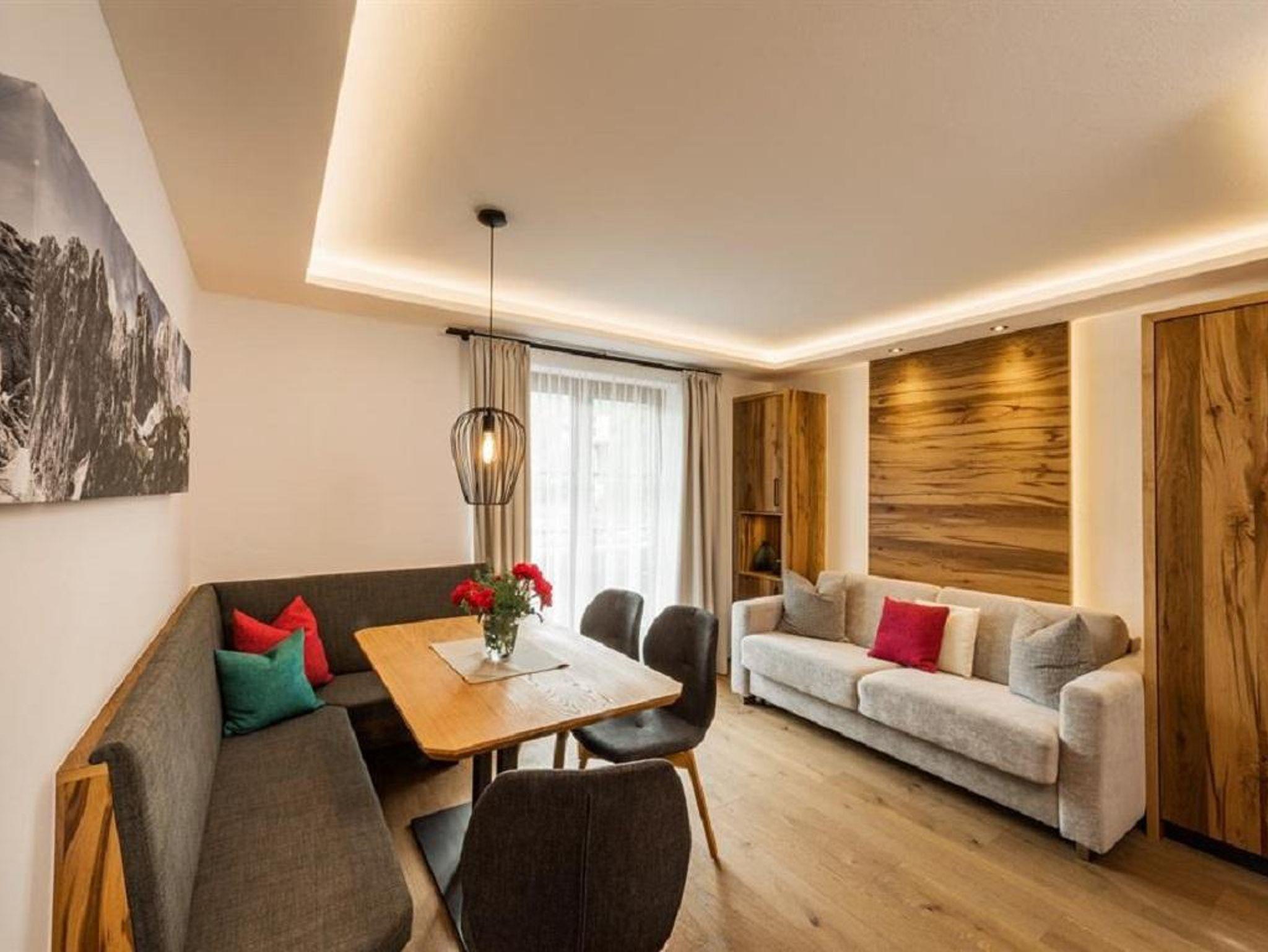 Das Appartement verfügt über einen Wohn-Schlafraum mit Eßecke, Doppelcouch zum Ausziehen, Farb-TV und Telefon, 2 separate Schlafräume, Kochnische, DU/WC und Balkon in Richtung Wilder Kaiser sowie zur Südseite.