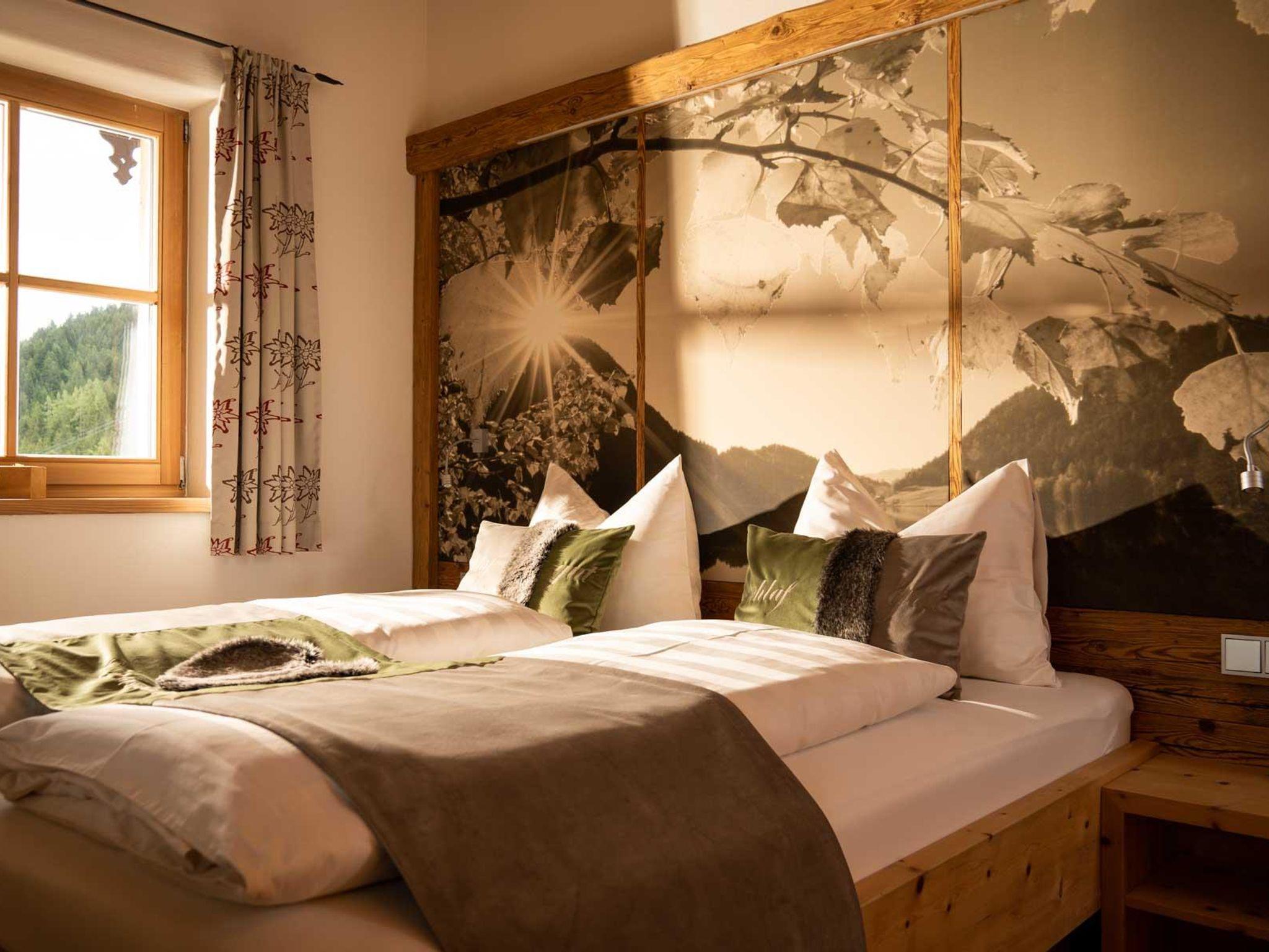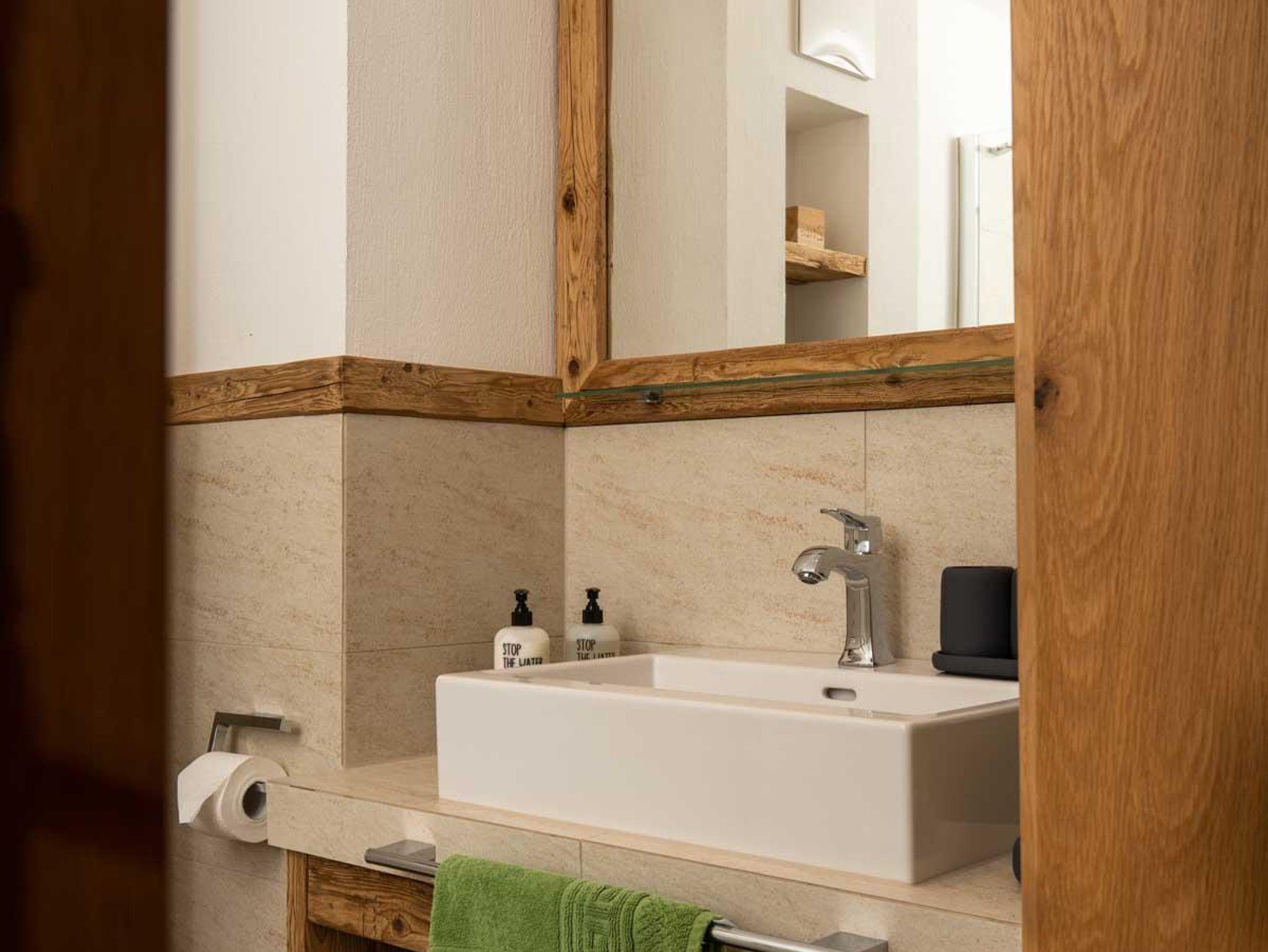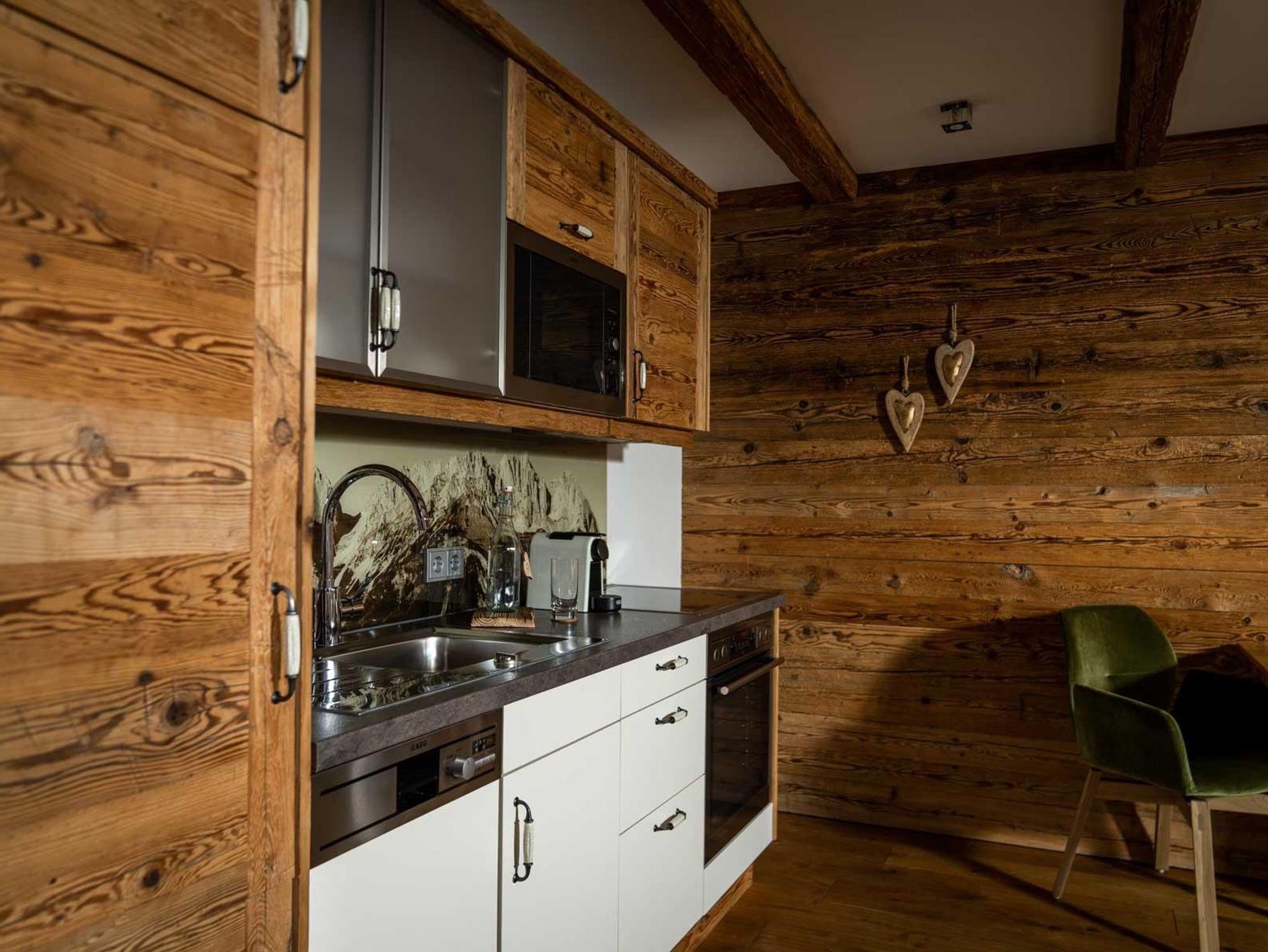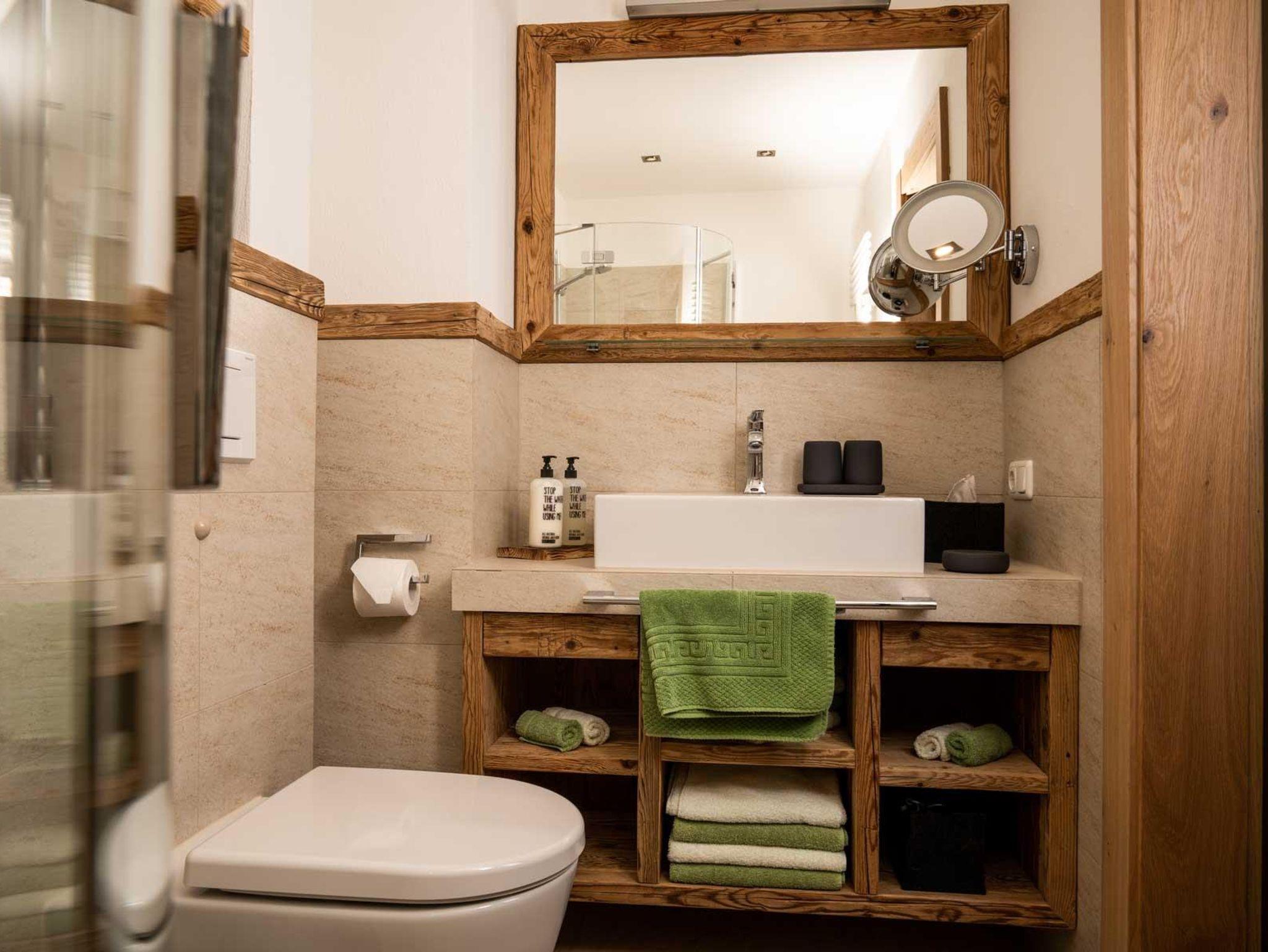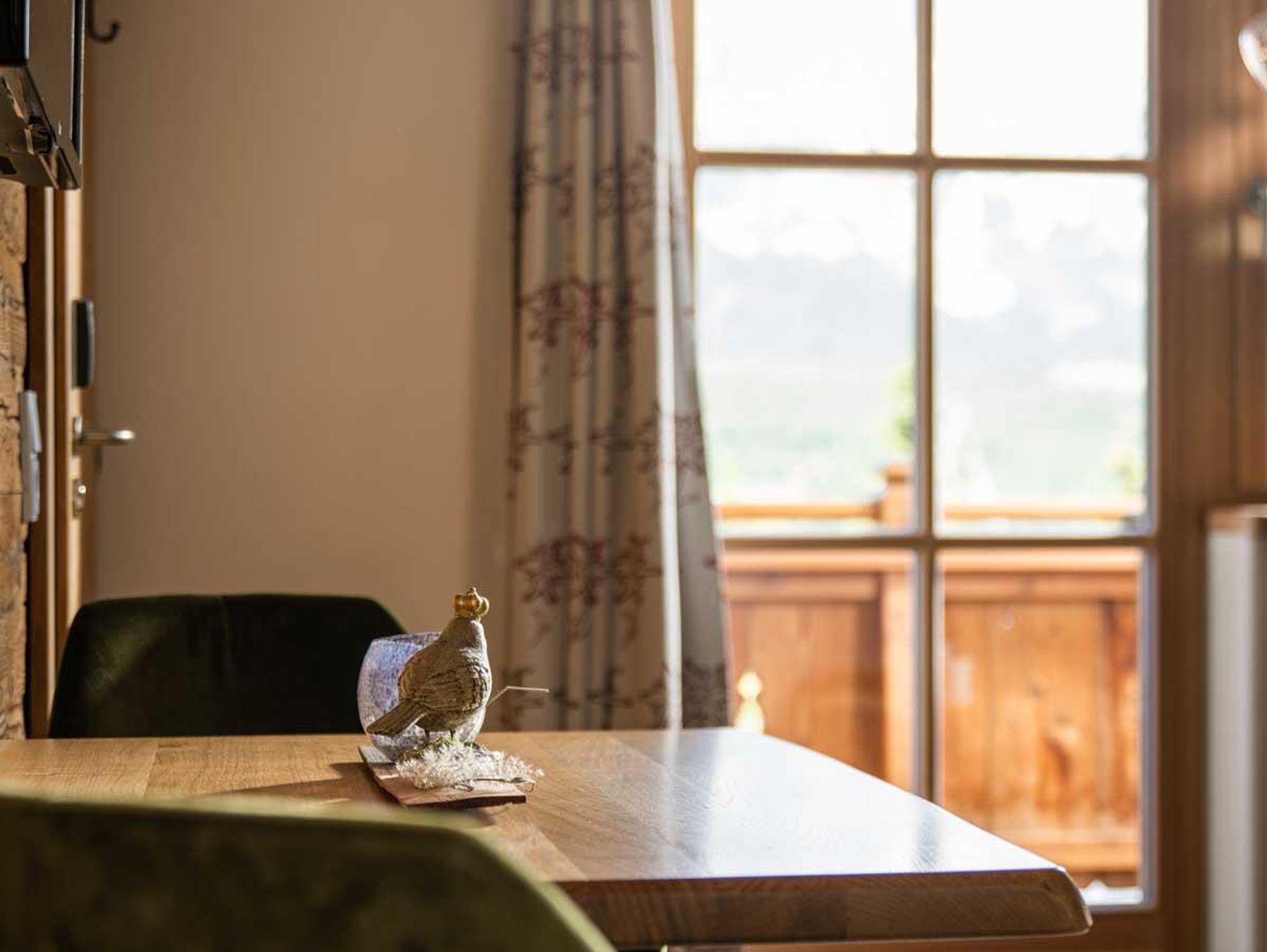 Die Einrichtung ist sehr gemütlich und luxuriös. Naturholz sowie Altholz sorgen für ein entsprechendes Ambiente. Zirbenholz in den Schlafzimmern für einen gesunden Schlaf sowie massive Holzböden mit Fußbodenheizung und in zwei Appartements ein offener Kamin sorgen für eine wohlige Wärme und runden das Wohlbefinden ab. Einem gesunden und behaglichen Raumklima und somit einem erholsamen Urlaub steht nichts mehr im Wege.