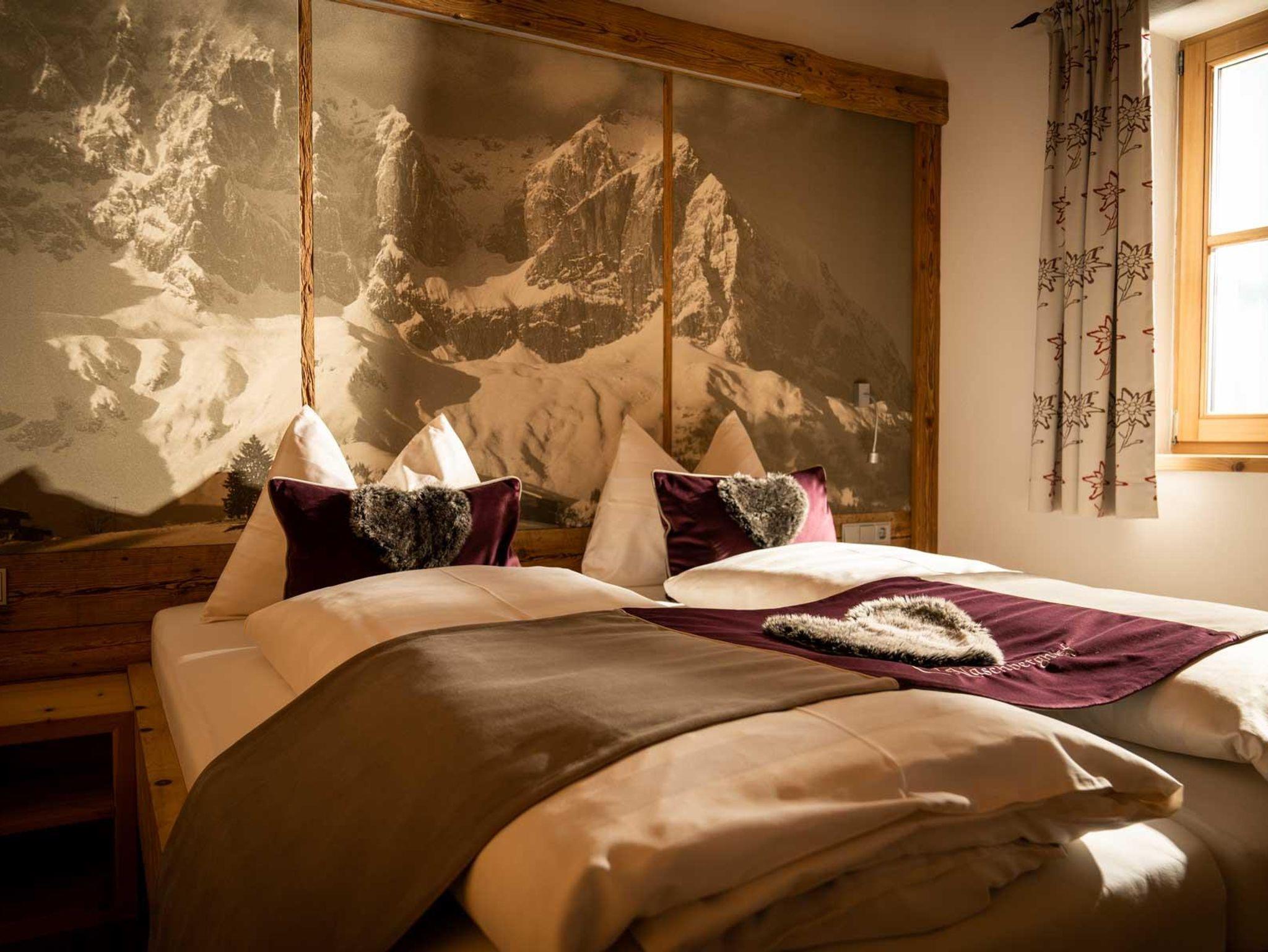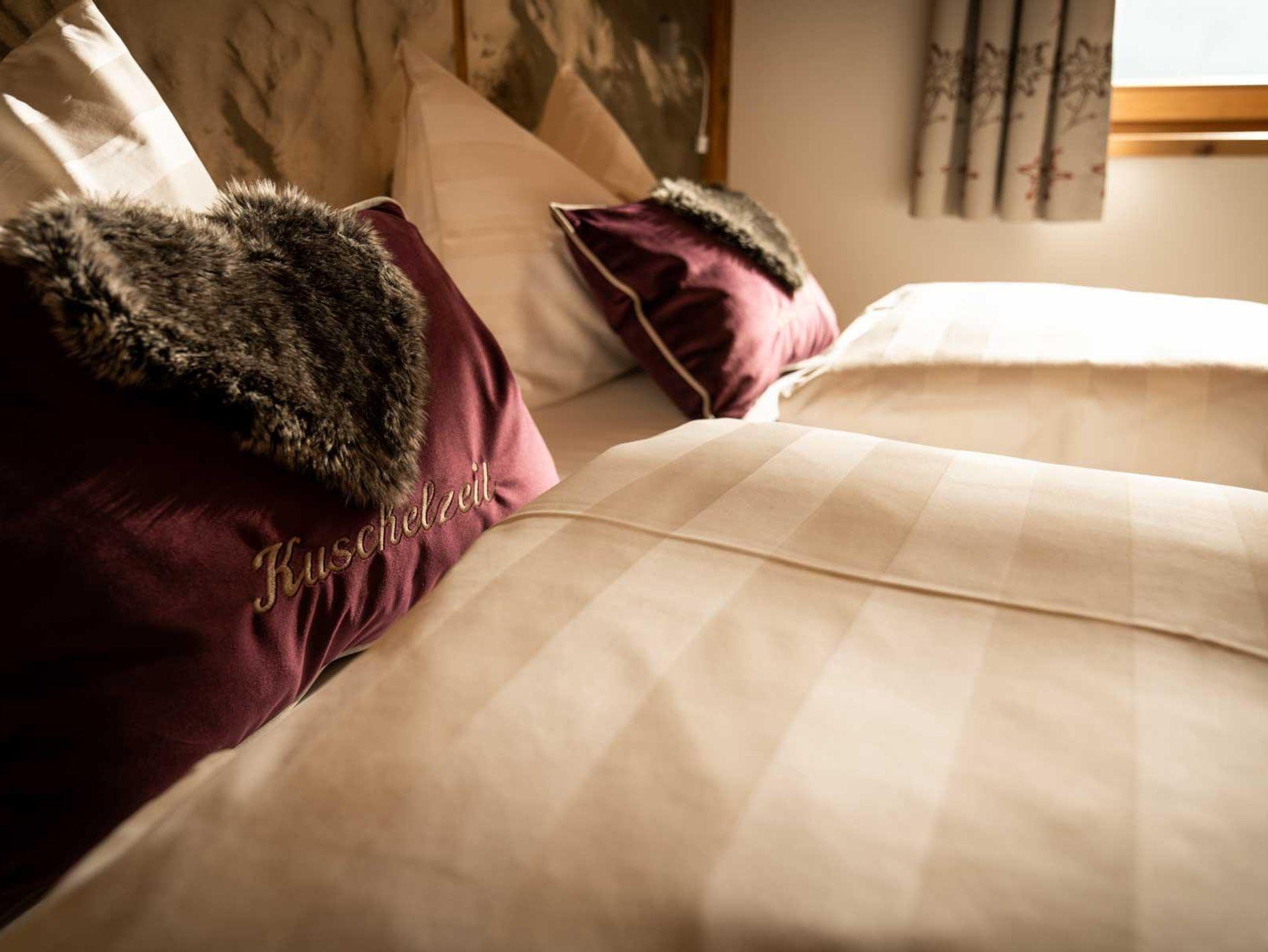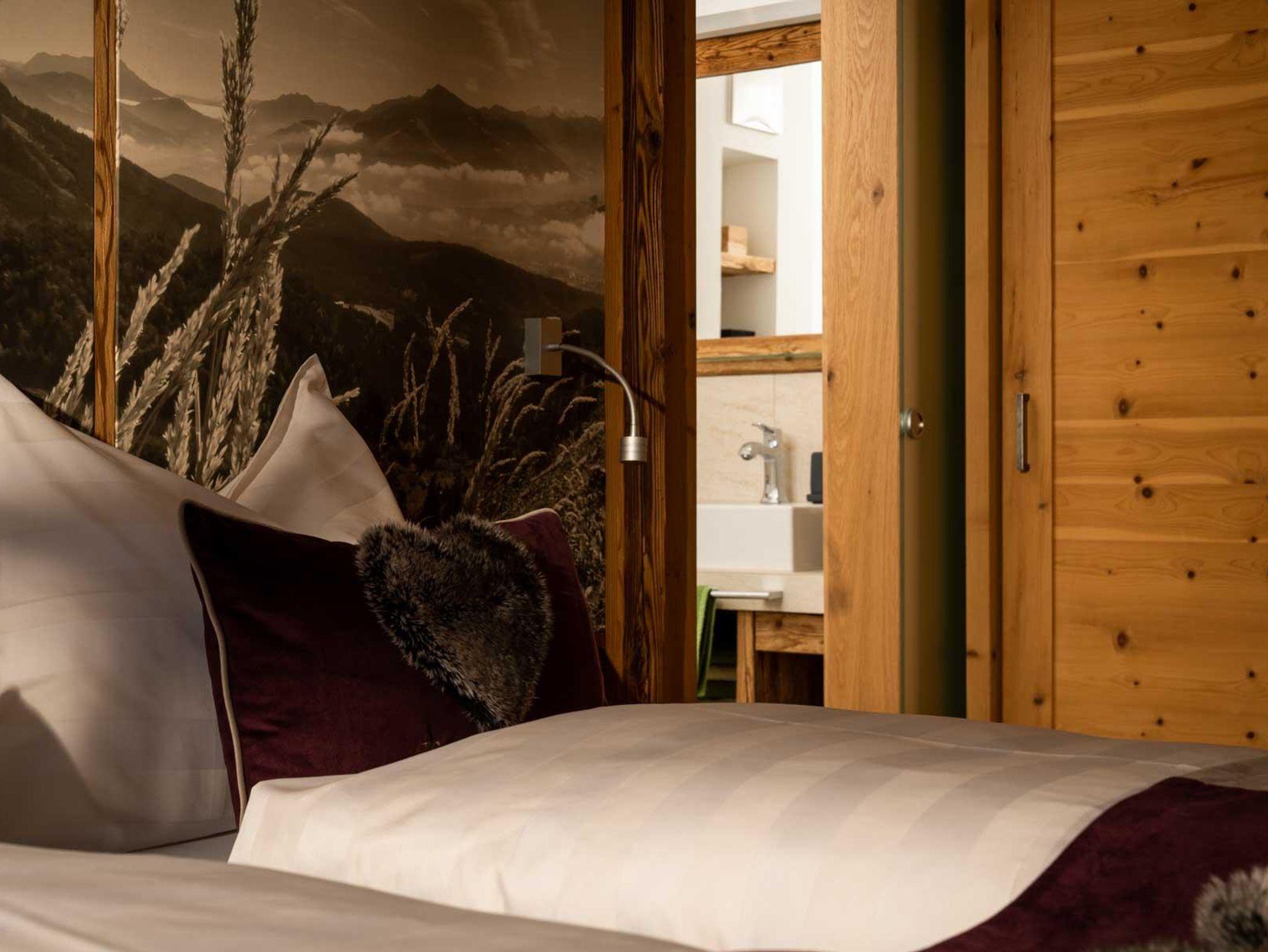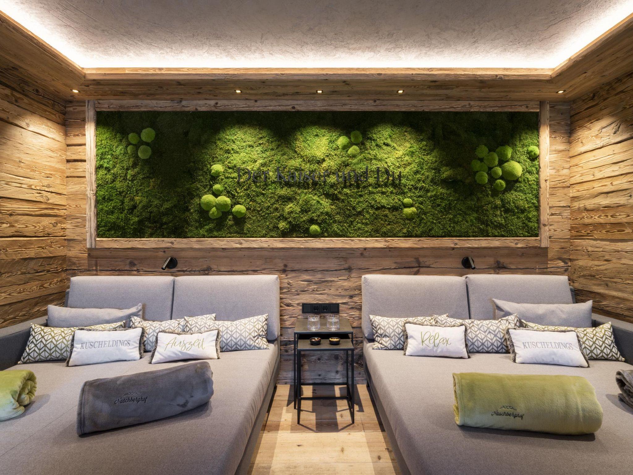 Die Einrichtung ist sehr gemütlich und luxuriös. Naturholz sowie Altholz sorgen für ein entsprechendes Ambiente. Zirbenholz in den Schlafzimmern für einen gesunden Schlaf sowie massive Holzböden mit Fußbodenheizung und in zwei Appartements ein offener Kamin sorgen für eine wohlige Wärme und runden das Wohlbefinden ab. Einem gesunden und behaglichen Raumklima und somit einem erholsamen Urlaub steht nichts mehr im Wege.