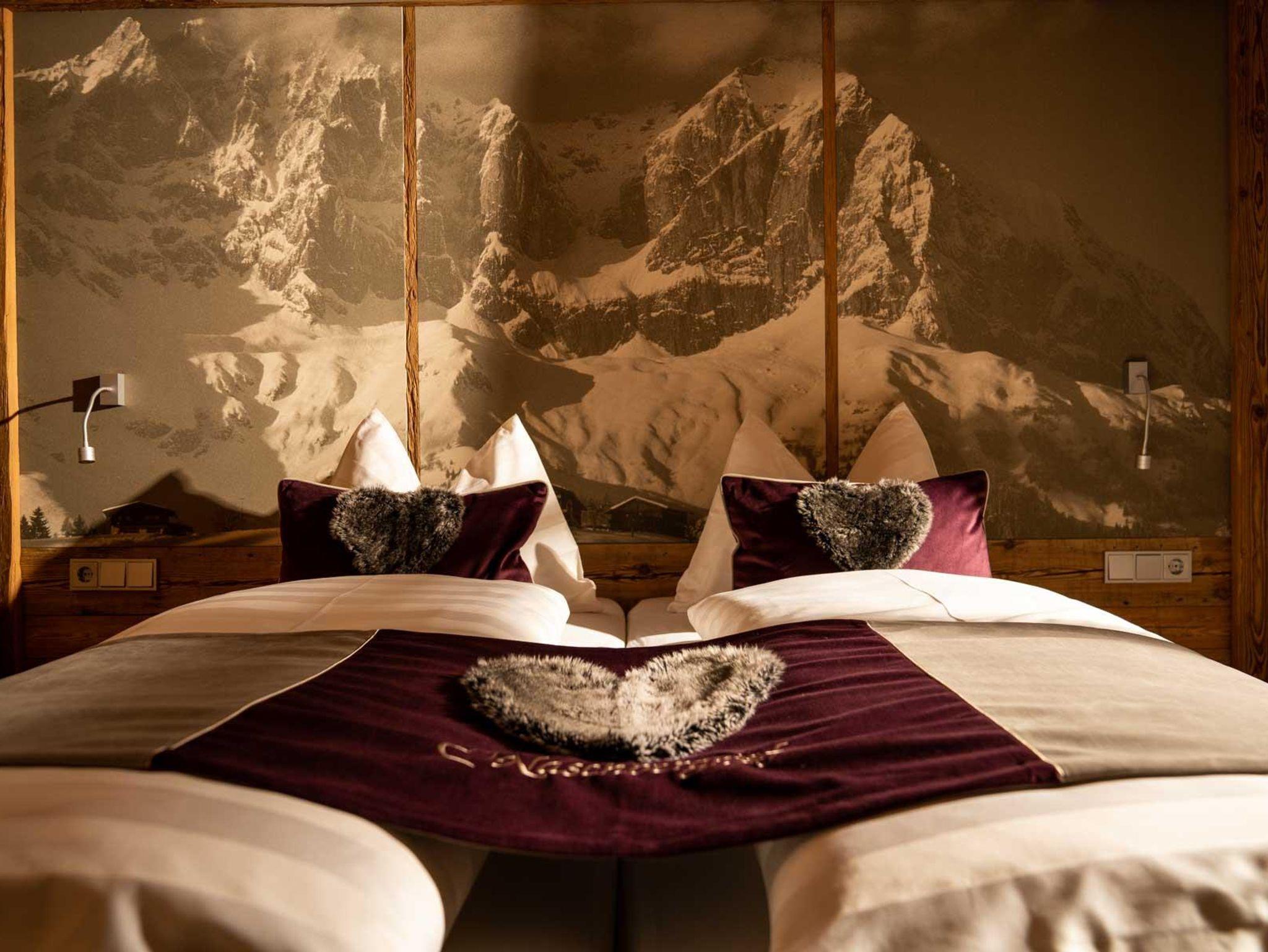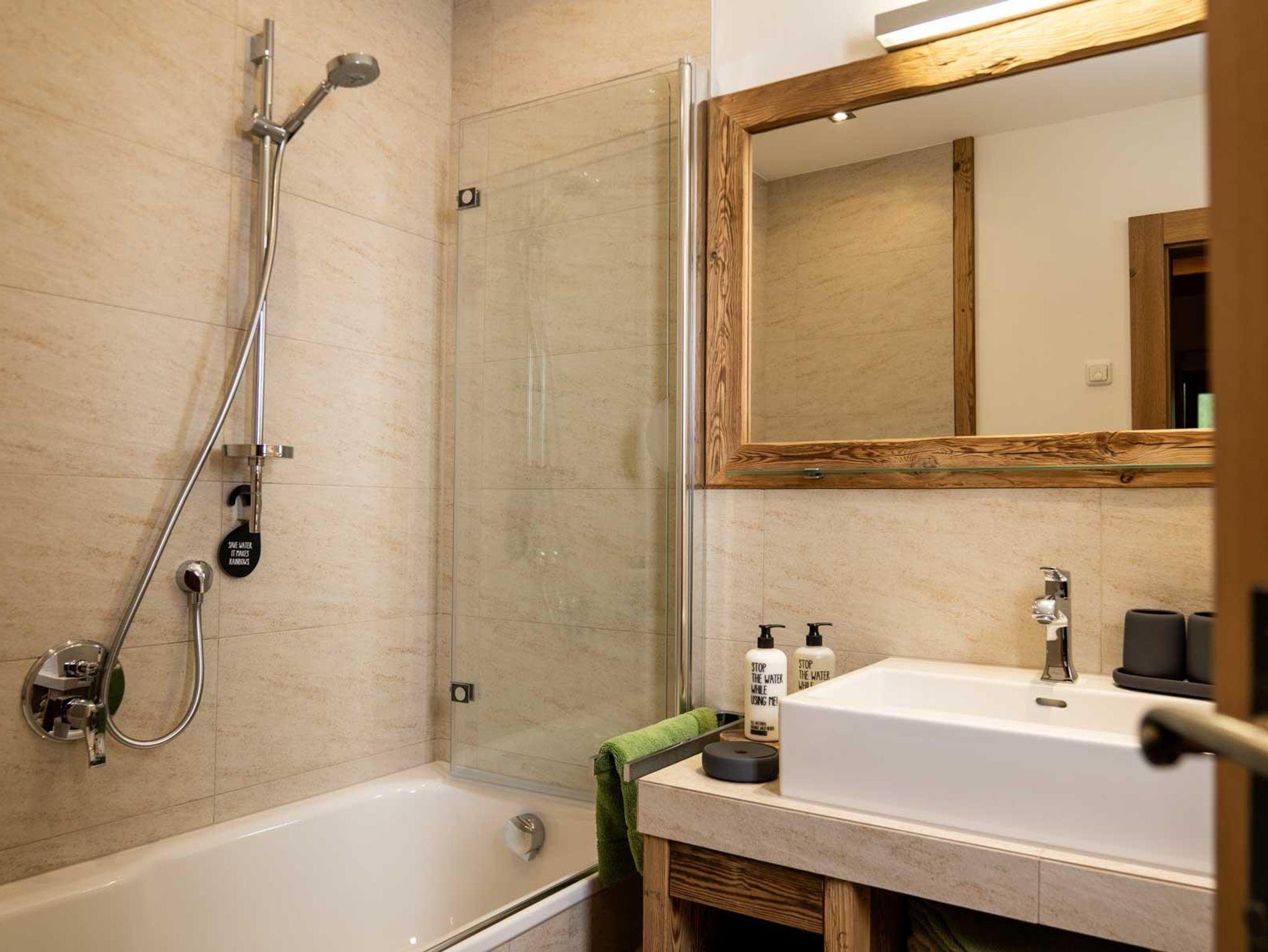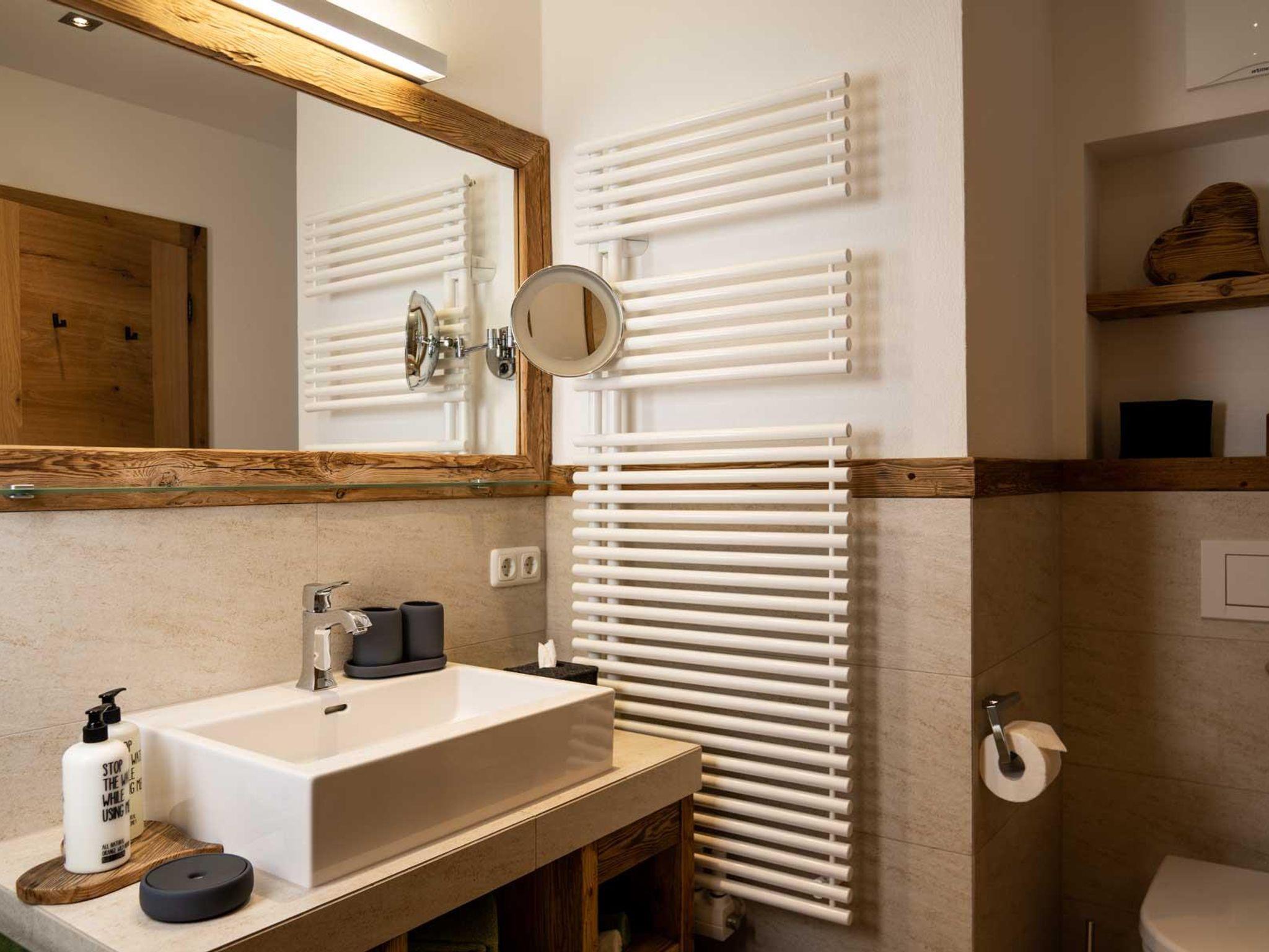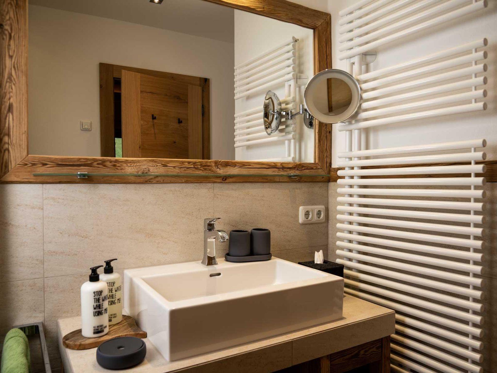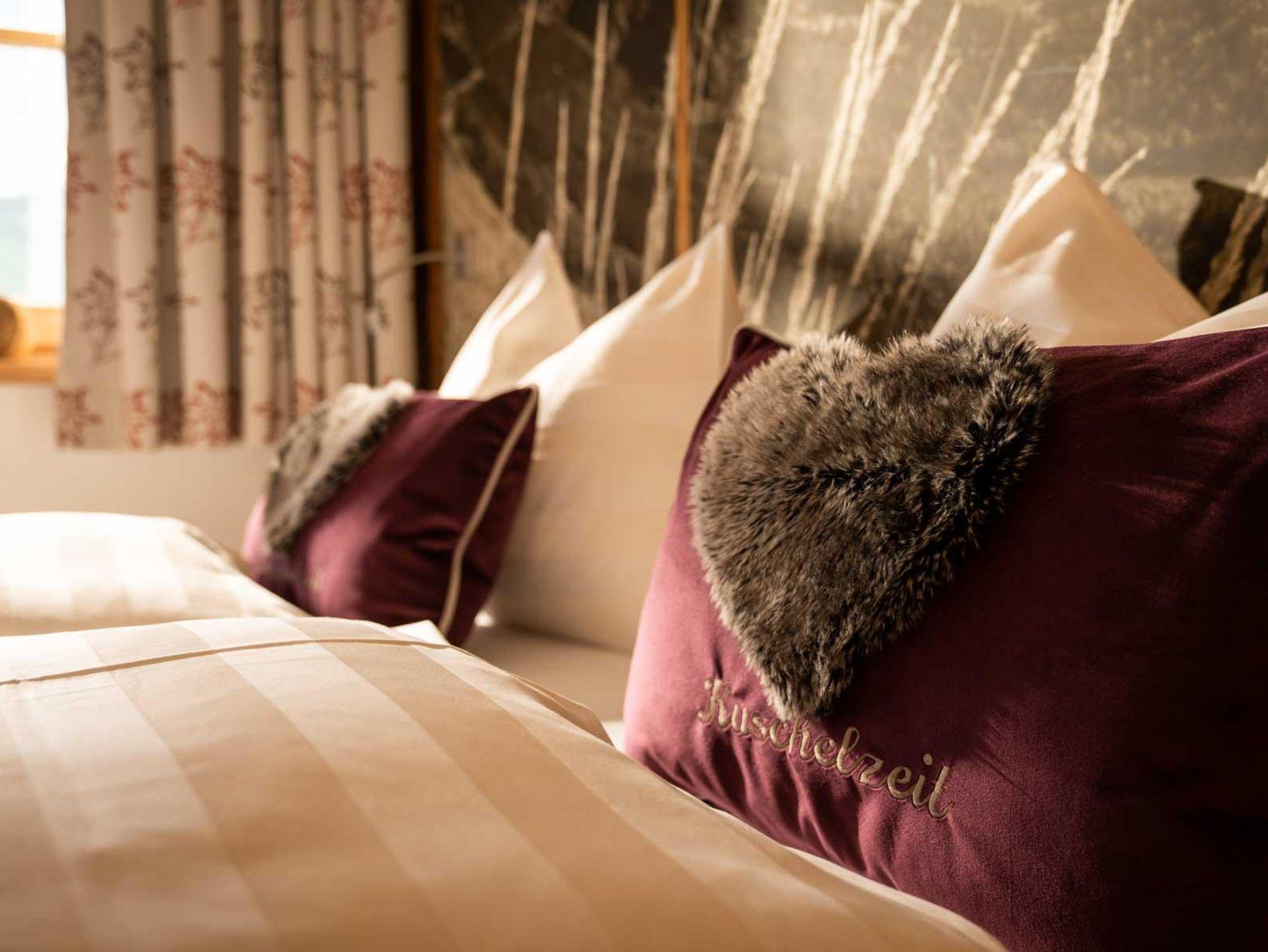 Die Einrichtung ist sehr gemütlich und luxuriös. Naturholz sowie Altholz sorgen für ein entsprechendes Ambiente. Zirbenholz in den Schlafzimmern für einen gesunden Schlaf sowie massive Holzböden mit Fußbodenheizung und in zwei Appartements ein offener Kamin sorgen für eine wohlige Wärme und runden das Wohlbefinden ab. Einem gesunden und behaglichen Raumklima und somit einem erholsamen Urlaub steht nichts mehr im Wege.