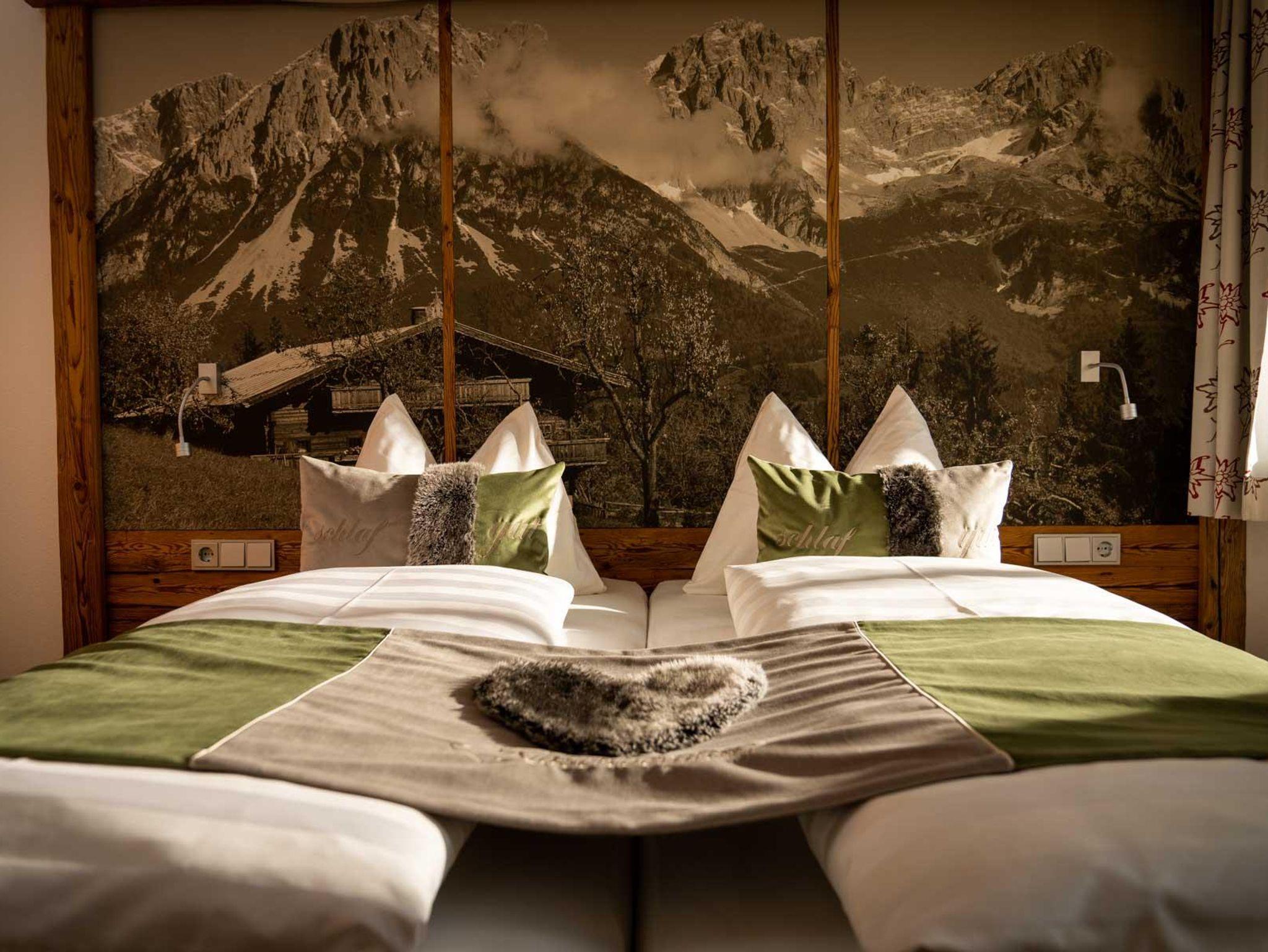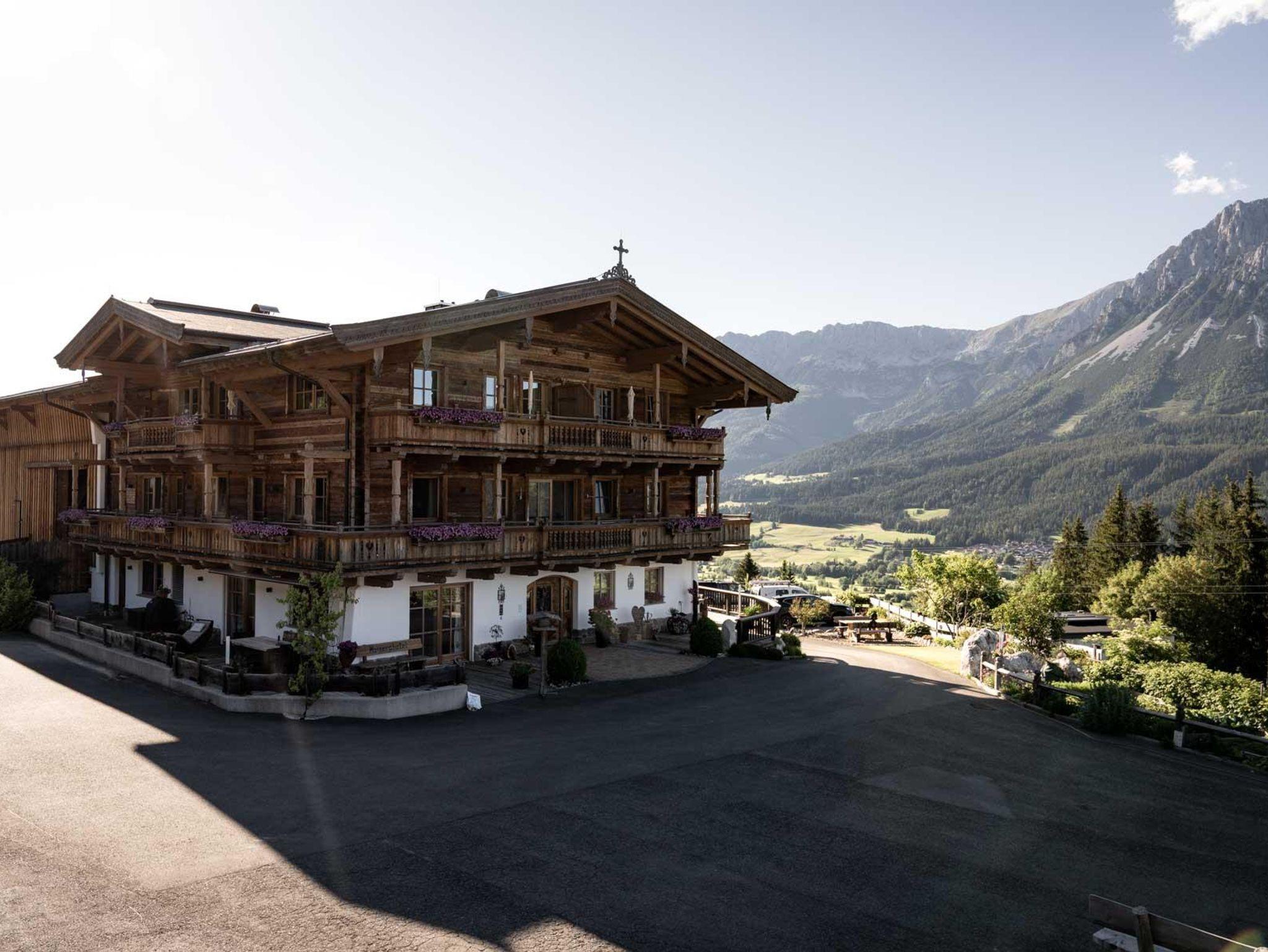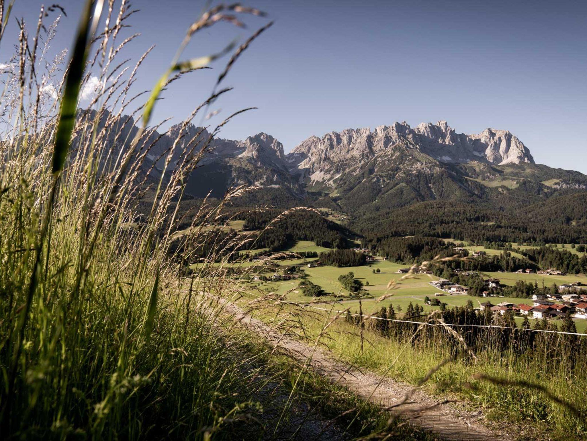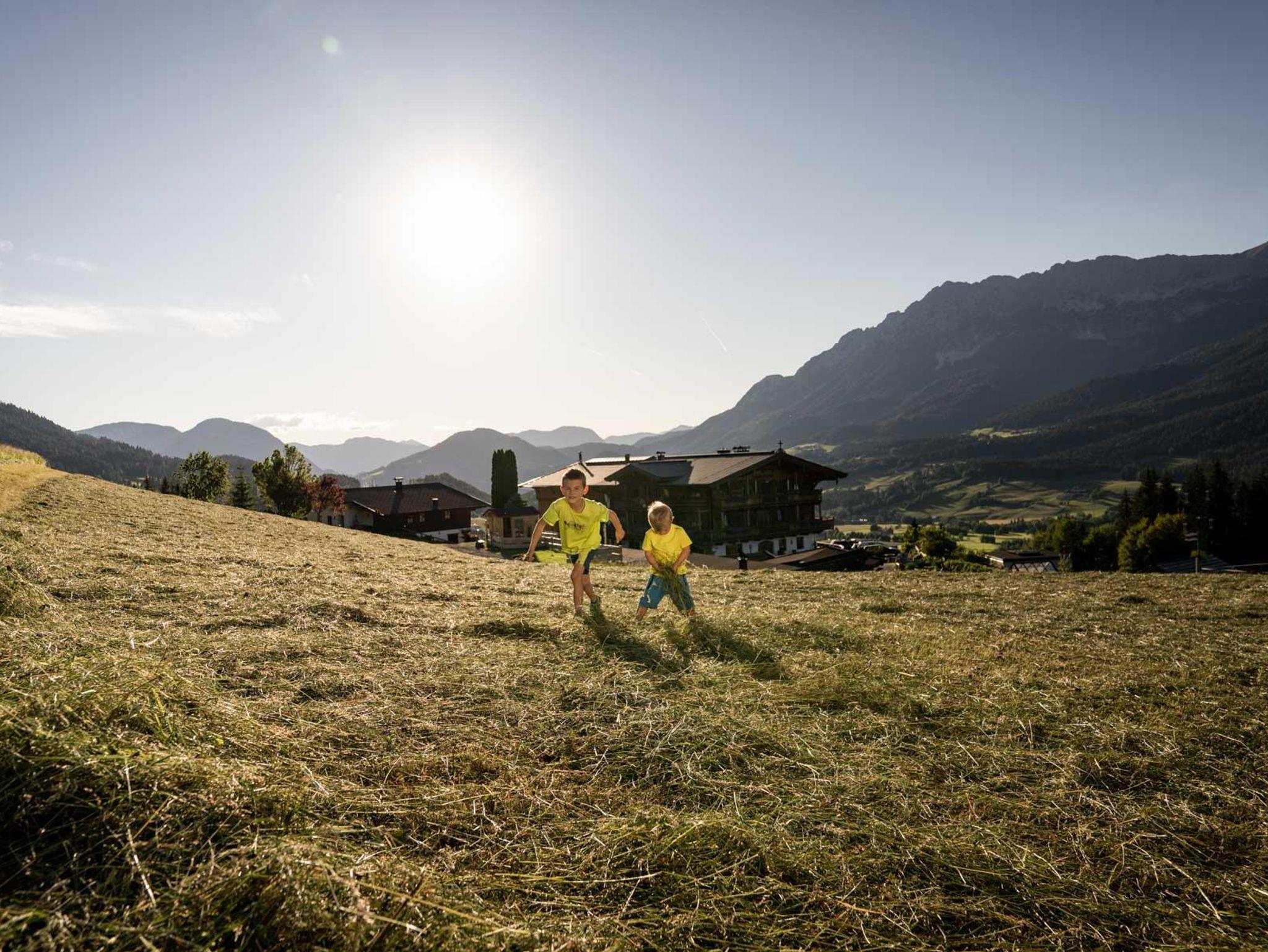 Unser Naschberghof liegt auf einem Plateau etwas oberhalb vom Ortszentrum Ellmau inmitten der Natur, umgeben von Wiesen und Wäldern. Von hier genießen Sie einen unverbauten und einzigarten Panoramablick auf das Bergmassiv des Wilden Kaisers sowie auf die gesamte Bergwelt. Zum Ortszentrum sind es 10 Minuten zu Fuß.