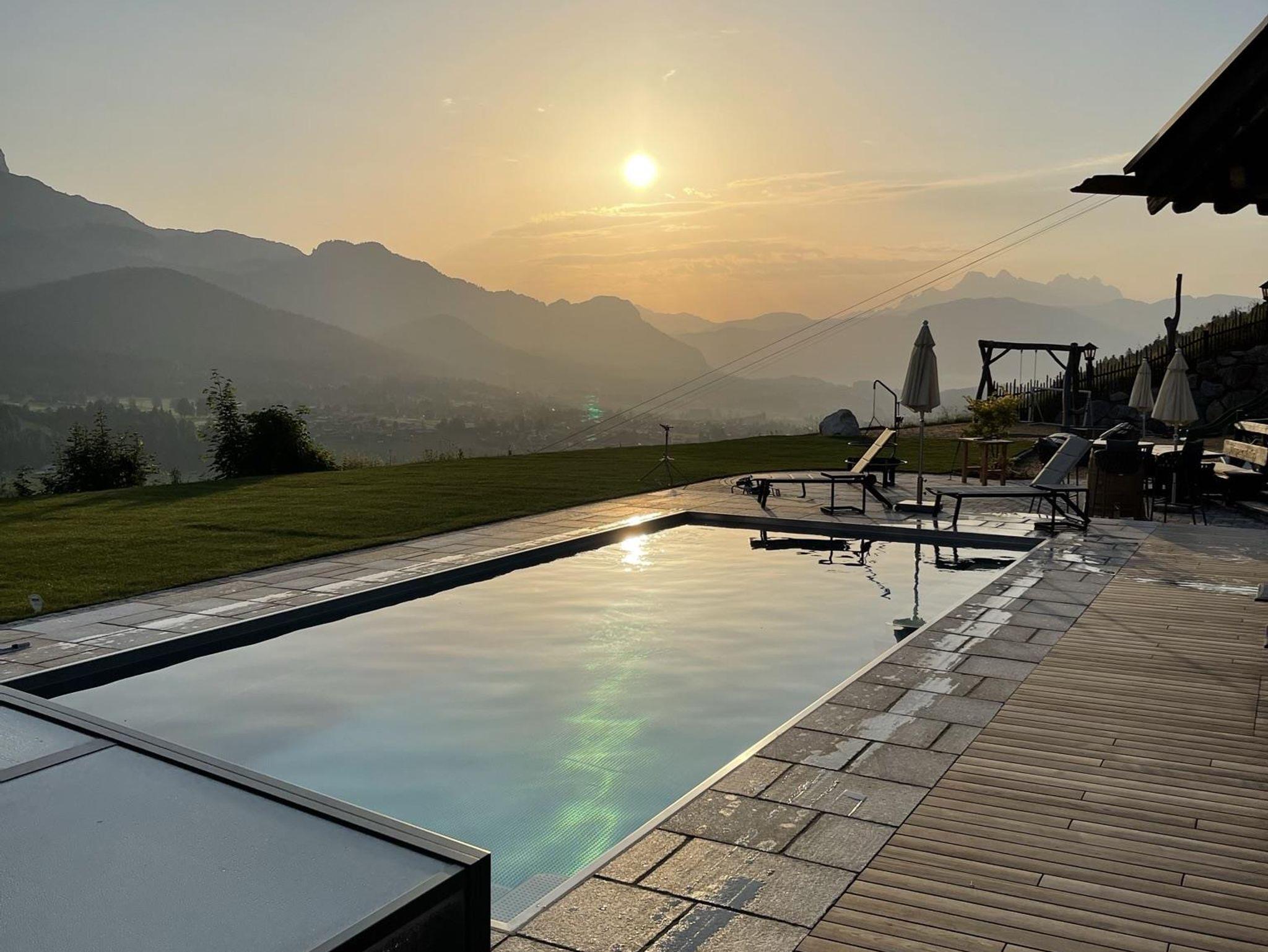 Exklusives Appartement (98 m²) für 2 - 8 Personen im Tiroler Stil mit hochwertiger Ausstattung. Das Appartement verfügt über 1 Vorraum, 3 Schlafzimmer, 2 moderne Bäder mit Dusche/WC und Badewanne/WC, 1 großer Wohnraum mit Küche, gemütlicher Sitzecke und Sofa sowie einem traumhaften offenen Kamin, Flat-TV, Safe und W-LAN (kostenlos). Die Küche ist in gehobener Austattung und komplett eingerichtet. Im Wohnbereich sind massive Holzböden und die Schlafzimmer sind aus Zirbenholz für einen gesunden Schlaf. In der gesamten Wohnung ist Fußbodenheizung. Das Appartement hat zwei wunderschöne Balkone und ist südlich ausgerichtet und bietet einen herrlichen Blick zum Hartkaiser sowie auf die Loferer Steinberge und die umliegende Bergwelt. Stellplatz im Carport sowie Parkplatz. Kinderermäßigung auf Anfrage.