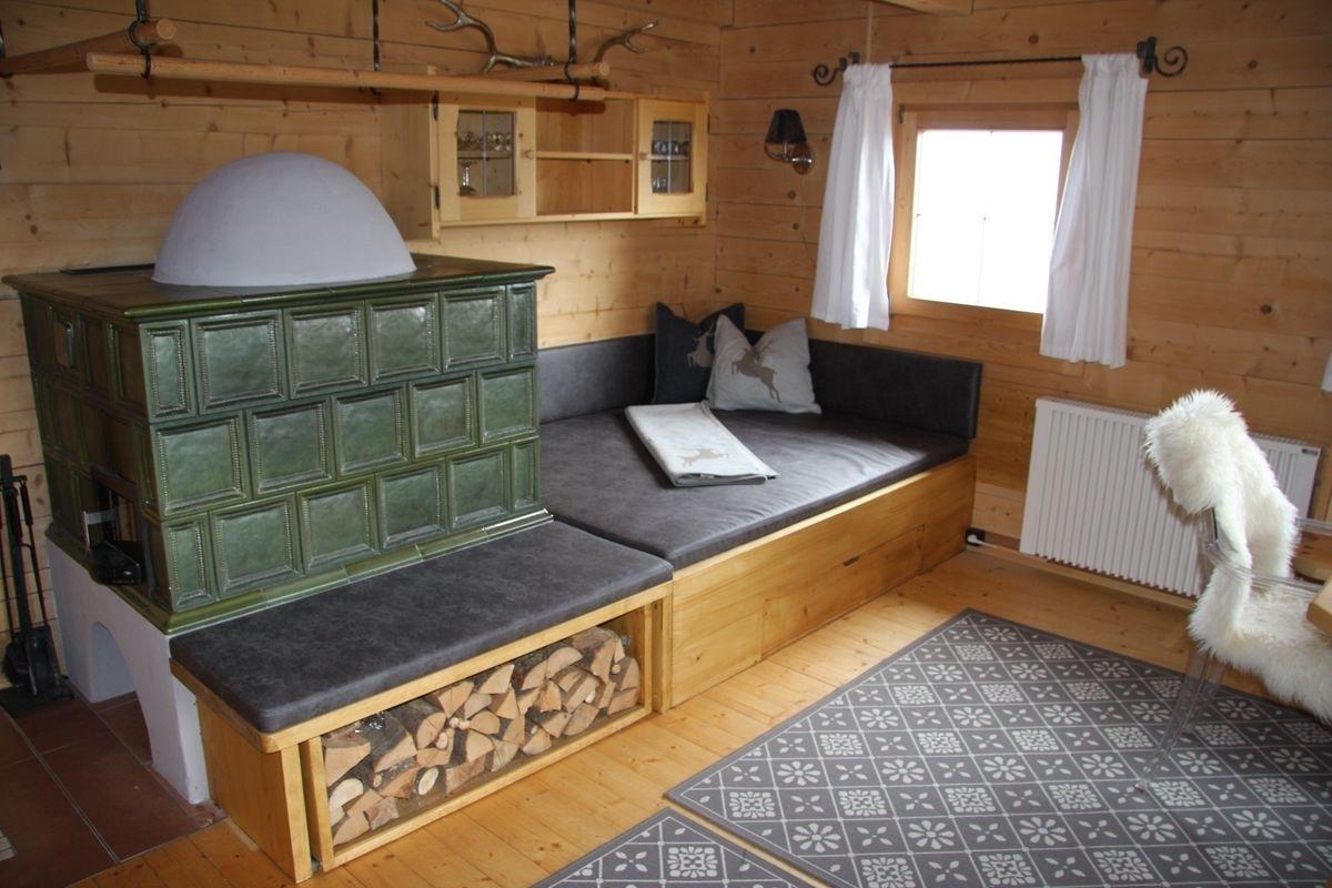 ? Gemütliche Wohnstube mit Kachelofen und Sitzbereich