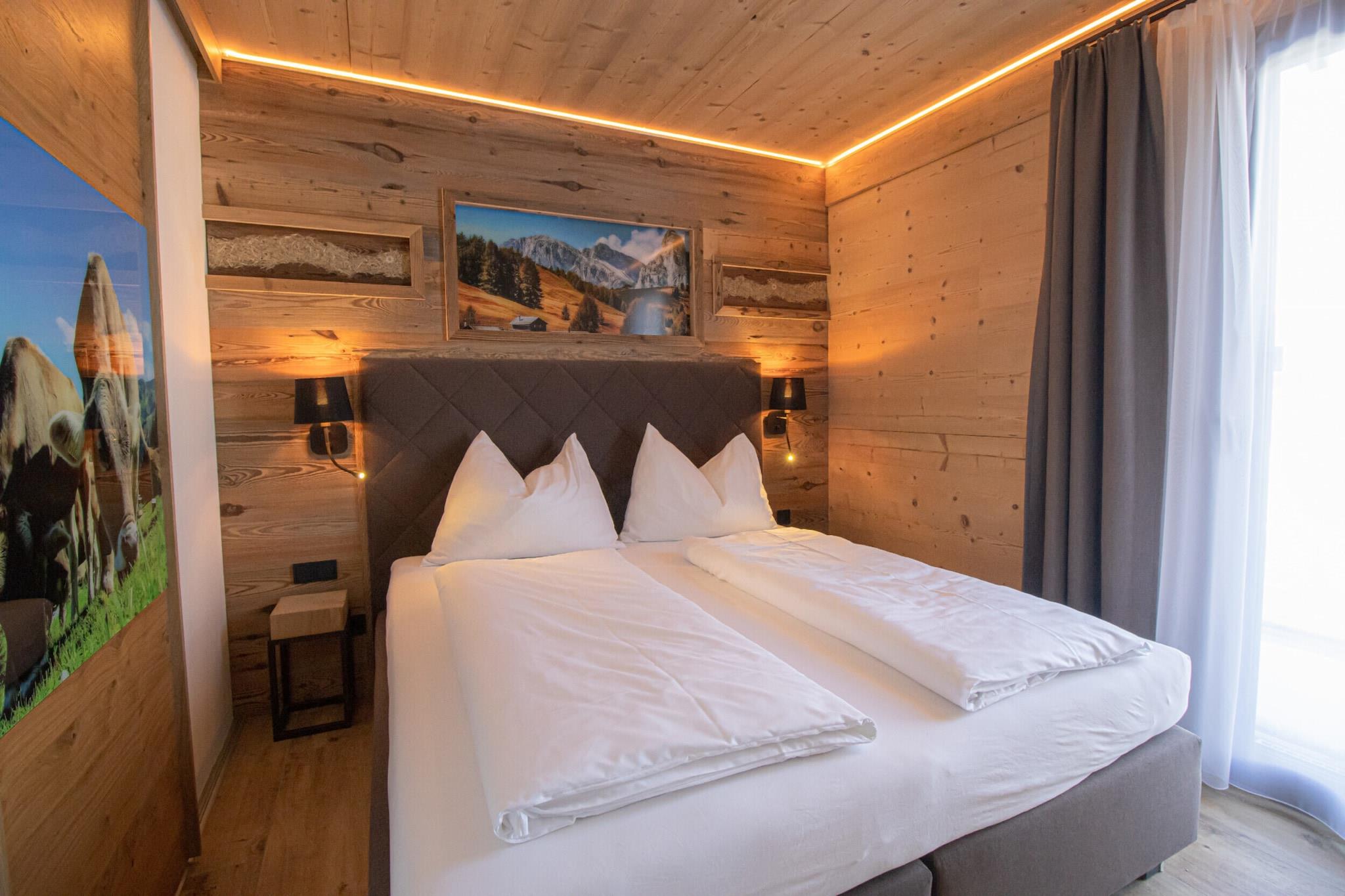 Oplev det ultimative inden for alpin luksus i vores 100 m² superior chalet, perfekt designet til at rumme op til 8 gæster. Denne rummelige hytte har tre elegant indrettede soveværelser og tre badeværelser, herunder et en-suite badeværelse, en balinesisk dampbruser med sauna og et ekstra badeværelse med bruser. To separate badeværelser tilføjer ekstra bekvemmelighed. Hvert soveværelse er udstyret med luksuriøse dobbeltsenge med boxspring, og et værelse er udstyret med en dobbeltseng og en køjeseng, ideelt for familier. Den lyse, åbne stue suppleres af et hyggeligt gaskomfur og byder på en fantastisk udsigt over bjergene, hvilket skaber en afslappende atmosfære. Det fuldt udstyrede køkken indeholder alt hvad du behøver: bestik, køkkenredskaber, keramisk kogeplade, ovn, køleskab med fryser og opvaskemaskine. Yderligere faciliteter er til rådighed, såsom en brødrister, en kedel og et Nespresso-filter og en kapselkaffemaskine. Et startsæt med væsentlige rengøringsmidler (opvasketabletter, opvaskemiddel, svamp, affaldspose og rengørings- og køkkenklude) vil være tilgængeligt ved ankomsten. Slap af i dit private udendørs badekar på terrassen eller nyd den afslappende sauna, perfekt til at slappe af efter en dag fuld af eventyr i Schladming-Dachstein-regionen. Hytten er bekvemt placeret cirka 300 meter fra skiløjperne og har gratis Wi-Fi og satellit-tv til din underholdning. Nyd Schladming-Dachstein Summer Card (midten af maj til begyndelsen af november) og spis på kAlps Foodbar. Regionen byder på fremragende skiløb om vinteren, vandreture om sommeren og en bred vifte af aktiviteter og arrangementer hele året rundt. Udforsk skønheden i Steiermark og skab uforglemmelige minder i vores luksuriøse hytte.