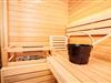 Stueetage: (Indgang , åbent køkken(kogeplade(Komfur med fire kogeplader, glaskeramisk), elkedel, brødrister, kaffemaskine(espresso, kaffetragt), opvaskemaskine , køle-fryseskab, elektriske kogeplader, ()), soveværelse(dobbeltseng), Soveværelse med badeværelse(dobbeltseng, bruser, toilet), badeværelse(bruser, håndvask, føntørrer), toilet(toilet)) På 1. etage: (Stue(Fjernsyn(parabol), spisebord, sofahjørne)) badekar, sauna, balkon, terrasse, parkering
