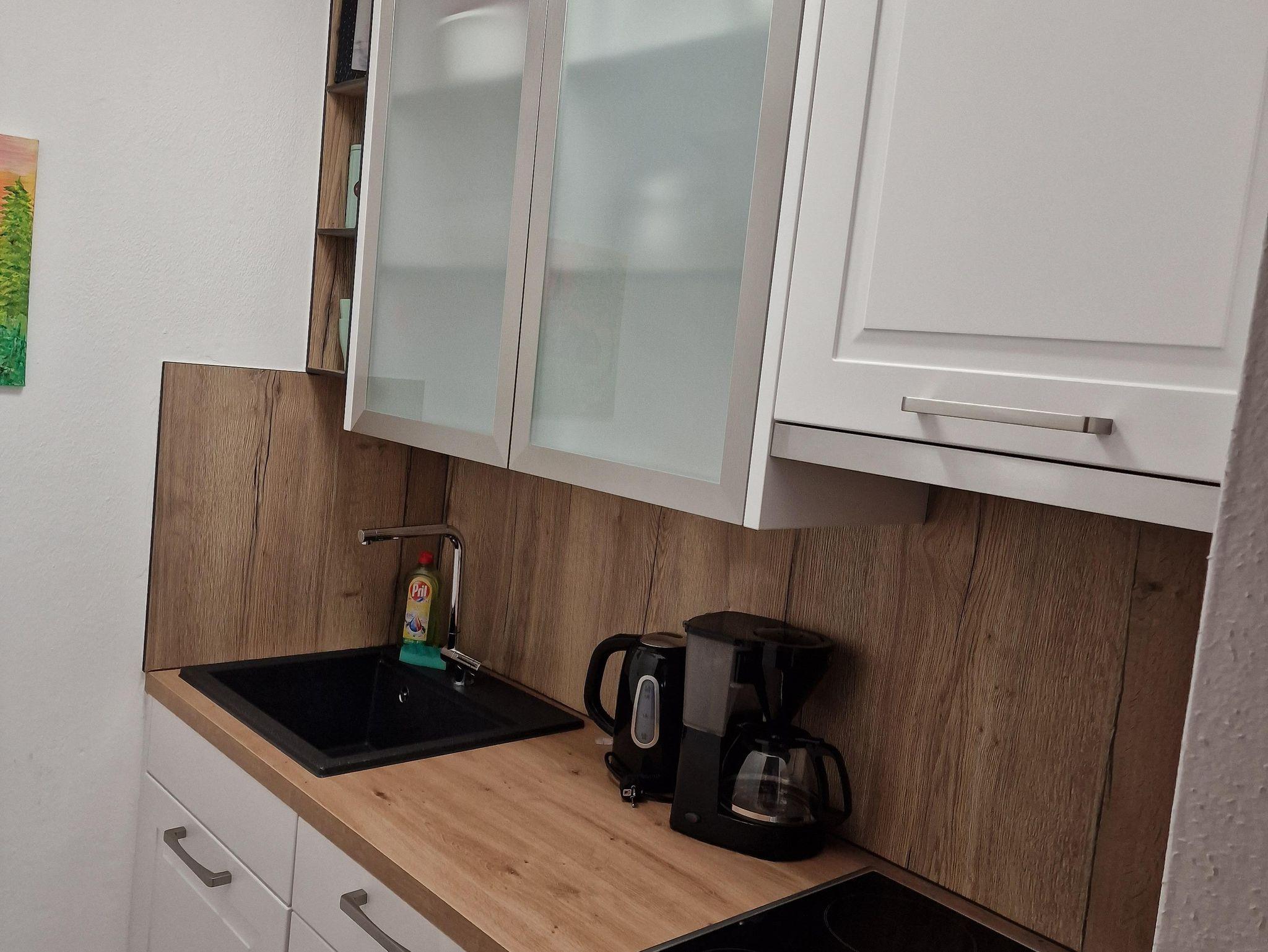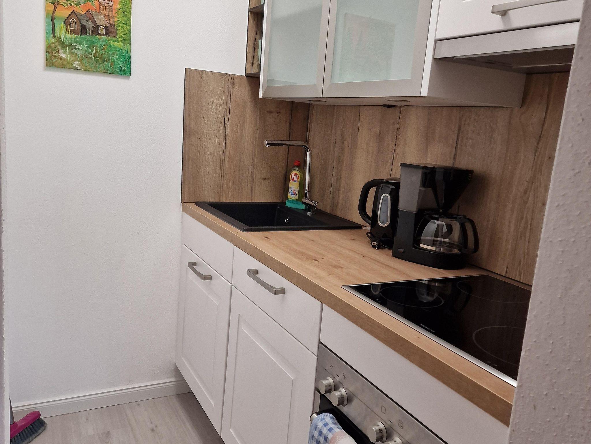 Die Ferienwohnung (ca. 45 m2) ist ausgestattet mit einem Schlafzimmer, einem Wohnschlafraum mit ausziehbarer Couch und Sitzecke, Kochnische, Bad/WC, Balkon oder Terrasse, Kabel-TV, Zimmerradio, gebührenfreier Internetanschluss.
