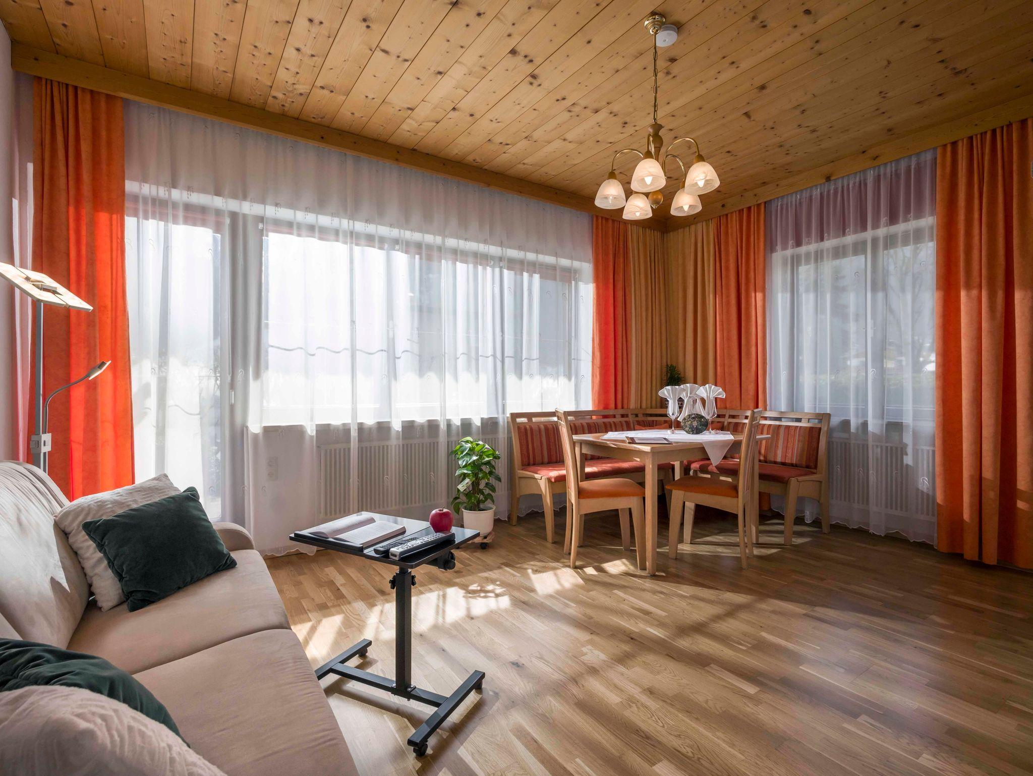 Die Wohnung verfügt über 2 Schlafzimmer und eine Wohnküche mit ausziehbarem Schlafsofa, 3 Fernseher, Sat-Empfang, Amazon-Fire TV-Stick um Netflix, Amazon-Prime, u.a. Online-Dienste nutzen zu können. Ihre Küche ist voll ausgestattet: Geschirr, Kochutensilien, Geschirrspüle, Kaffeevollautomat, Backherd und Ceranfeld. Bad mit Whirlpool-Badewanne und Licht-Therapie. Schlafzimmer mit Room-in (WC mit Dusche). Im Haus ist zusätzlich ein Spieleraum und eine Waschmaschine mit eingebautem Trockner.