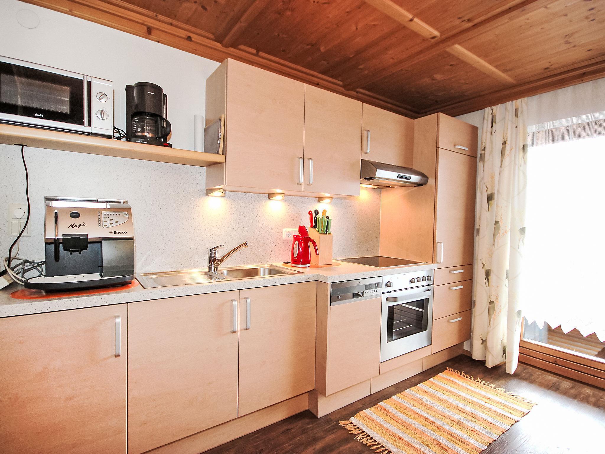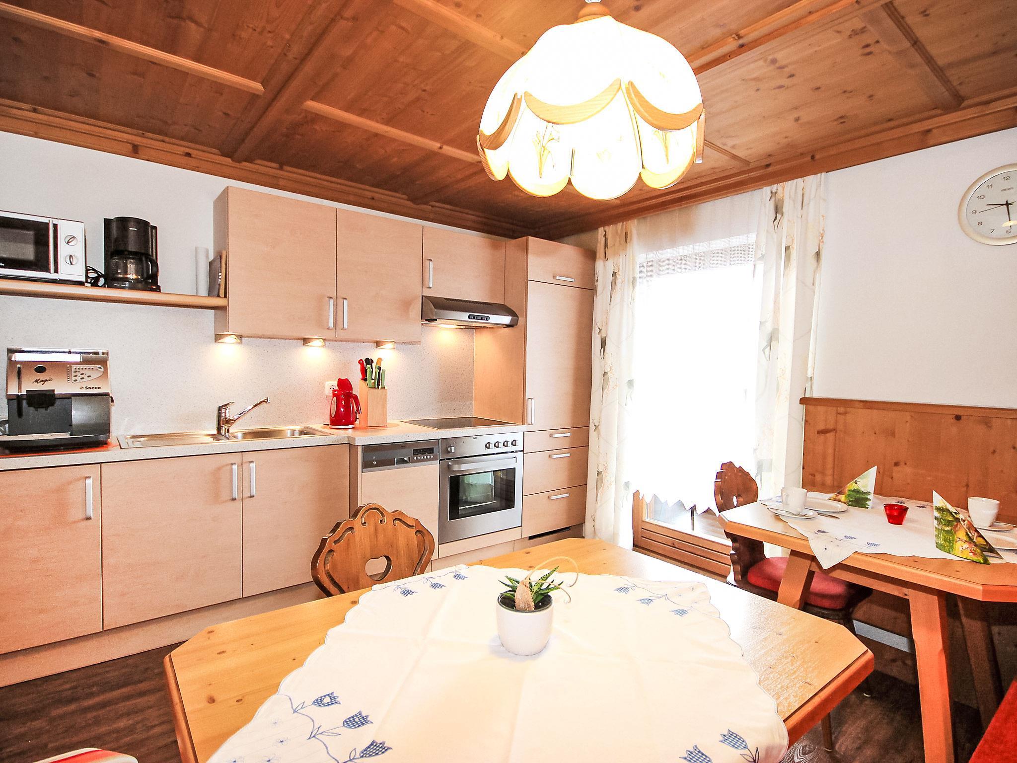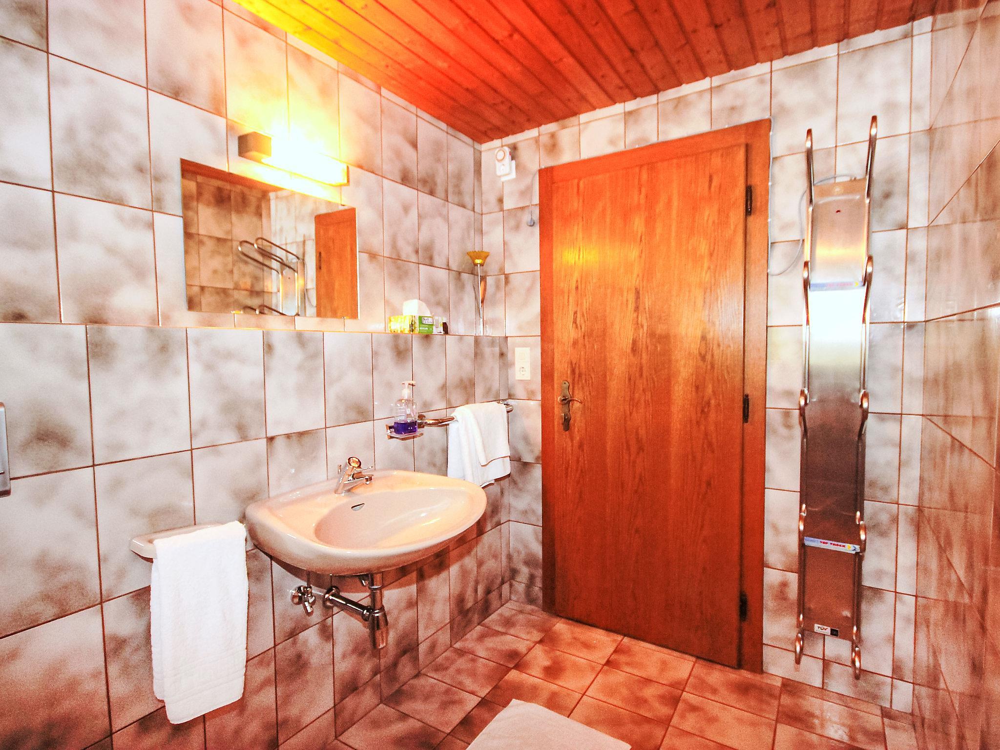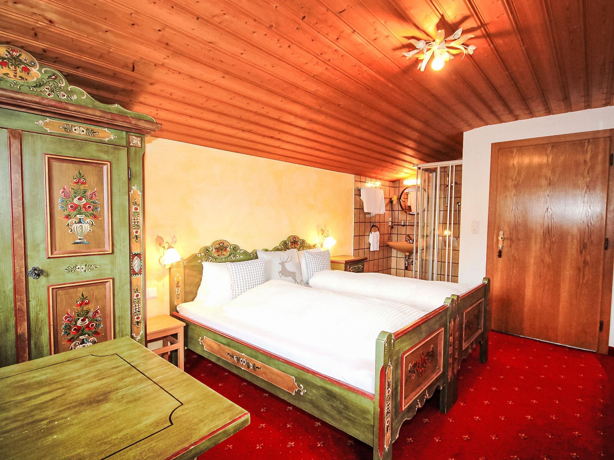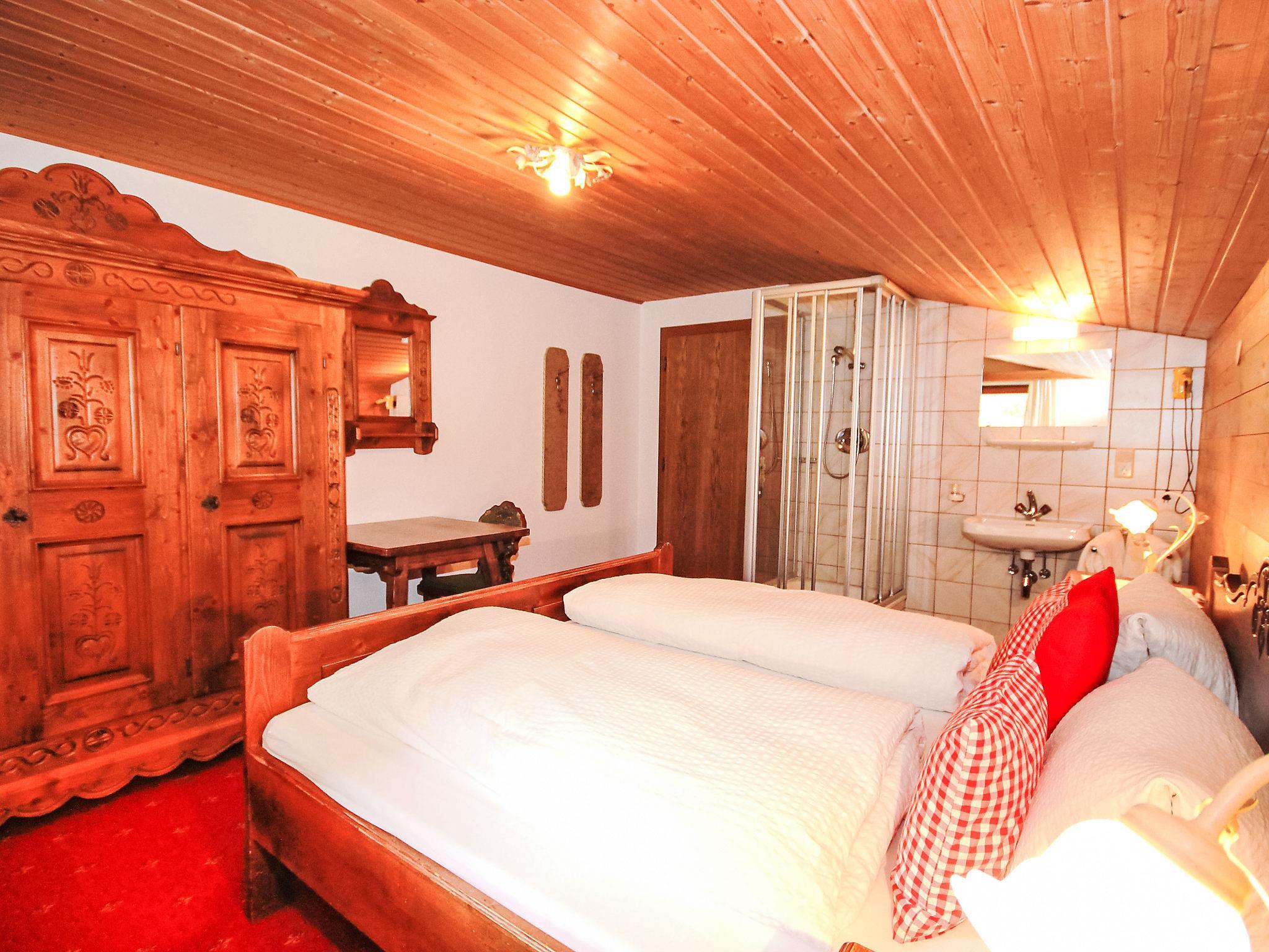 5-room apartment 100 m2 on 1st floor. Spacious, beautiful and cosy furnishings: entrance hall. Living/dining room with dining nook and satellite TV (flat screen). Exit to the balcony. 1 room with 1 bed, 1 double bed and hand-basin. 2 double bedrooms, each room with hand-basin and shower. Kitchen-/living room (oven, dishwasher, 4 ceramic glass hob hotplates, toaster, kettle, microwave) with dining table, radio and CD-player. Exit to the balcony. Sep. WC, bath/shower/WC. Balcony. Balcony furniture. Marvellous panoramic view of the mountains and the valley. Facilities: hair dryer. Internet (WiFi, free). Please note: smoke alarm. Automatic coffee machine and coffee filter available.