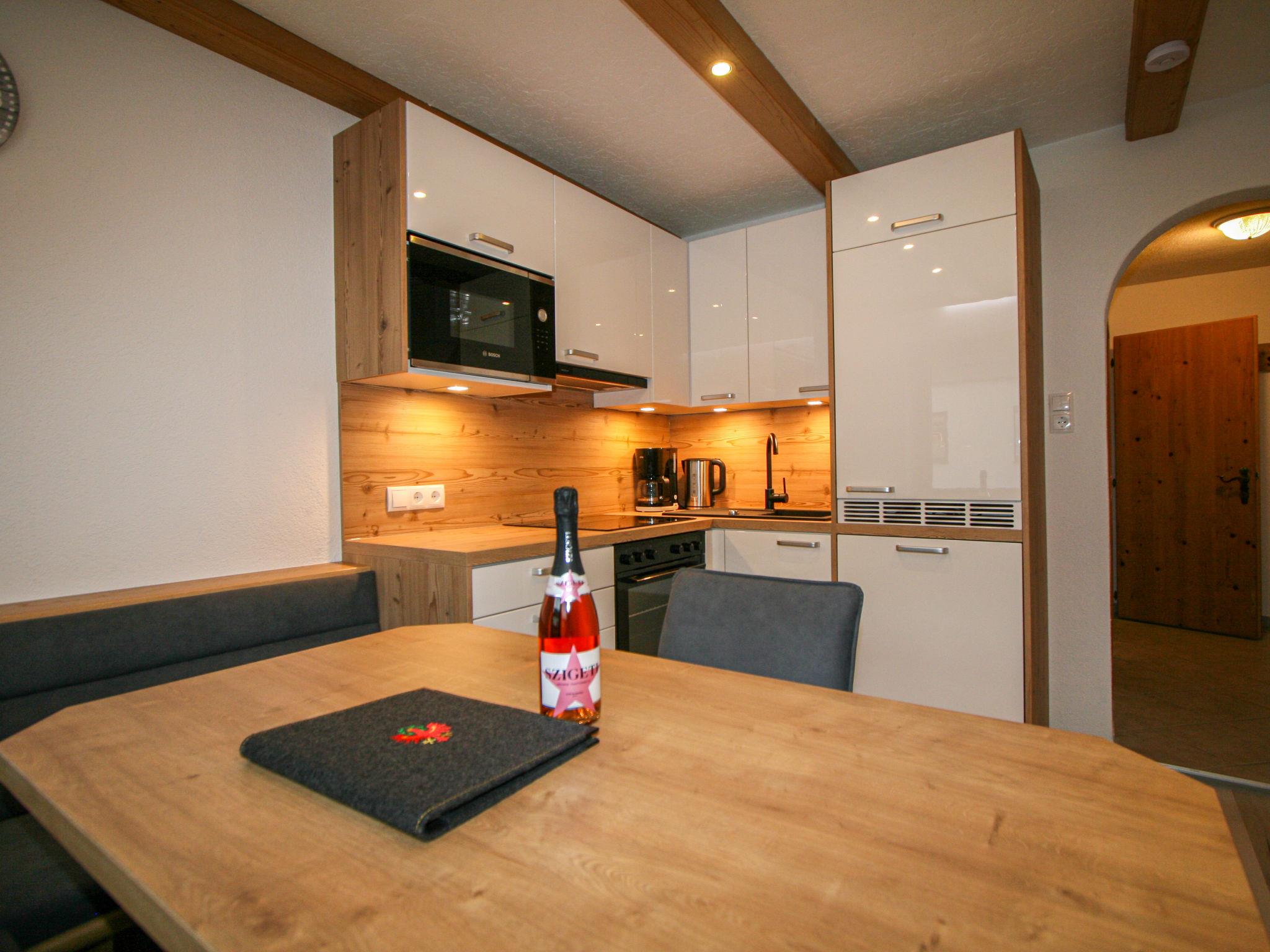 "Anna", 3-room apartment 55 m2, on the upper floor. Renovated in 2021, beautiful and modern furnishings: 1 room with 2 beds and satellite TV (flat screen). 1 double bedroom with satellite TV and flat screen. Exit to the balcony. Kitchen-/living room (oven, dishwasher, 4 ceramic glass hob hotplates, toaster, kettle, microwave, electric coffee machine) with dining nook. Shower/WC. Wood heating, solar energy heating. Balcony 8 m2. Balcony furniture. View of the mountains. Parking (1 car). E-charging station. Please note: non-smokers only.