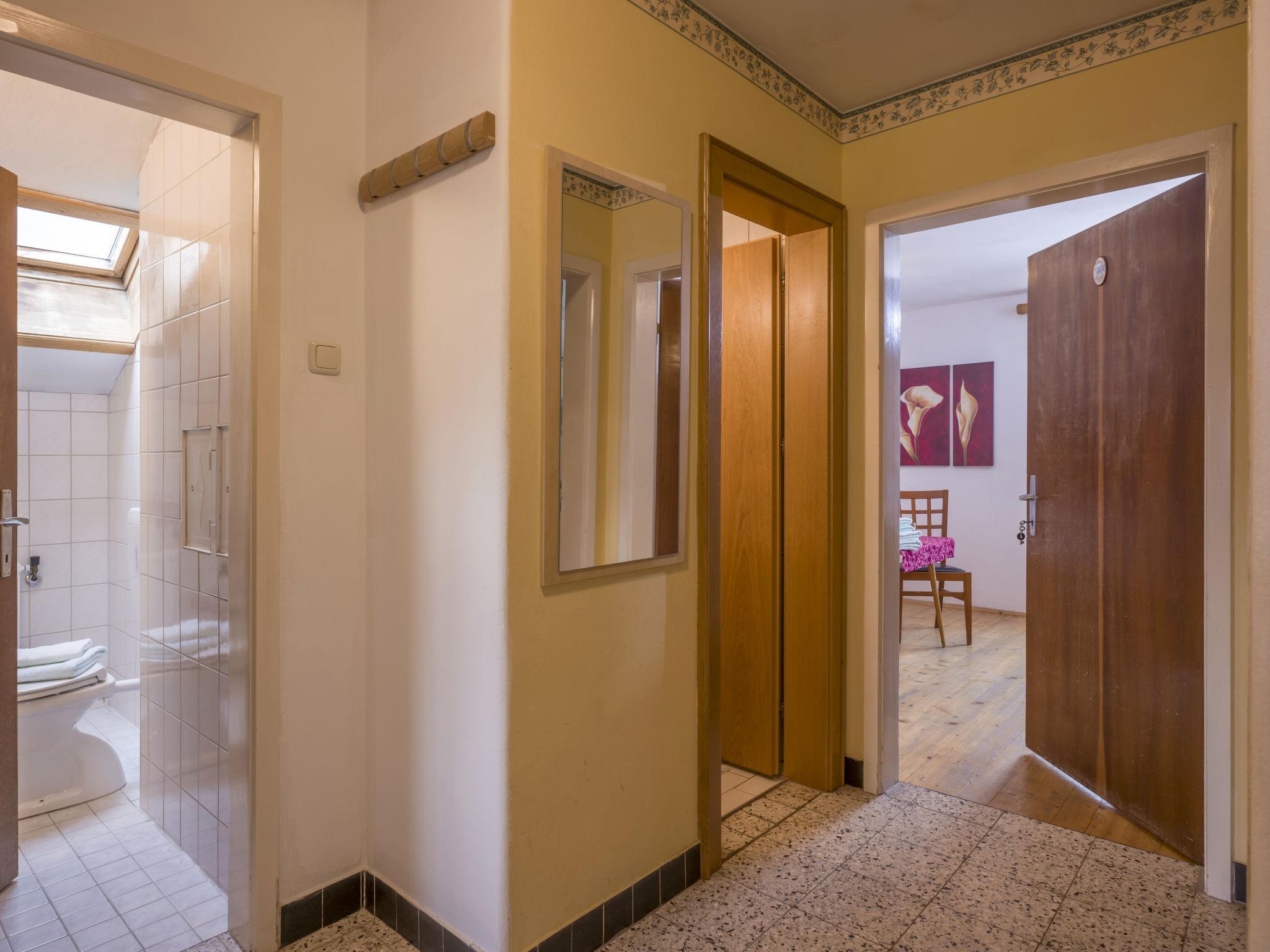 "Apart Anneliese", 10-room house 270 m2 on 3 levels. Practical and comfortable furnishings: 1 double bedroom with hand-basin and shower/WC. 1 room with 1 x 2 bunk beds, 1 double bed and hand-basin. Shower/WC, sep. WC. On the lower ground floor: 1 double bedroom with hand-basin and shower. Exit to the balcony. 1 double bedroom with hand-basin and shower. Exit to the balcony. 1 double bedroom with hand-basin and shower/WC. Exit to the balcony. 1 room with 1 x 2 bunk beds, hand-basin. Exit to the balcony. Large, open kitchen (4 hot plates, oven, kettle, microwave, electric coffee machine) with dining table, satellite TV (flat screen), electric heating. Sep. WC. Upper floor: 1 double bedroom with hand-basin. 1 room with 1 x 2 bunk beds, 1 double bed and hand-basin. 1 double bedroom. Shower, sep. WC. Bread rolls service possible. In winter breakfast buffet on request, 12€ per person.