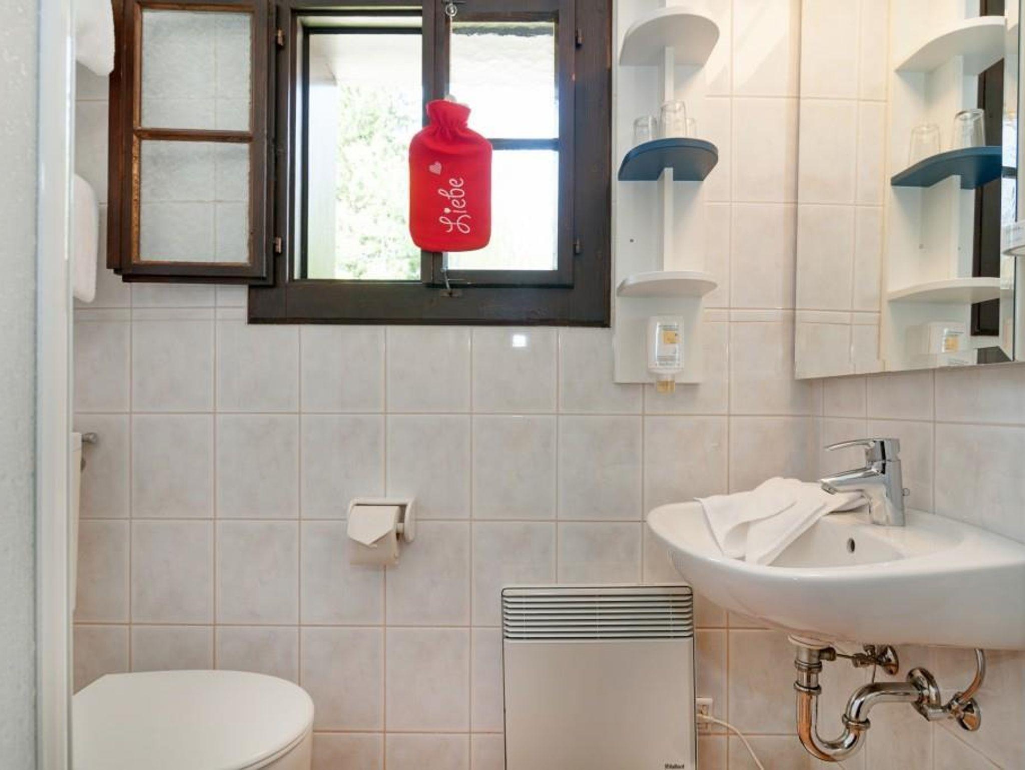 Im Parterre mit einer Wohnfläche von ca. 35 m², augestattet mit Küchenzeile, Wohnraum mit Sitzgruppe (2 Sitz-/Schlafcouches), Kachelofen und Essecke, kleines Schlafzimmer mit Etagenbett, Dusche, WC.