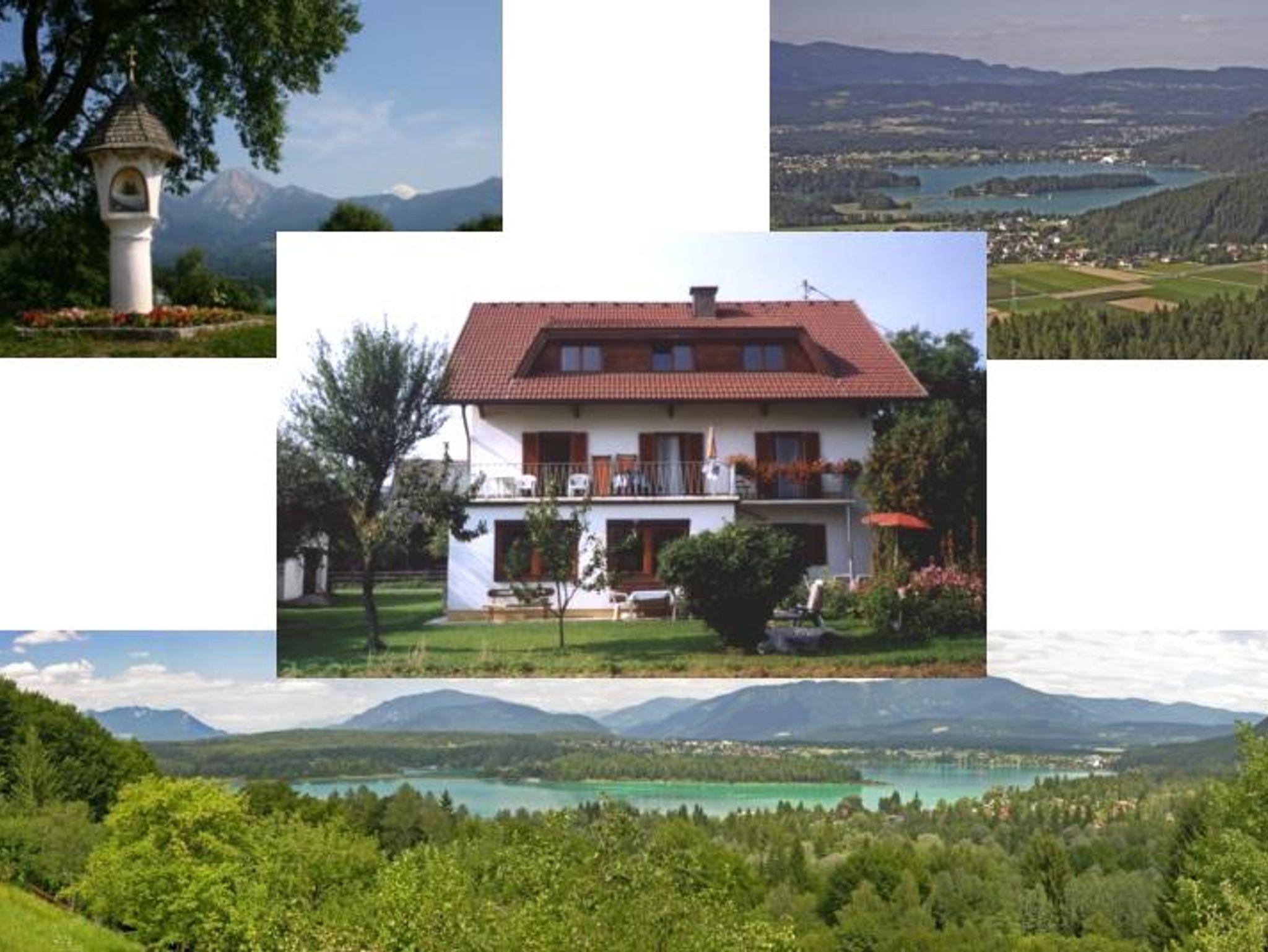 Landhaus am Ortsrand von Faak mit schönem Blick auf den Mittagskogel. Garten mit Liegewiese, Tischtennis, Terrasse, Schaukel, Parkplatz am Haus.