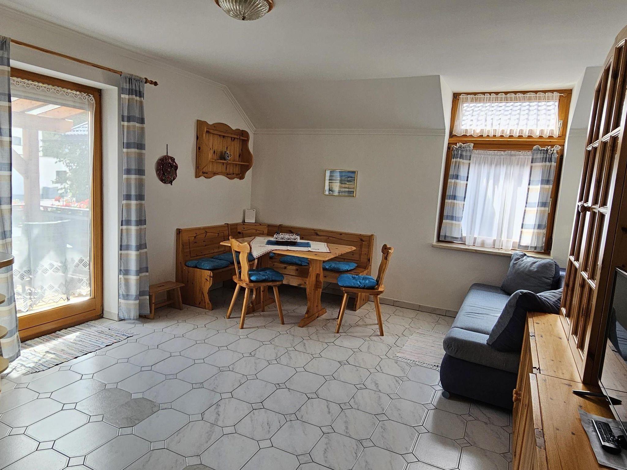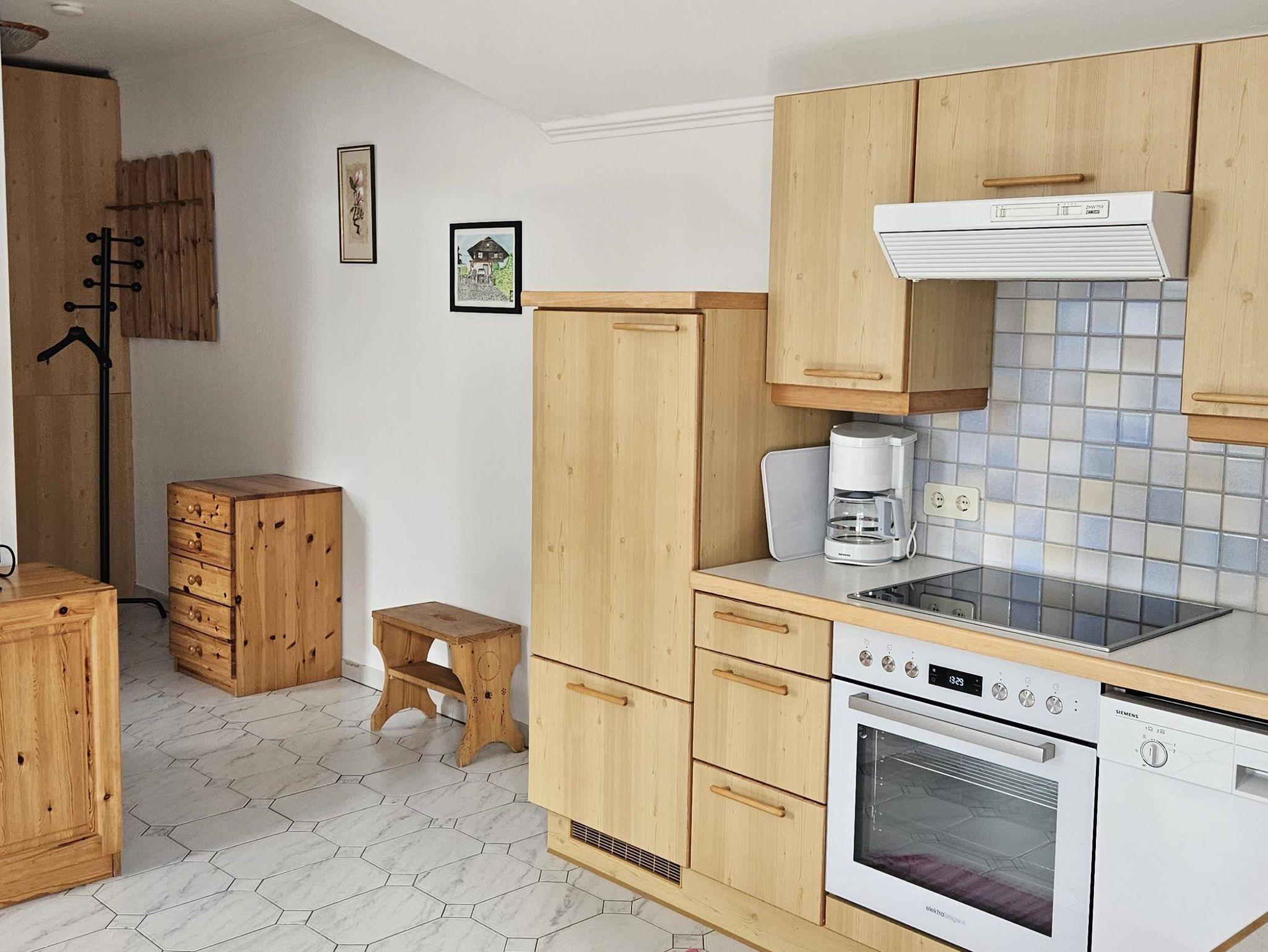 Die Ferienwohnung verfügt über eine große Wohnküche mit einem Schlafzimmer und einem Kinderzimmer mit Stockbett, Dusche, WC und großer Balkon-Terrasse.
