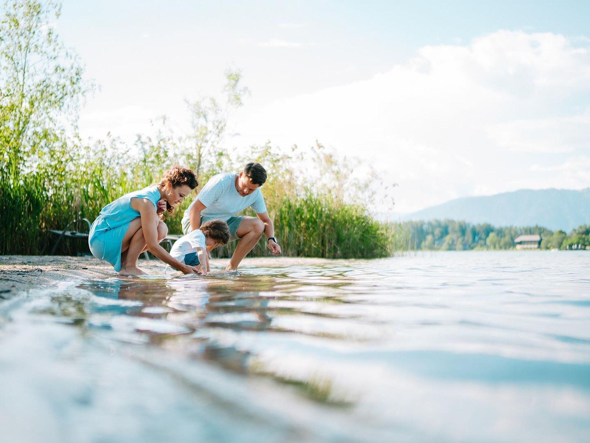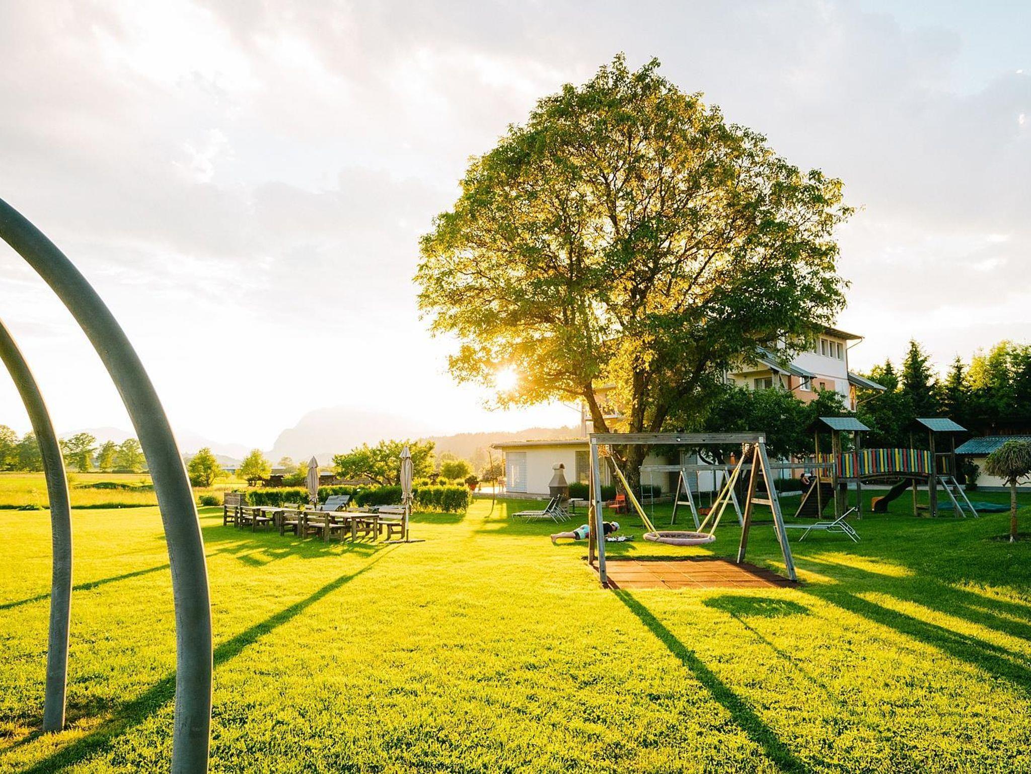 Das Stammhaus steht außerhalb des Ortes Faak am See, mitten im Grünen, sonnenbegünstigt mit freiem unverbauten Ausblick auf die Bergwelt und Weidevieh. Für Badefreunde gibt es den großen, eigenen Badestrand am Faakersee mit flach abfallendem Sandstrand!