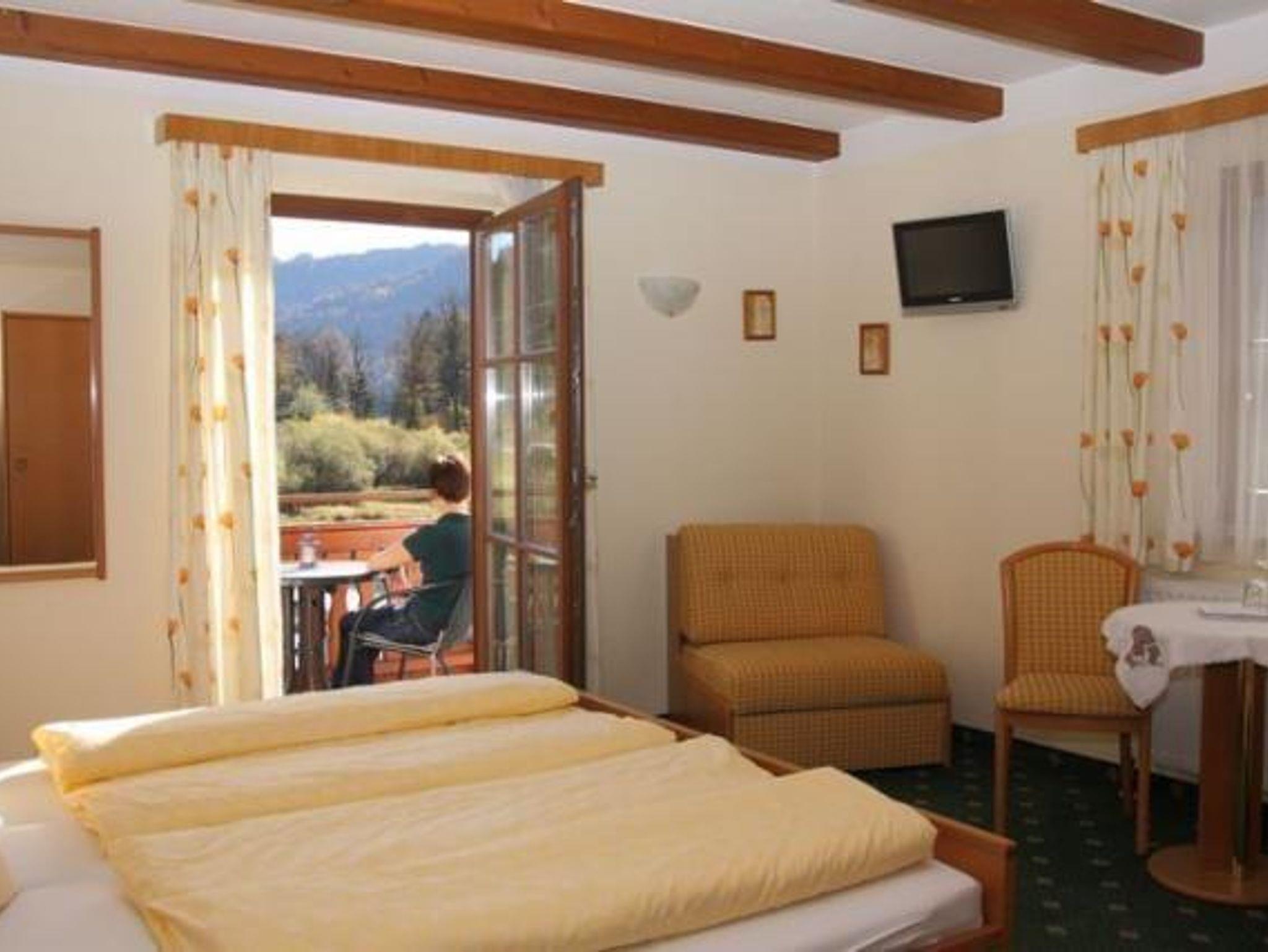 Sie können wählen zwischen Doppelzimmern oder Ferienwohnungen mit einem herrlichen Blick auf die Berge und den See.