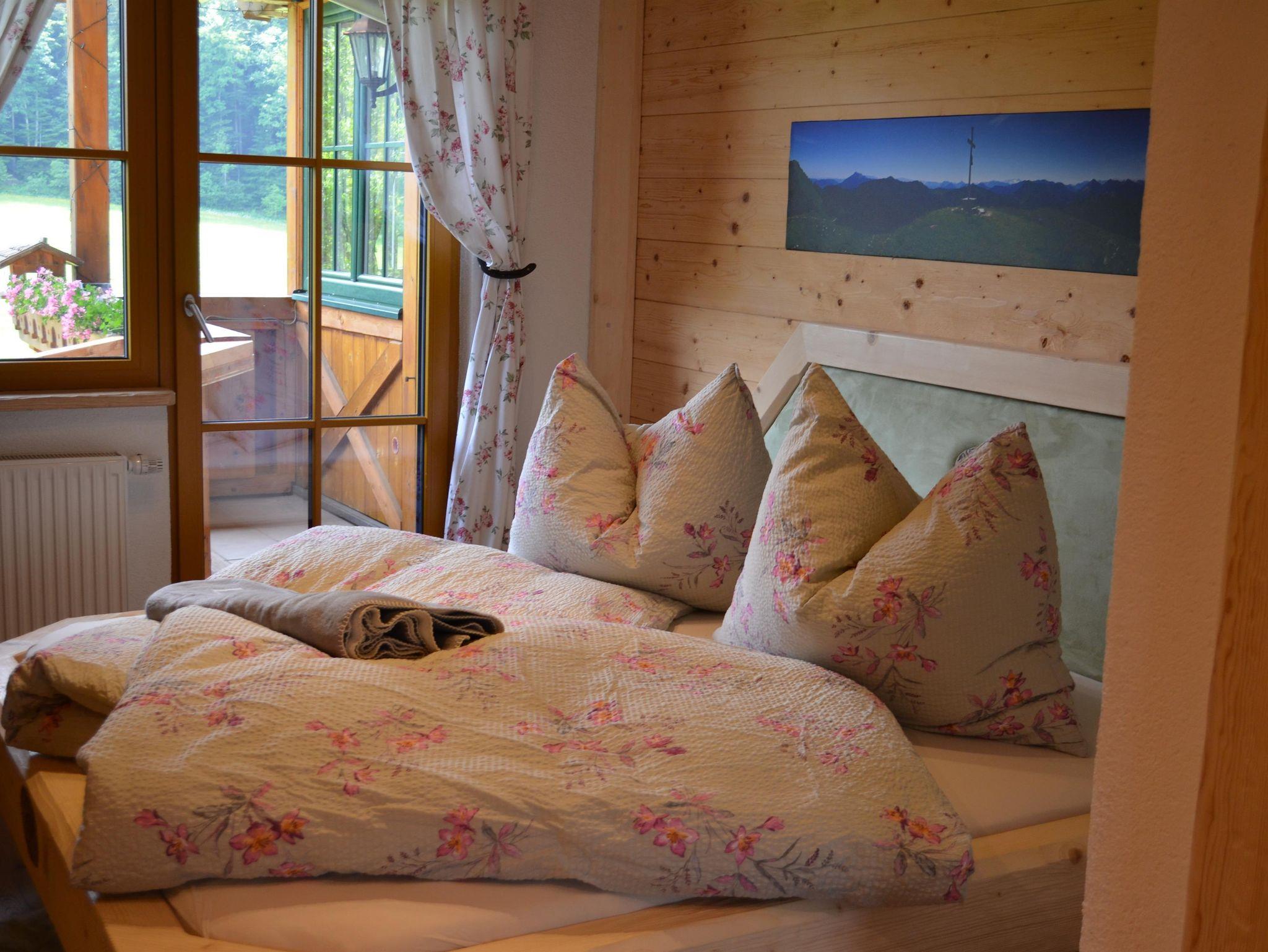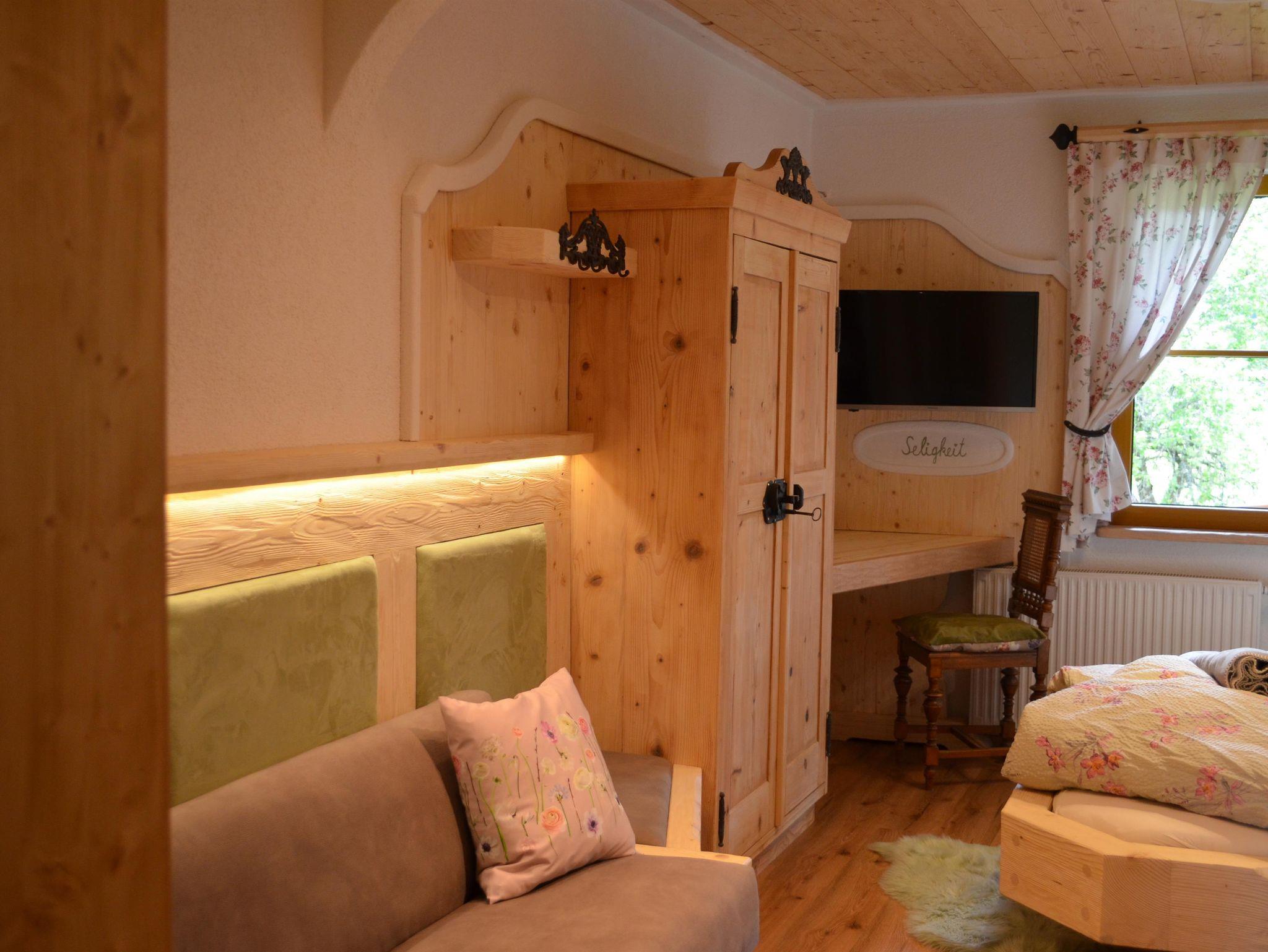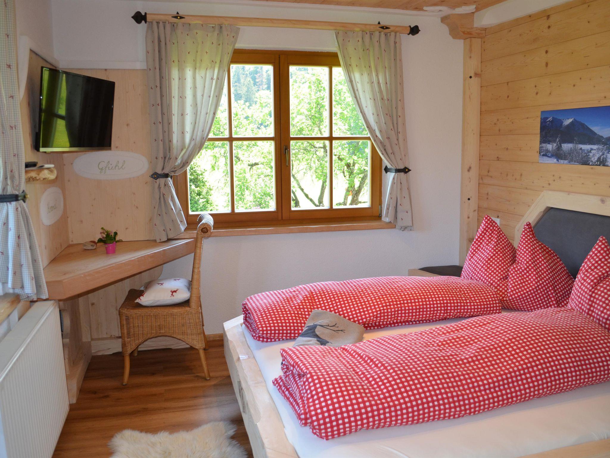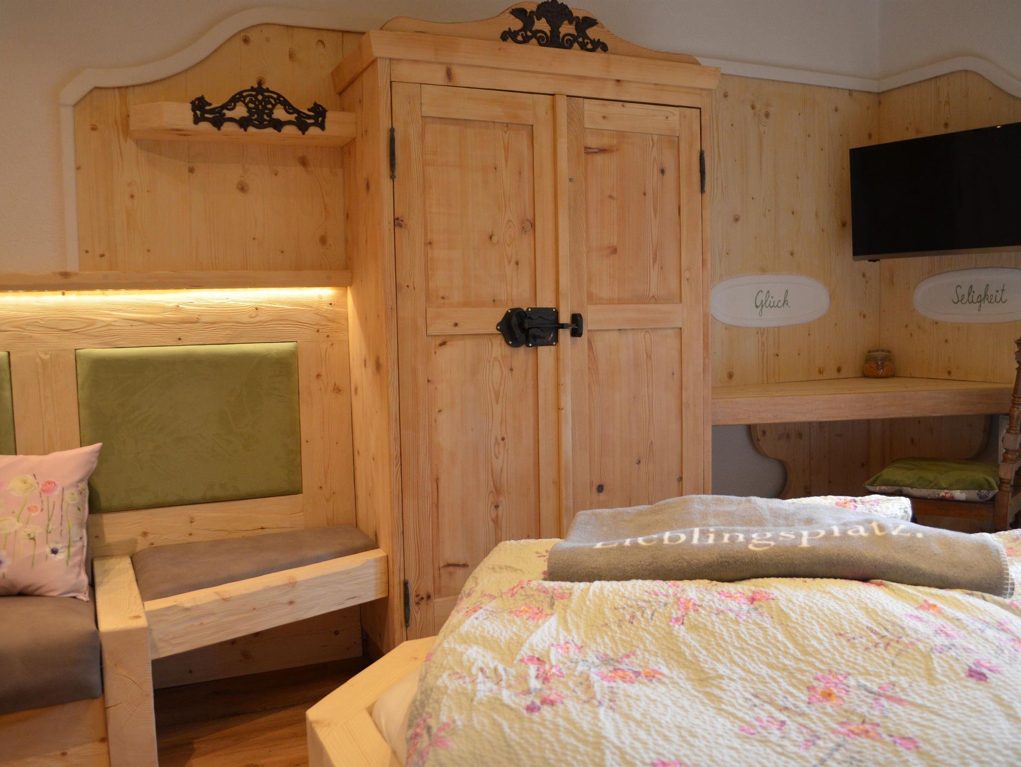 Gemütliches Vollholz-Zimmer, liebevoll eingerichtet mit Holz- und Glaselementen. Kleiner Balkon mit Garten- und Bergblick. Doppelbett, Bad, WLAN und TV. Neu renoviert – ideal für entspannte Tage in Faistenau.