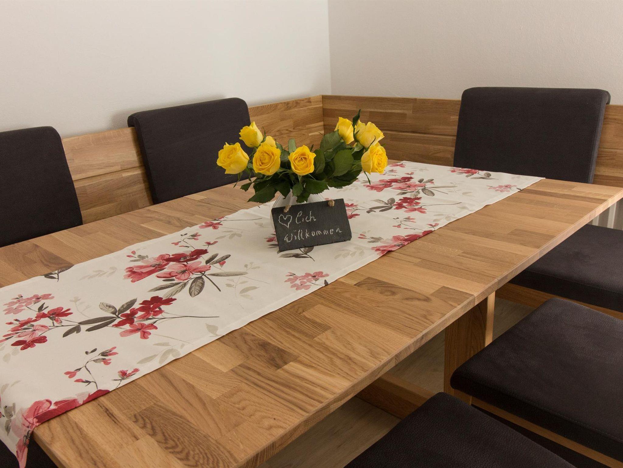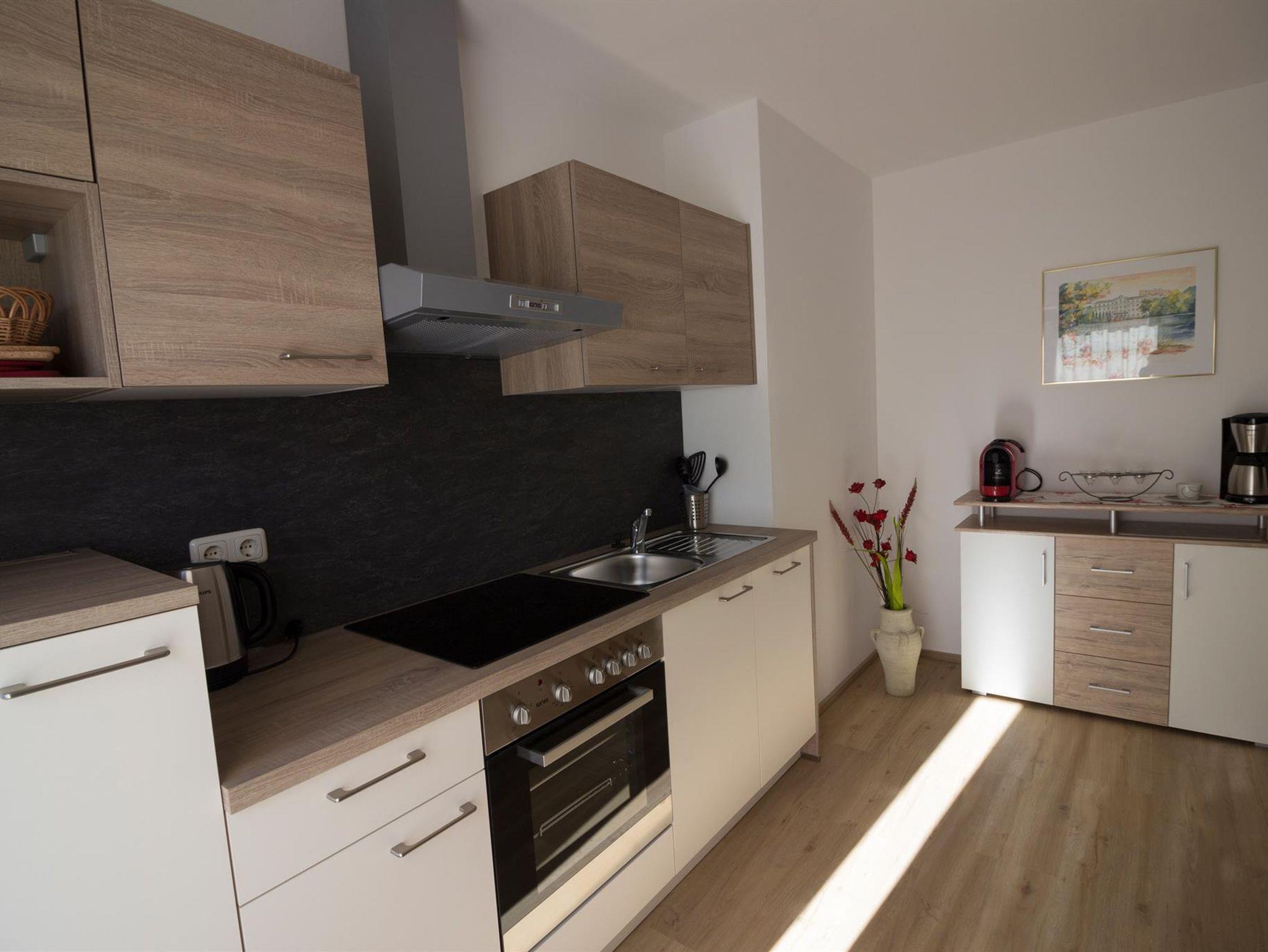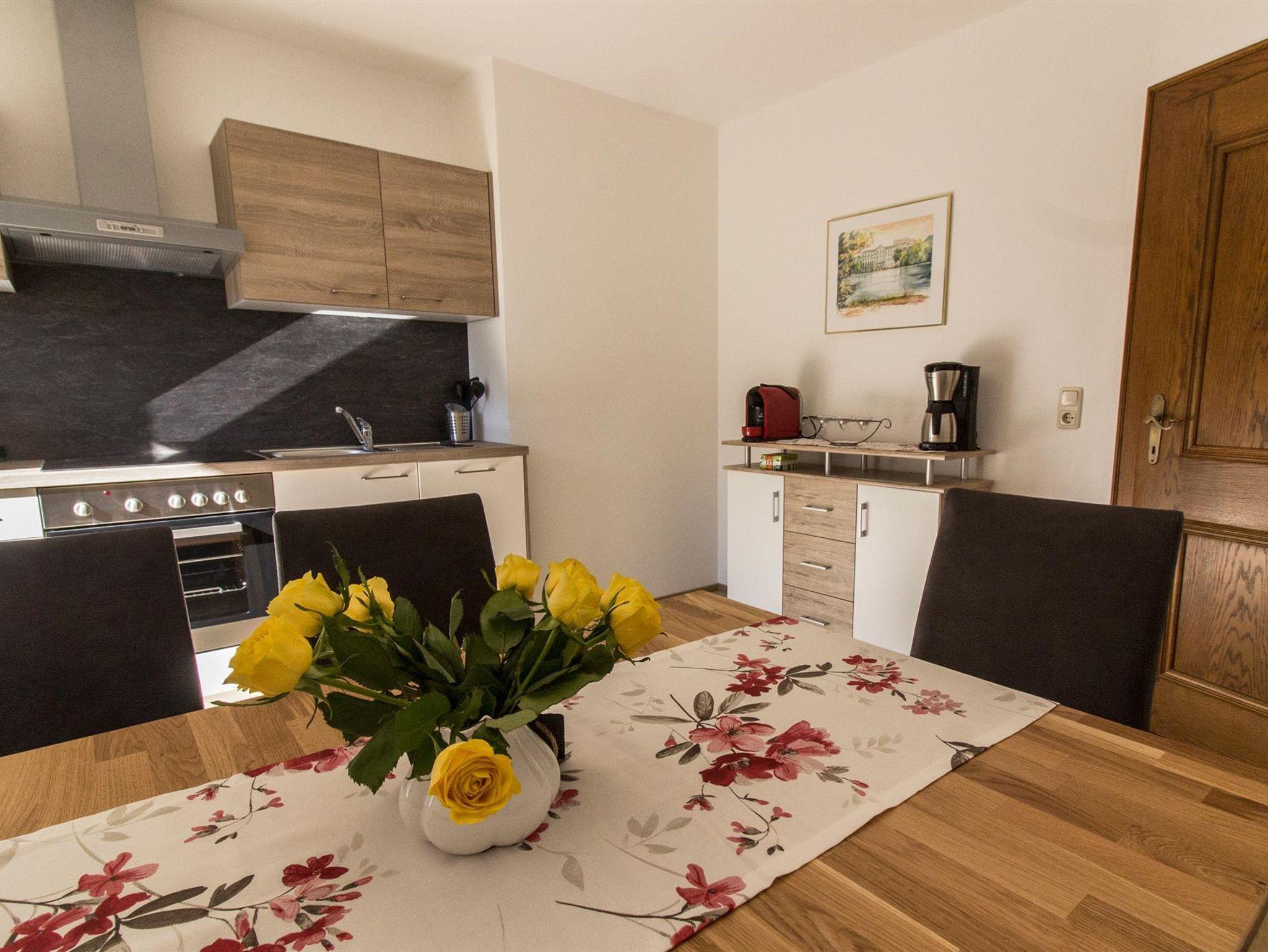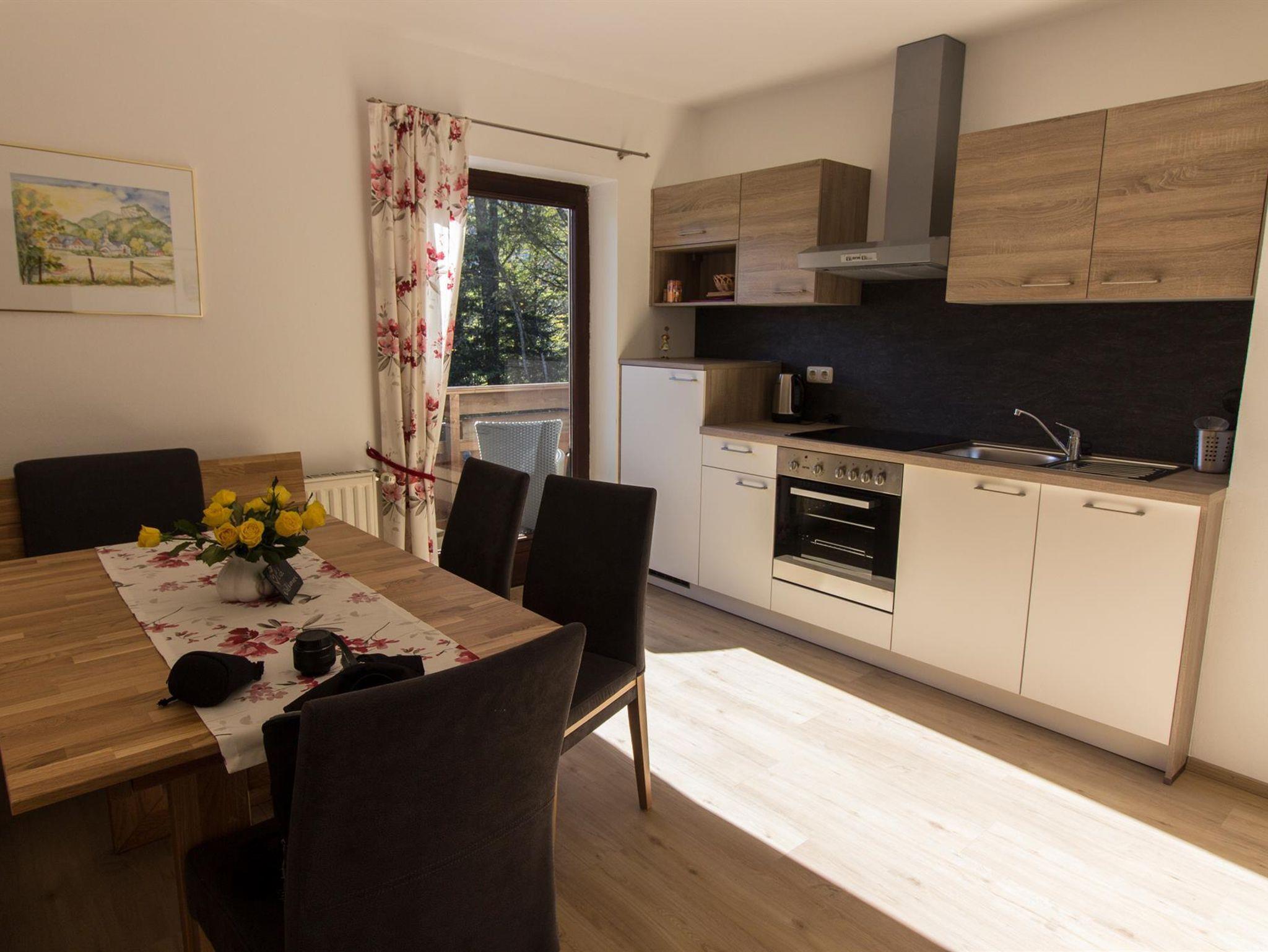 Unsere Ferienwohnung umfasst 90 m2, verteilt auf drei Schlafzimmer, eine geräumige Wohnküche sowie Vorraum mit Gaderobe und ein Badezimmer mit Dusche. Zwei Schlafzimmer, eines davon mit Balkon, bieten ein großes Doppelbett. Ein Schlafzimmer ist mit einem großen Bett mit 1,40 m Breite und einem Sofa ausgestattet, ebenfalls mit Balkon. Die Küche ist gut ausgestattet mit Ceranfeld, Backofen, Geschirrspüler, Kaffeemaschine und sämtlichen Küchenutensilien. Es gibt einen großzügigen Essbereich, wo man auch gemütlich zusammen sitzen kann. Kabel TV und Flachbildschirm sind ebenfalls vorhanden. Neben einer eigenen Terrasse zum Entspannen, Frühstücken oder Grillen unter Dach kann auch der Garten und Grillbereich vorm Haus mitbenutzt werden.