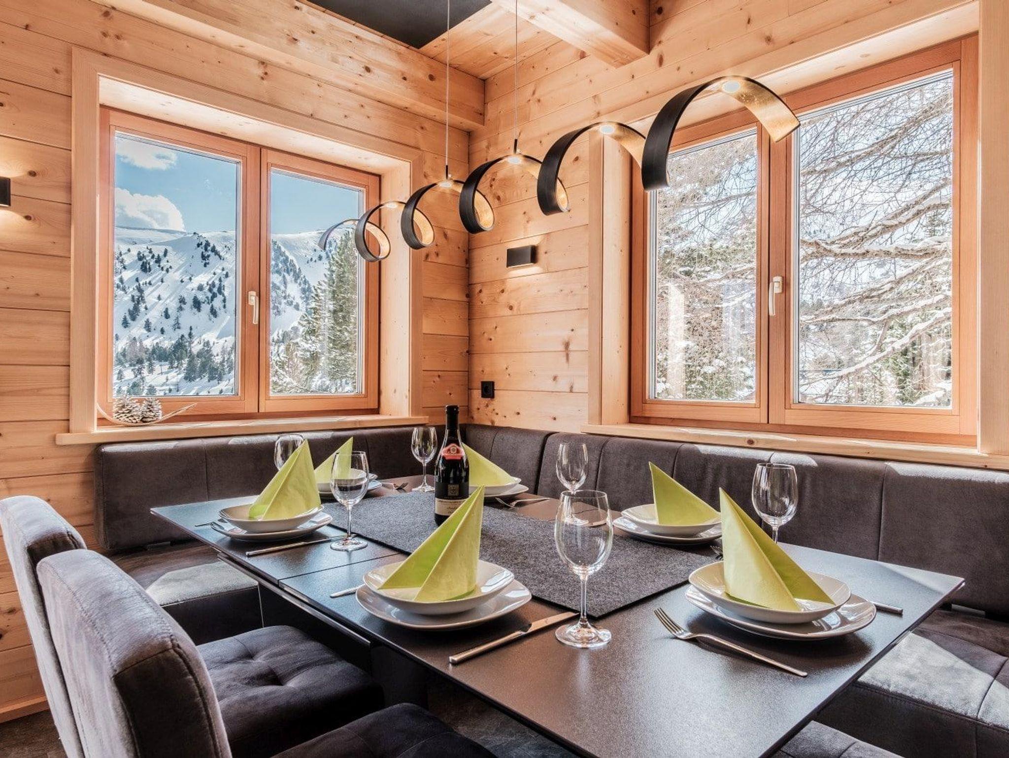 Das Wohnzimmer mit der offenen Küche und Theke lädt zum Verweilen ein. Während die Kinder nach einem aufregendem Skitag Netflix schauen, kochen Sie gemütlich in der Küche und lassen dabei den Blick über das Kaminfeuer und die Gipfel streifen. Alle Schlafzimmer verfügen ebenfalls über Sitzgelegenheiten und Sat-/Smart-TVs sowie 2 über einen Balkon. Auf der großen Süd-Panoramaterrasse finden Sie alles, was Sie für den perfekten Urlaub in den Bergen brauchen – Außenkamingrill, Hotpot und Gartenmöbel. Alle Extras vom WLAN bis hin Waschmaschine sind selbstverständlich inkludiert.