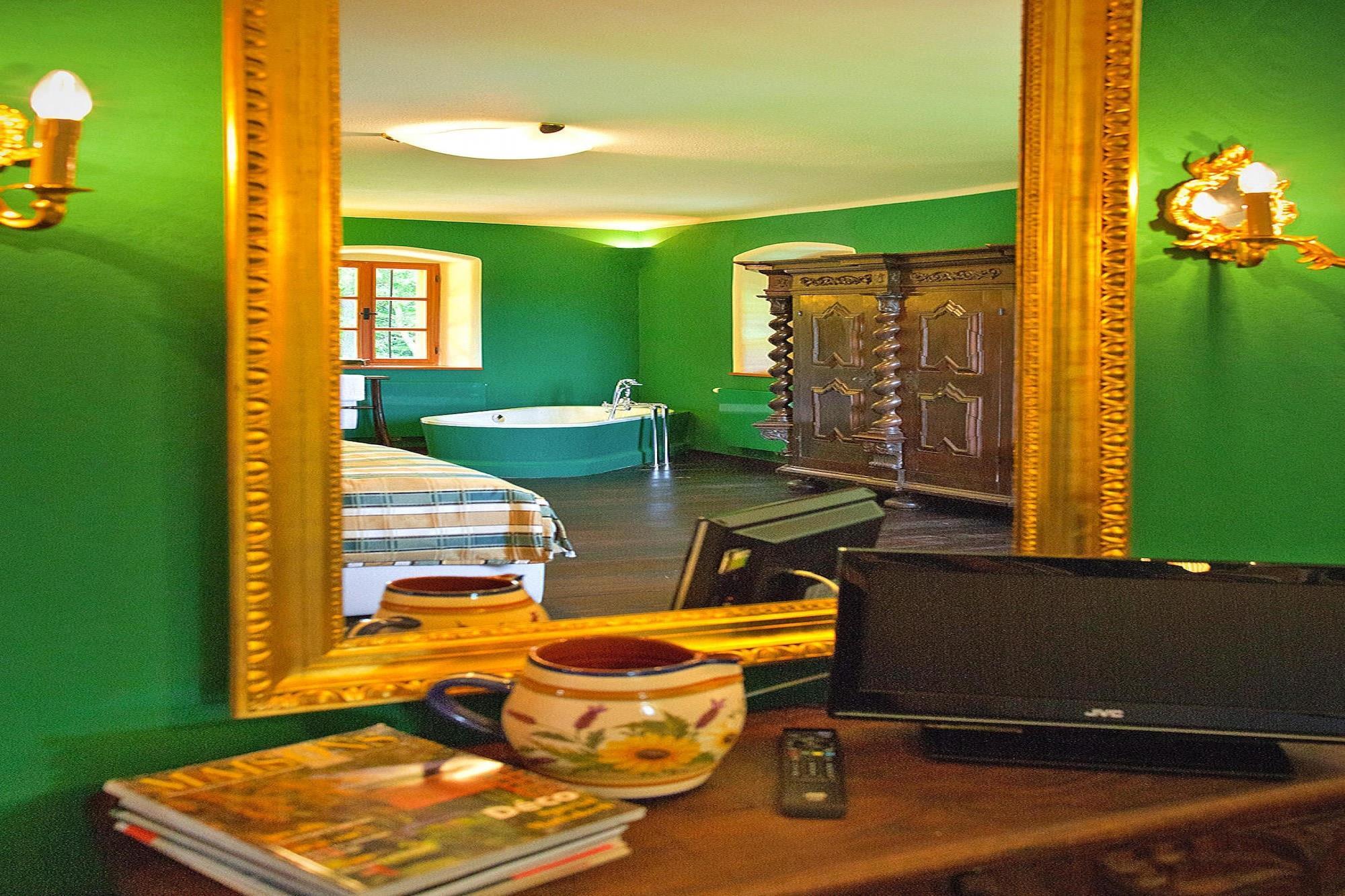 Den 250 år gamle hovedbygning (175 m²) er blevet grundigt revitaliseret. Dens gamle charme er blevet bevaret og er blevet kærligt møbleret med moderne teknologi og udsøgte antikviteter. To soveværelser med en-suite badeværelser (hvoraf det ene er åbent integreret, hver med badekar, bruser, toilet, hårtørrer, badekåber) kan komfortabelt rumme 4 personer. Den rummelige stue med pejs (satellit-tv, musikanlæg, bibliotek) er åben på 2 sider til terrassen og haven. Det fuldt udstyrede køkken og bryggers (vaskemaskine og tørretumbler) er åbne for hinanden. Endvidere indgangsparti og gæstetoilet.Det 75 kvadratmeter store, hemslignende udhus, "Presshaus", er helt i træ og byder på en smuk panoramaudsigt til to sider gennem de høje vinduer. Det store gavlvindue giver natudsigt til stjernehimlen i det sydlige Steiermark Midtpunktet er en cirka hundrede år gammel vinpresse, på hvis pressegulv en dobbeltseng er smukt integreret Med endnu et badeværelse med regn bruser, toilet og Der er nok plads til en anden 2 people.A Daikin klimaanlæg giver køling om sommeren og fungerer som opvarmning i winter.A sovesofa plads til 1 ekstra barnets tarv hyggelig have med swimmingpool ( 9 x 3 m, biologisk salt rengøring) og solen terrasse forbinder de to bygninger og skaber en fredelig atmosfære. Detaljer: Forbrugsbaserede energiomkostninger, sengelinned, håndklæder, slutrengøring, WiFi-velkomstpakke, byskat Aktiviteter i nærheden: Det maleriske bakkede landskab af vulkansk oprindelse med dets skove, vinmarker og frugtplantager er ideelt til lange gåture. Oplev de mange paladser og slotte langs Schlösserstraße, som betragtes som udfordrende vidner fra en svunden tid. Flere golfbaner såsom Traminergolf Klöch (ca. 20 km) eller Thermengolf Loipe
