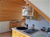 Über einen eigenen Eingang gelangt man ins Dachgeschoss des Kellerstöckls, wo eine behagliche Ferienwohnung mit ca. 40 m² Wohnfläche eingerichtet wurde. Diese verfügt über einen gemütlichen Wohnraum mit einer Kochecke. Ein Schlafzimmer ist mit einem Doppelbett und zwei Zustellbetten für Kinder, sowie mit schönen, antiken Möbeln eingerichtet. Ein Badezimmer mit Dusche und einem separaten WC rundet alles ab. Ein TV-Gerät steht zur Verfügung. Hinter dem Haus lädt eine Gartengarnitur und Liegestühle zum gemütlichen Beisammensein ein. Ein überdachter PKW-Abstellplatz befindet sich direkt neben dem Haus.