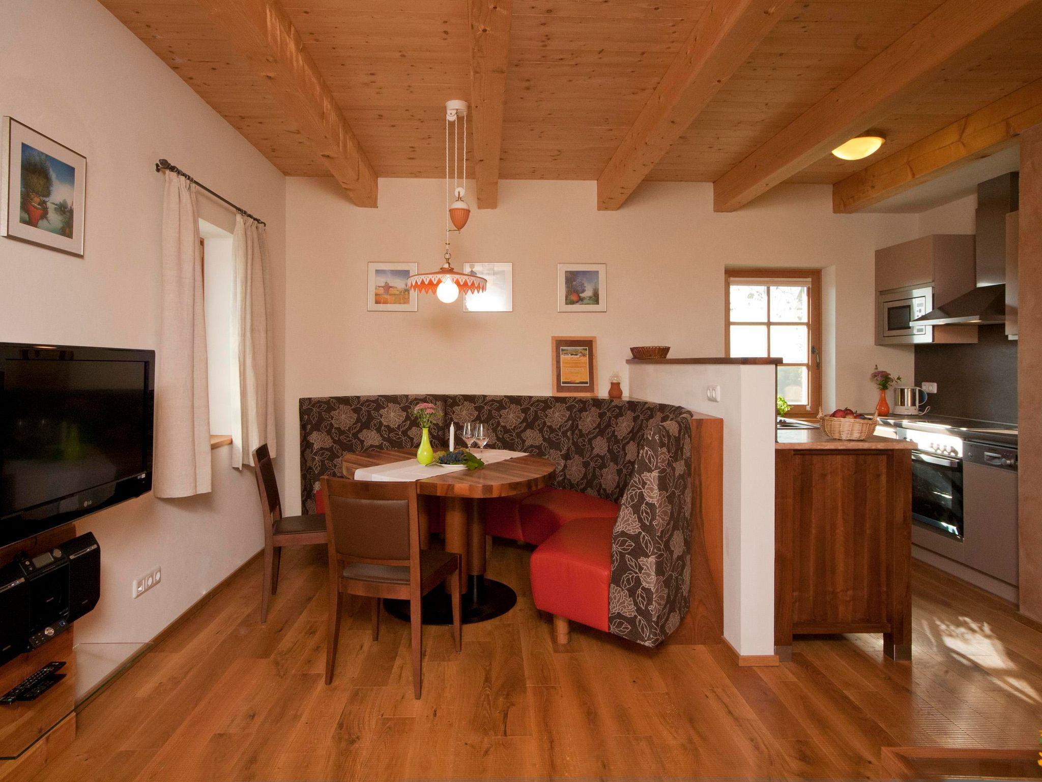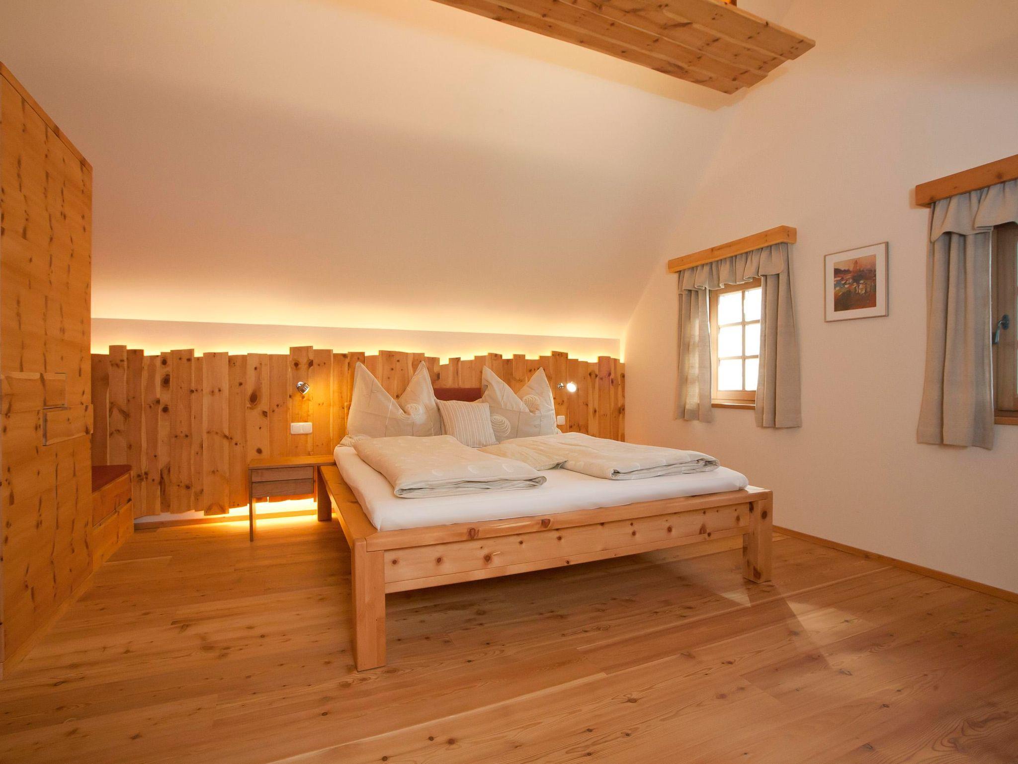 Tischlergefertigte Vollholzmöbel in Zirbe und Nuss, Dielenböden in Eiche, eine gemütliche Winzerstube, eine schwebende Weingartenterrasse, eigene Sauna und hochwertige tueri-Lebensenergiebetten von Tischlermeister Franz Gross sind genau das Richtige für den anspruchsvollen Gast, der seinen Urlaub in vollen Zügen genießen möchte.
