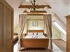 Sehr helles Zimmer im 1. Stock mit Himmelbett und geöltem Lärchenboden.