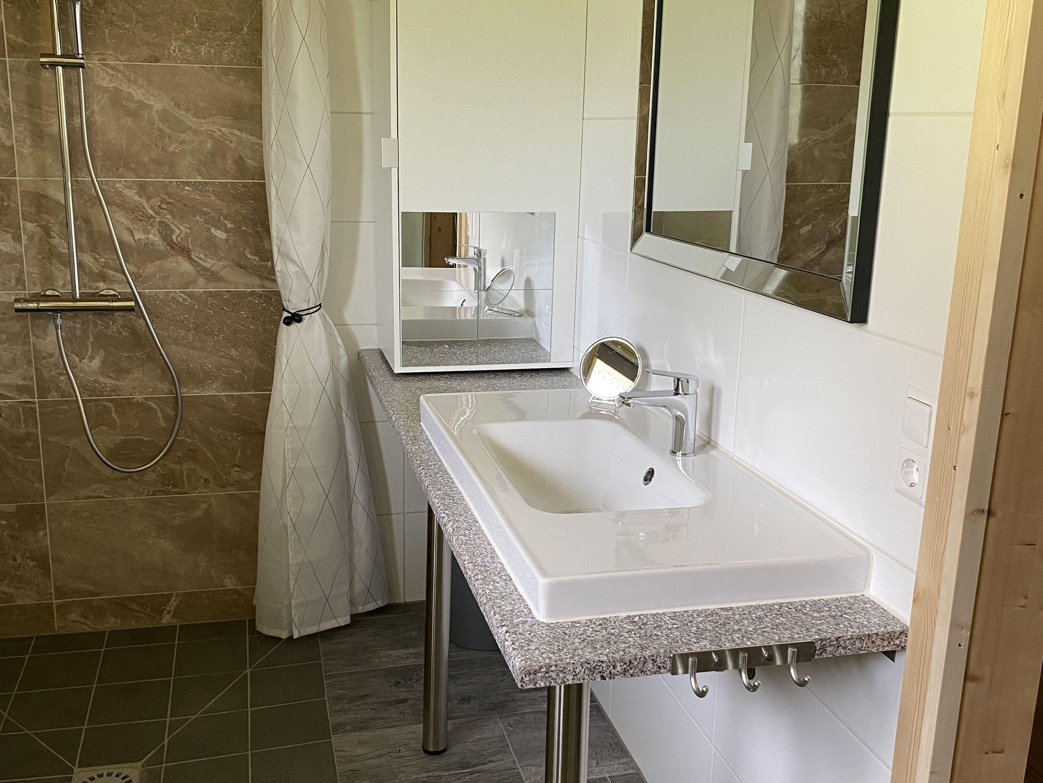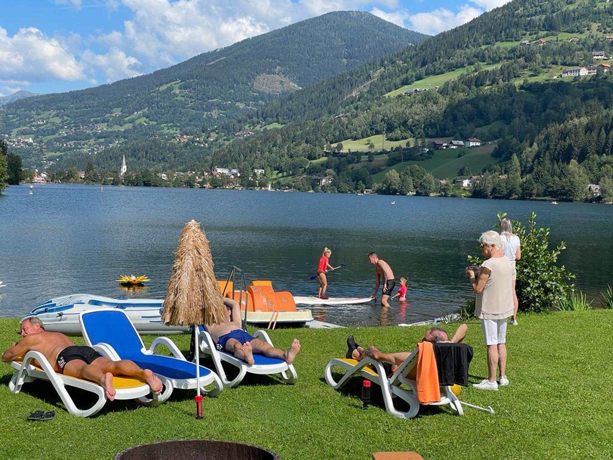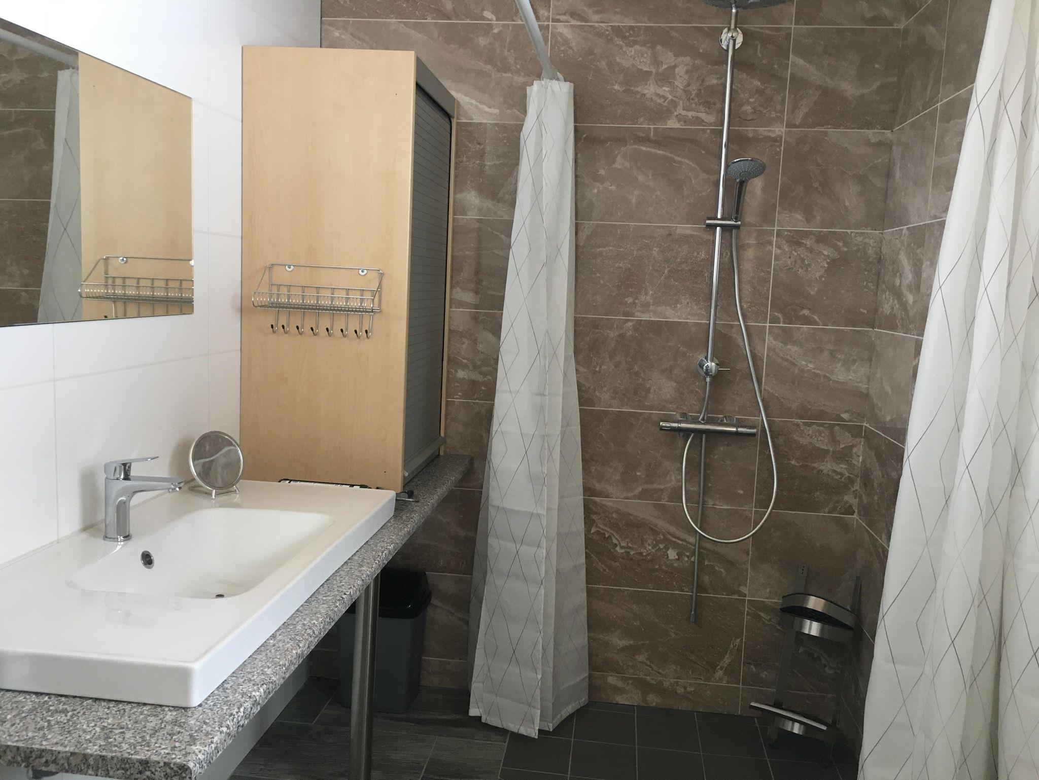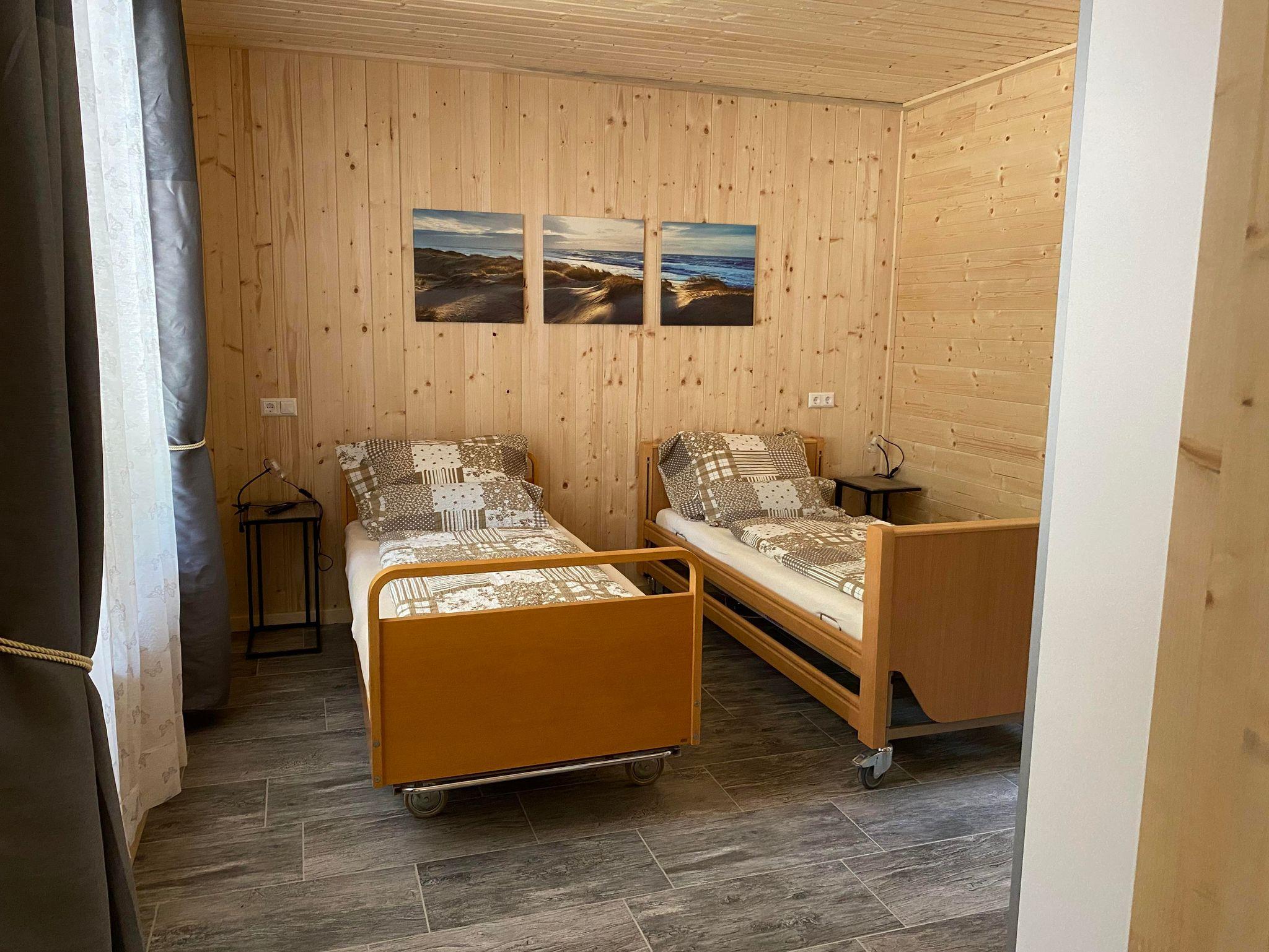 In Juni 2022 fertig gestellte behindertengerechte/barrierefreie Bungalows für Jedermann. Ob für Familien, Senioren oder Behinderte- sie sind für alle geeignet. Fischen im Rollstuhl möglich. Direkter Zugang zum Privatstrand mit Geländer, um in den See zu kommen. See ist nicht gleich tief, die ersten paar Meter sind seicht. Bungalow 1 bietet Platz für max. 8 Personen und Bungalow 2 und 3 sind beide geeignet für 6 Personen. Auch Gruppenferien sind möglich. Haus 2 und 3 können mit einander gekoppelt werden. Jeder Bungalow hat ein behindertengerechtes Badezimmer und Schlafzimmer. In Bungalow 1 gibt es noch 2 Doppelzimmer extra und in Bungalow 2 und 3 ist jeweils ein Doppelzimmer und ein kleineres Zimmer mit Stockbett vorhanden. Man kann mit Hoch-niederig Betten direkt auf die Terrasse fahren. Viel Platz zum Leben. Der Strand wird von alle Gäste benützt. Eislaufplatz vor der eigenen Haustür. Kurz gesagt - für Jedermann ist etwas dabei. Waschmachinebenützung nur auf Anfrage und gegen Gebühr möglich. In der Bungalow ist kein Waschmachine.