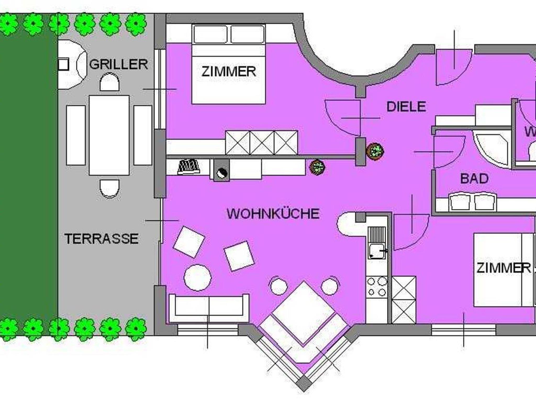 Jede Wohnung verfügt über 2 Schlafzimmer mit Doppelbetten (inkl.Bettwäsche), Safe, eine Wohnküche (24qm) mit ausziehbarer Doppelcouch, Geschirrspüler+gratis Reinigungstaps, Kaffeemaschine, Toaster, Wasserkocher, Mikrowelle, Backofen, Kühlschrank mit Gefrierfach, genügend Koch - u. Essgeschirr, Geschirrtücher, gemütliche Essecke, Kabel-TV, Leselampe, Telefon, Internetanschluss und Radio. Die Badezimmer sind mit Dusche, Doppelwaschtisch, Hand - u. Badetüchern, Kosmetikspiegel und einem Fön ausgestattet.