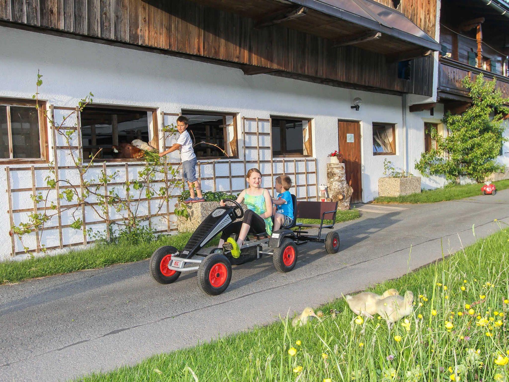 Schafe, Hasen, Enten, Hühner, Katze, Bienen und Kühe mit ihren Kälbern . Das kennenlernen und füttern unserer Tiere am Hof ist für die Kinder ein Erlebnis. Die umliegenden Hänge direkt neben dem Haus laden im Winter zum Bob fahren und zur Schneeballschlacht ein.