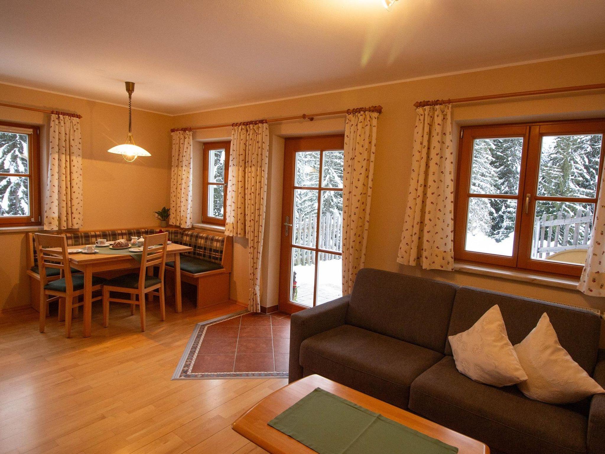 Im Winter ist der Einstieg ins Schivergnügen über die Schischaukel Filzmoos-Neuberg nur 1,5 km entfernt, ebenso wie die Langlaufloipe.