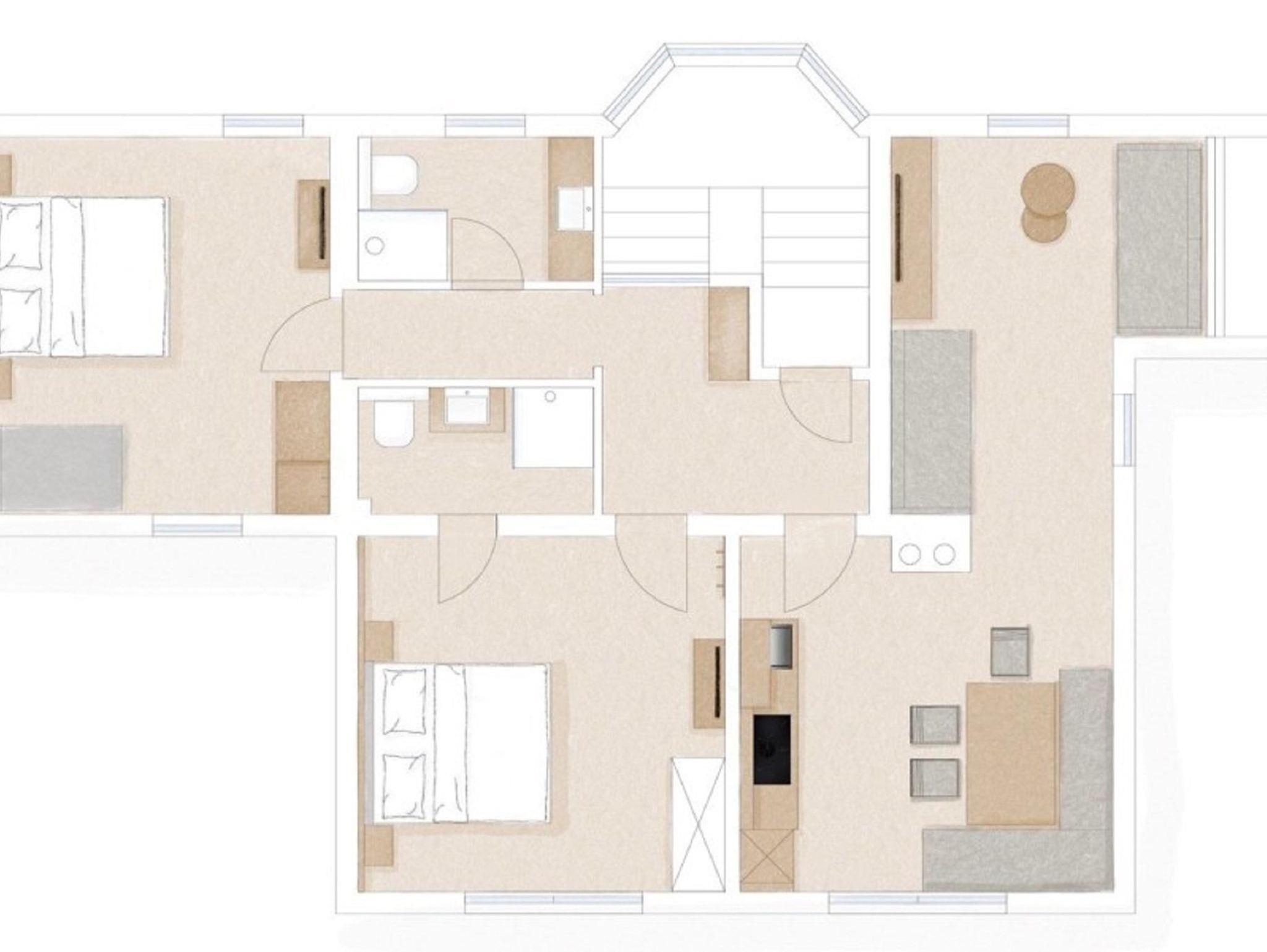 Die Wohnung (80 m²) verfügt über 2 getrennte Schlafzimmer, 2 getrennte Badezimmer, komplett eingerichteter Küche, grosszügigen Essbereich und Wohnraum mit einer ausziehbaren Couch.
